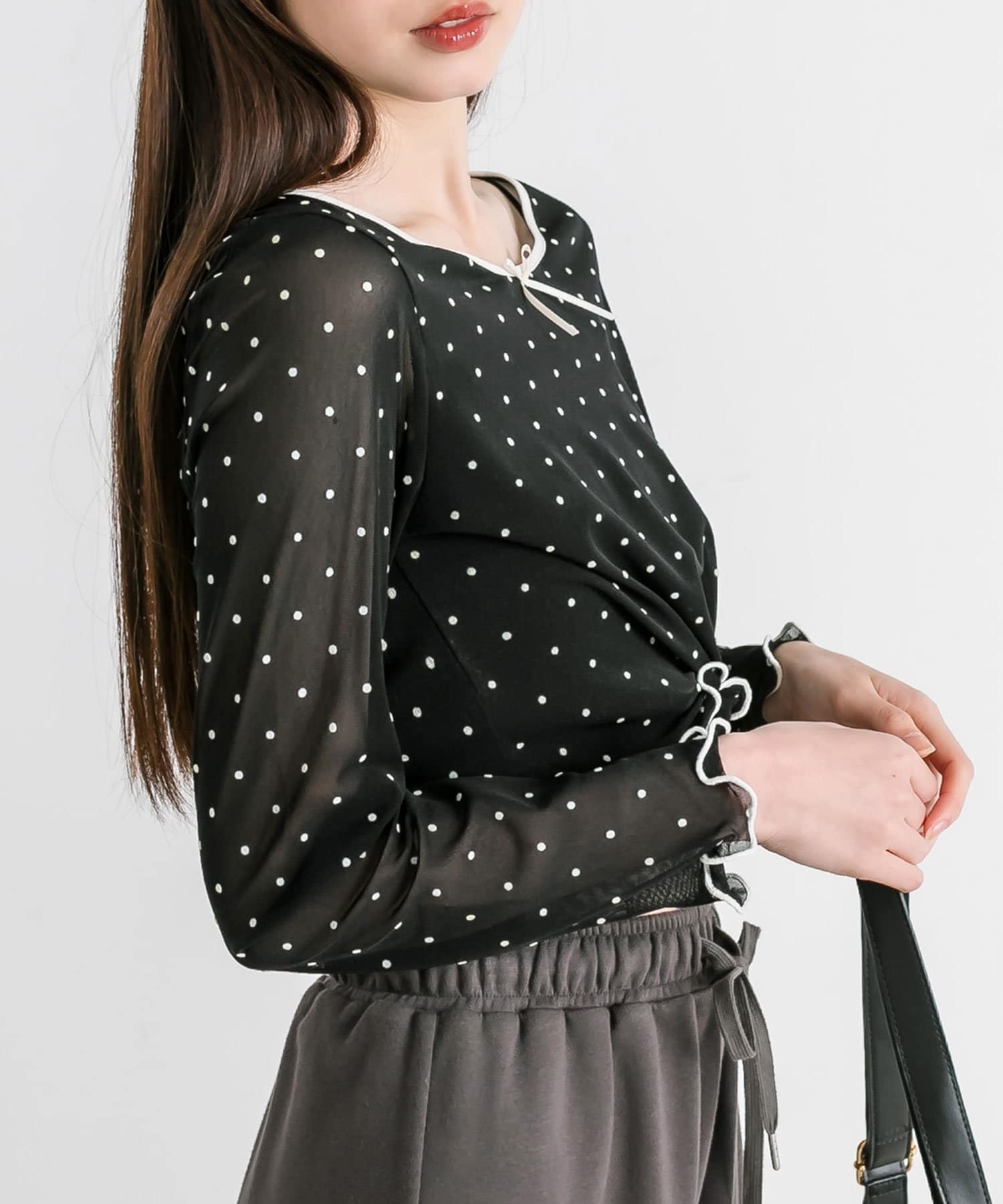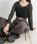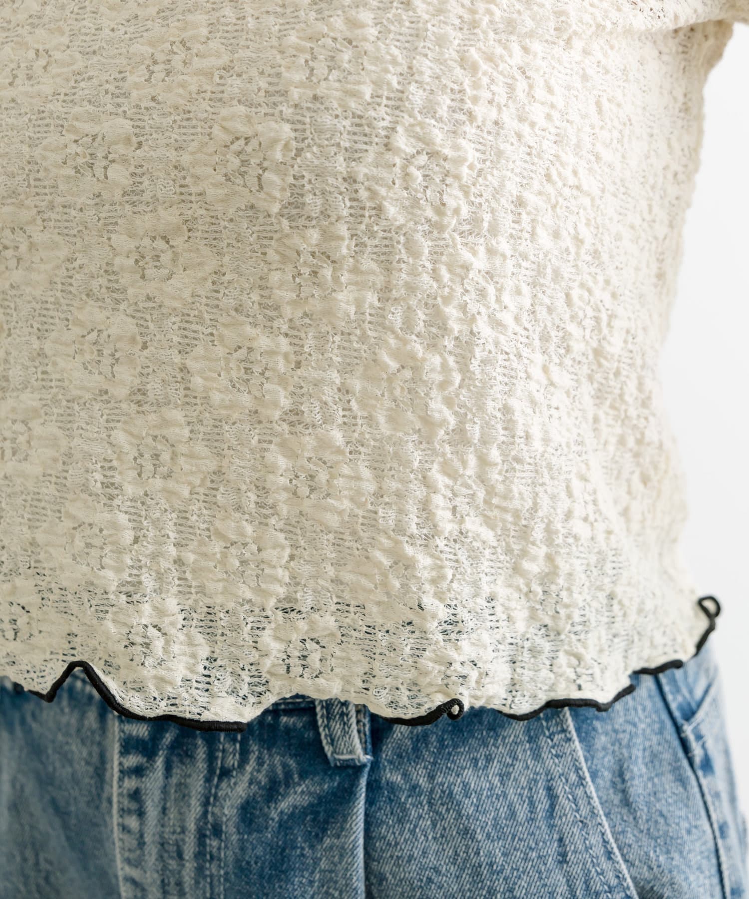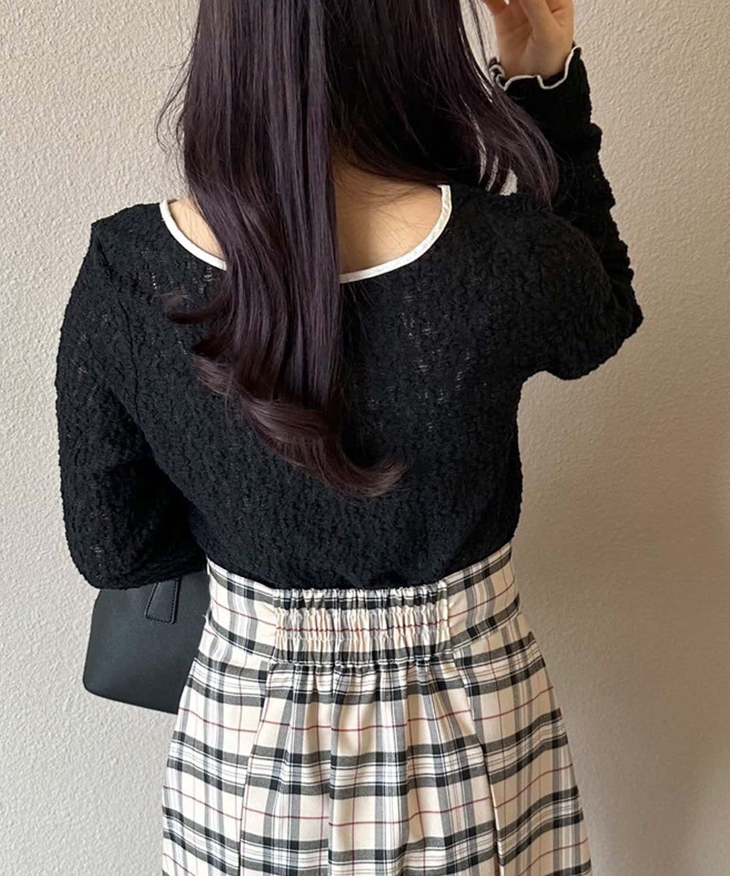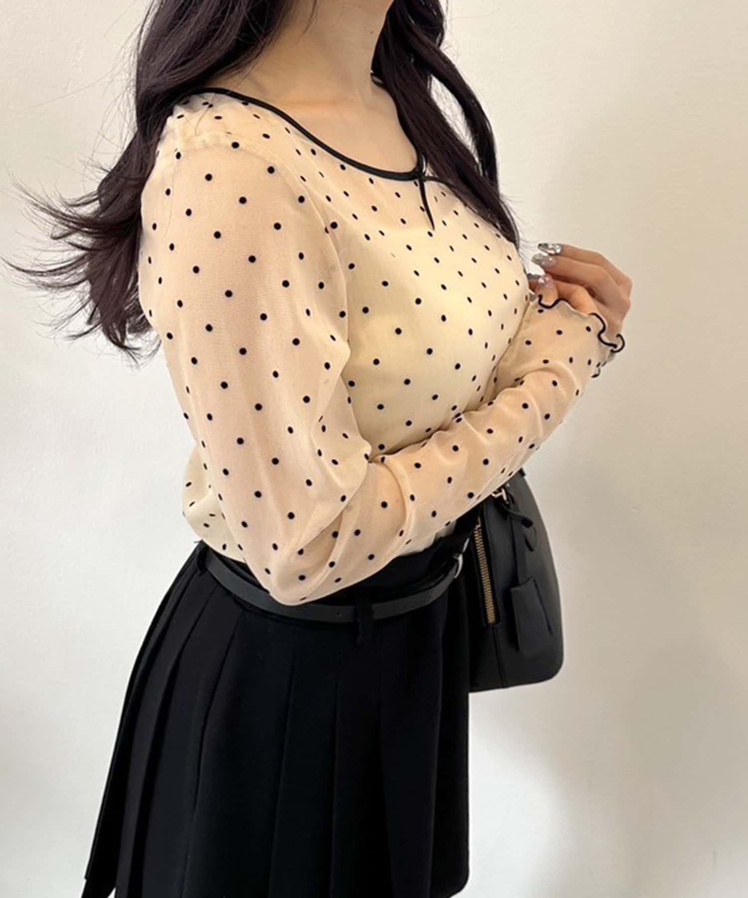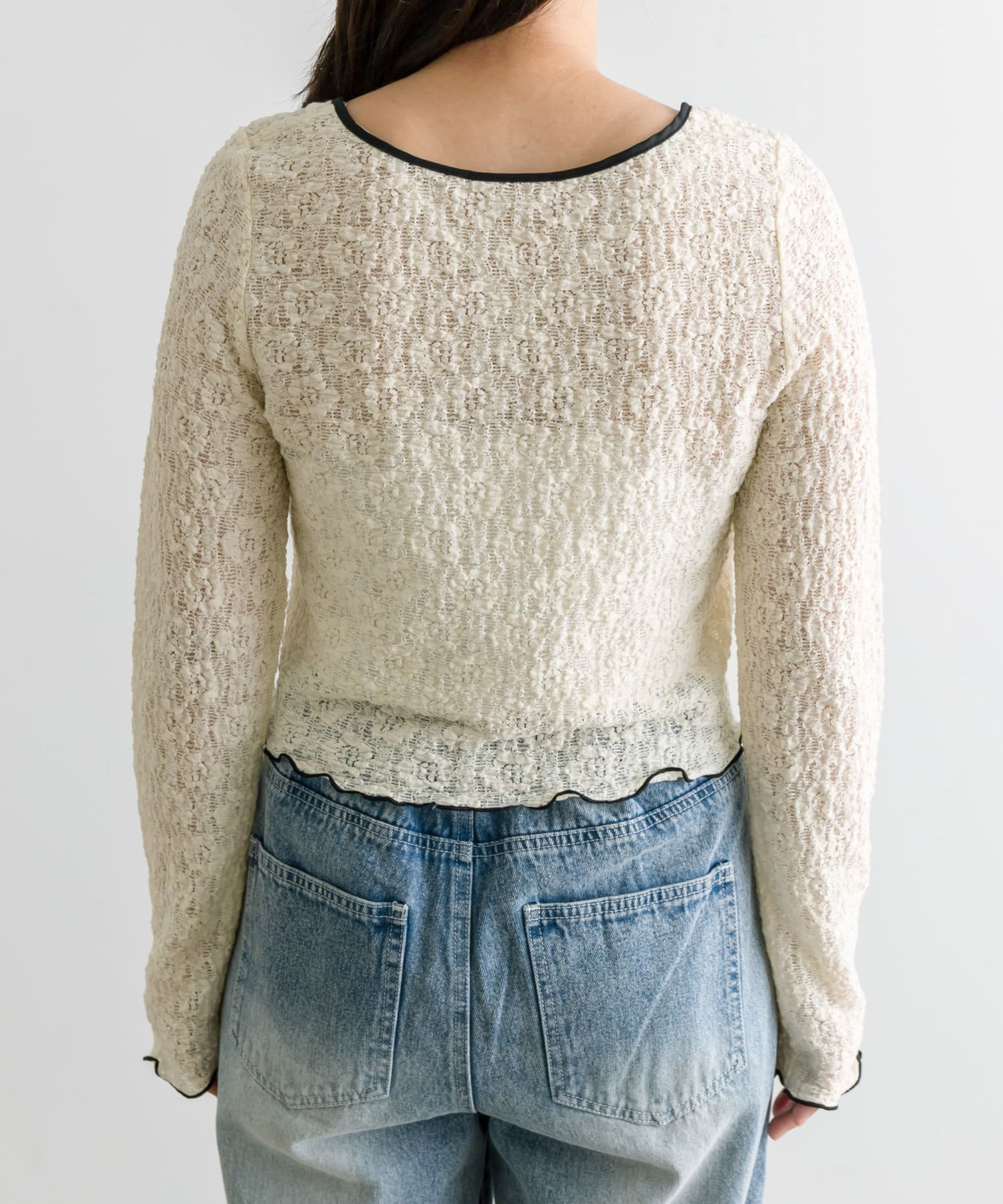 ・ちょうどいい透け感で肌なじみがよく、トップスとして着てもインナー感のないデザインです。