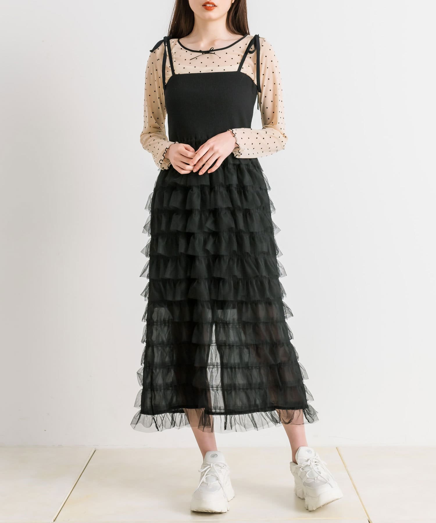 ・オフとブラックは総レース、アイボリーはドット柄のチュール素材です。