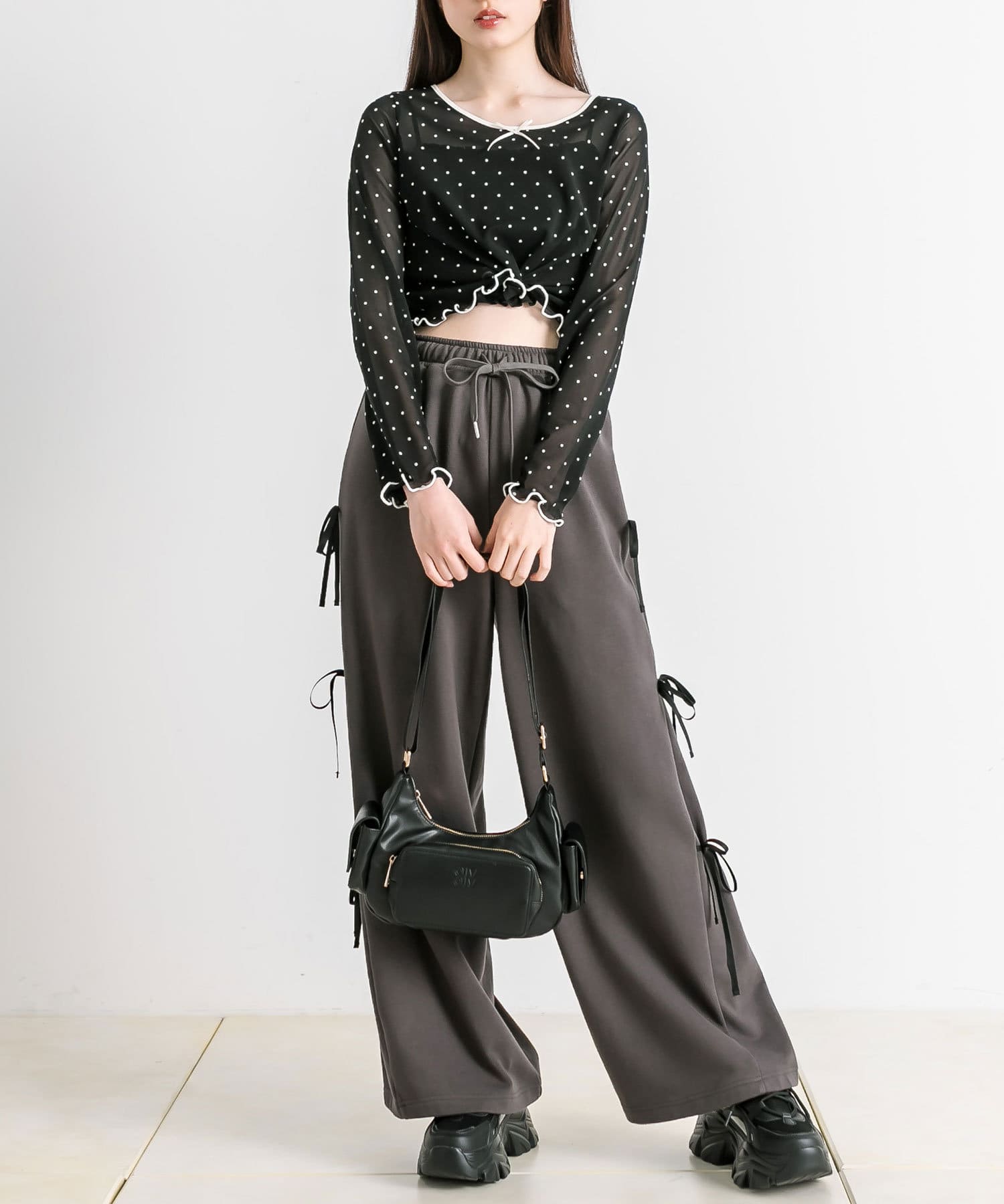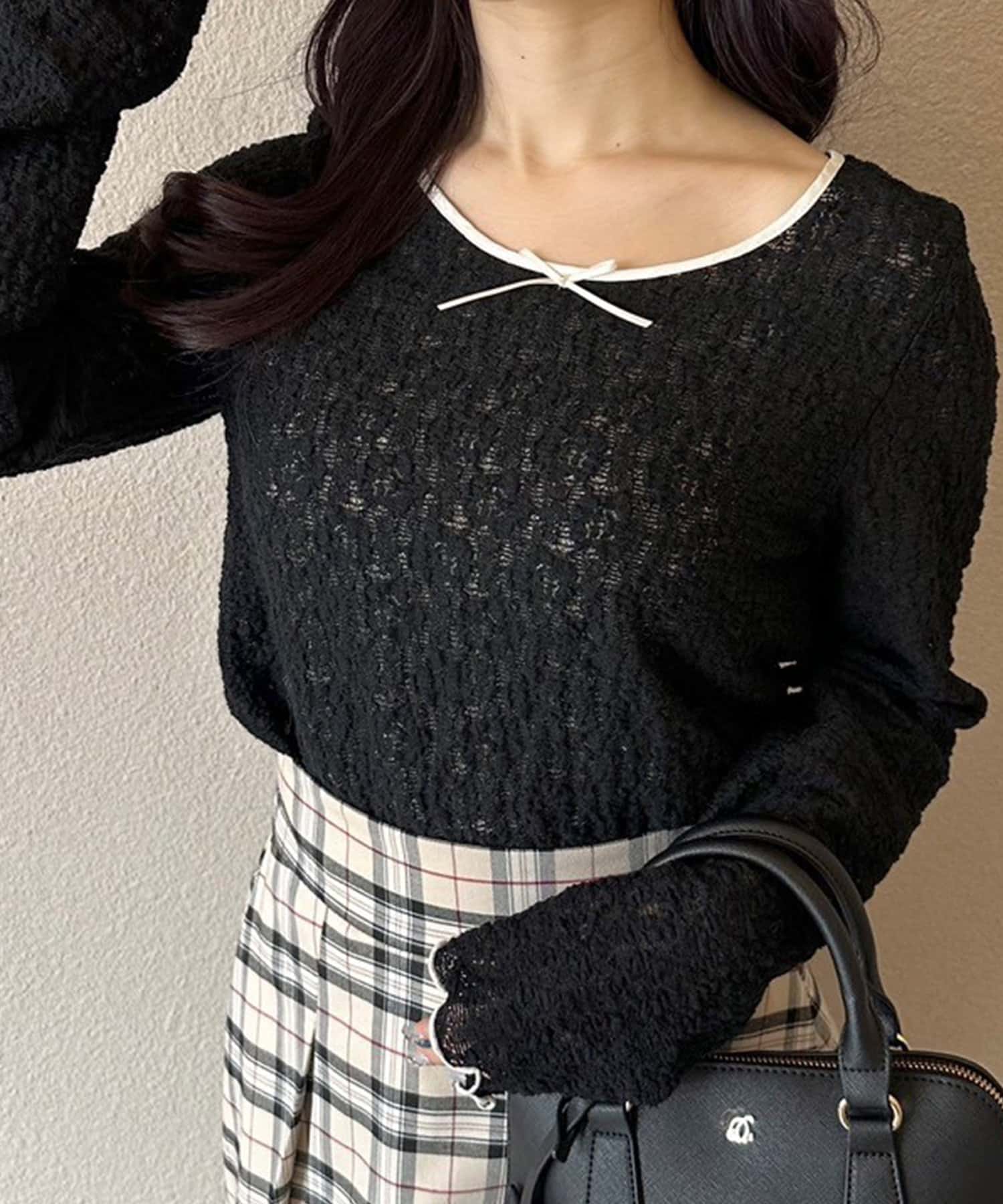 ・リボンや配色を施したバレエコアなデザインのインナー。