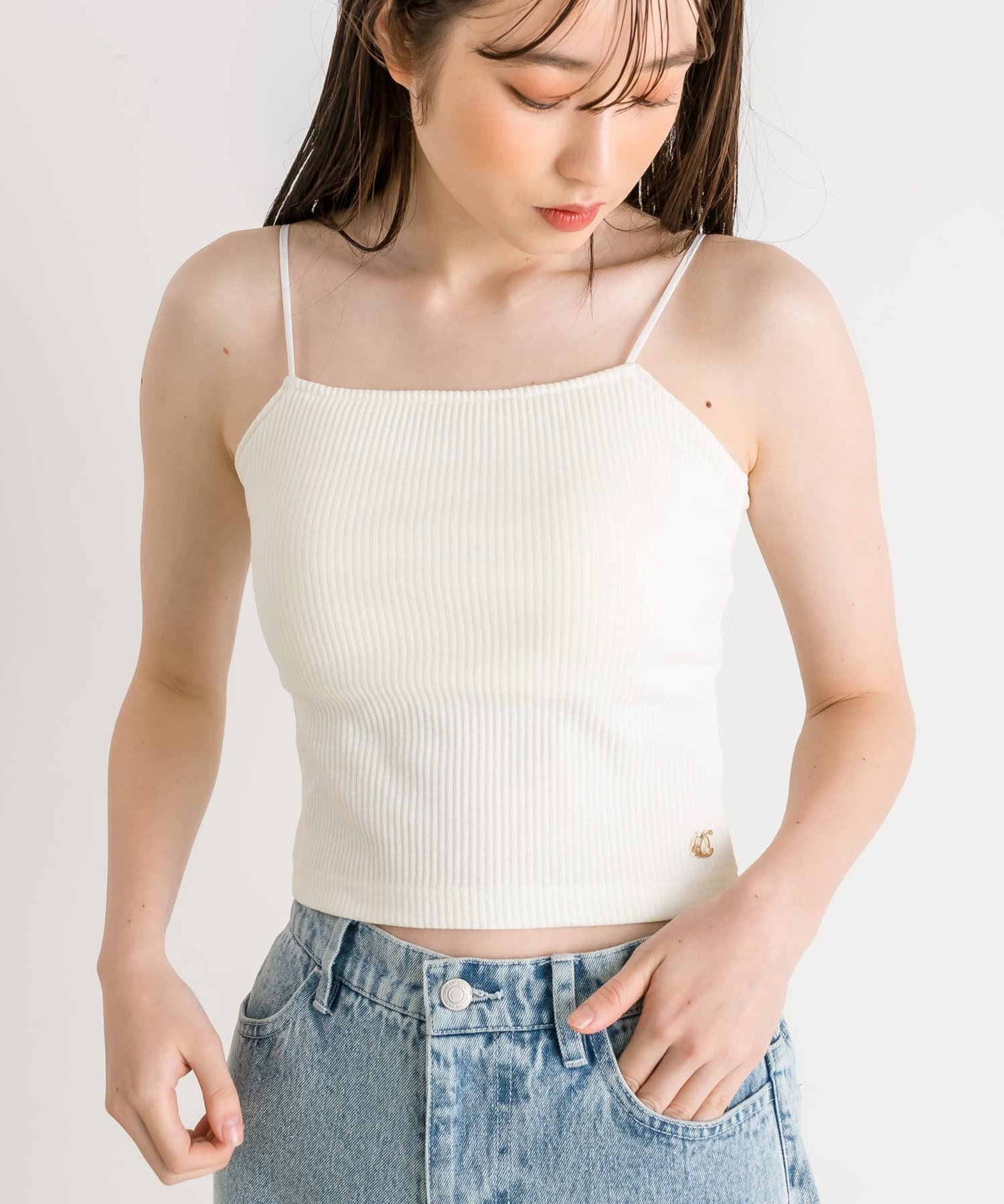 ・ストレスフリーなノンワイヤーのカップ付きキャミソール。