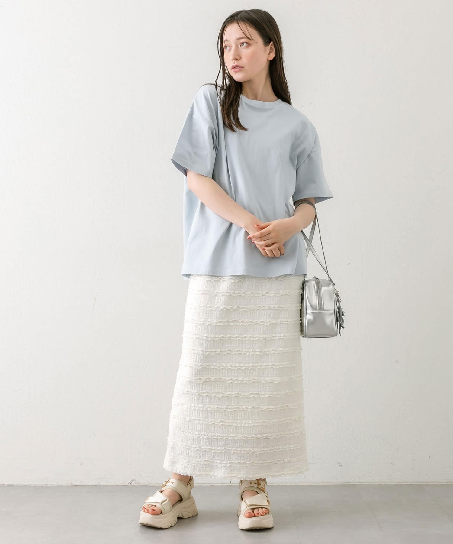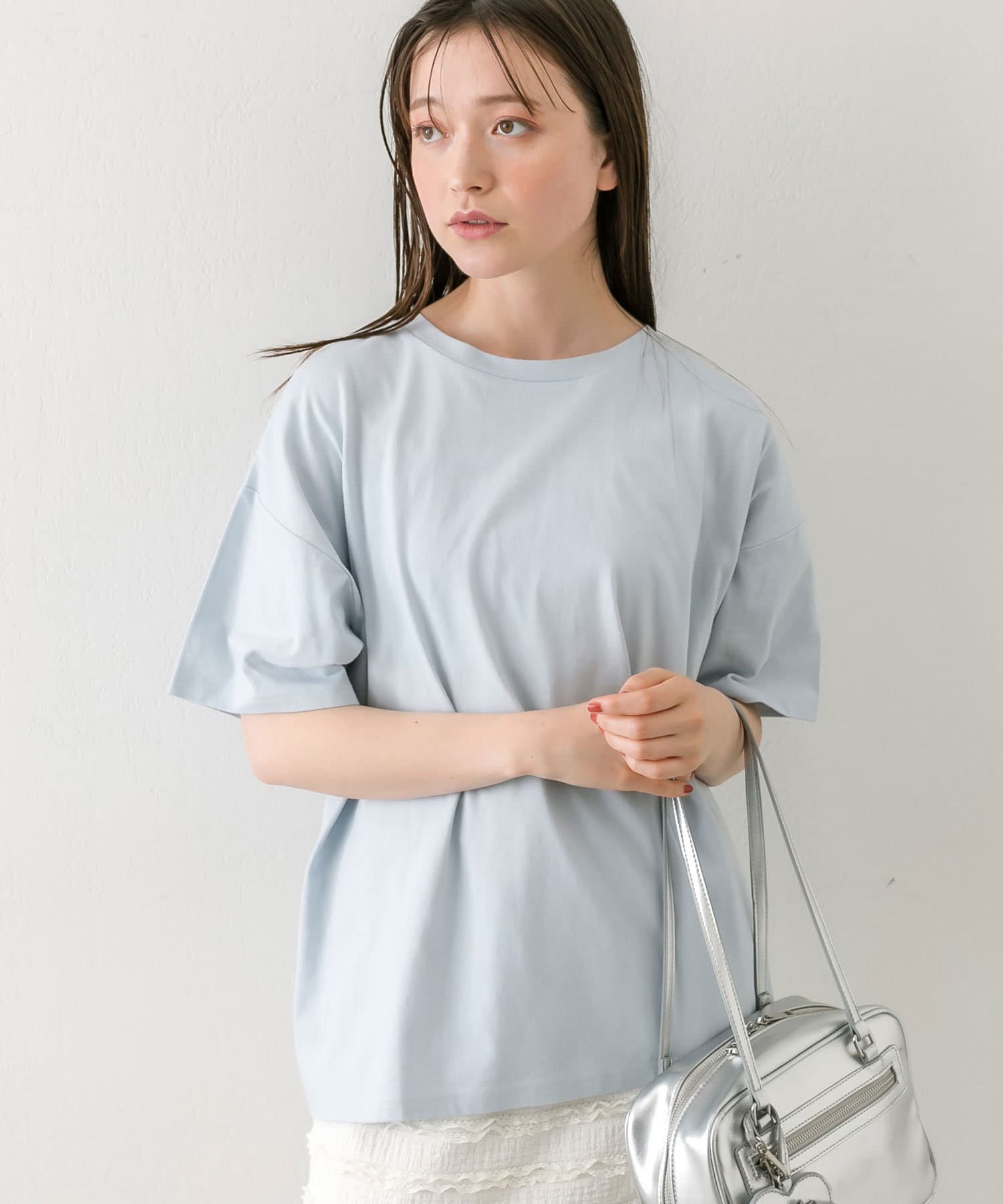 ・ドロップドショルダーでトレンドライクな着こなしに。