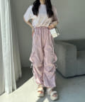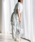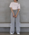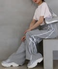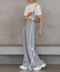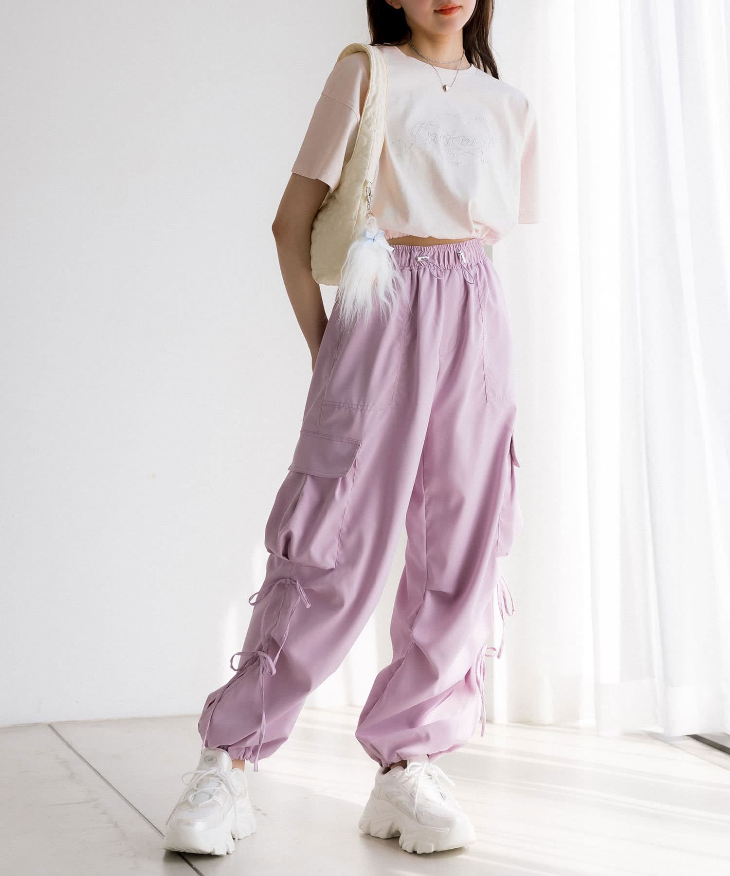 ・トレンドのラインパンツやカーゴパンツで合わせるのがおすすめ。