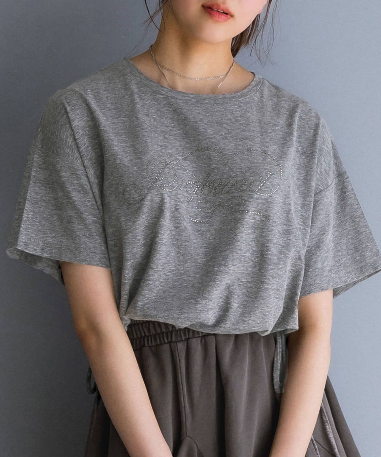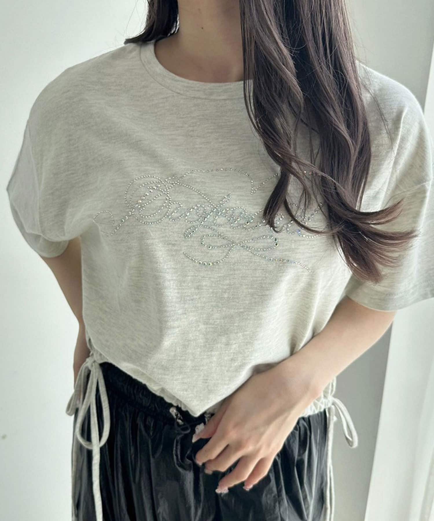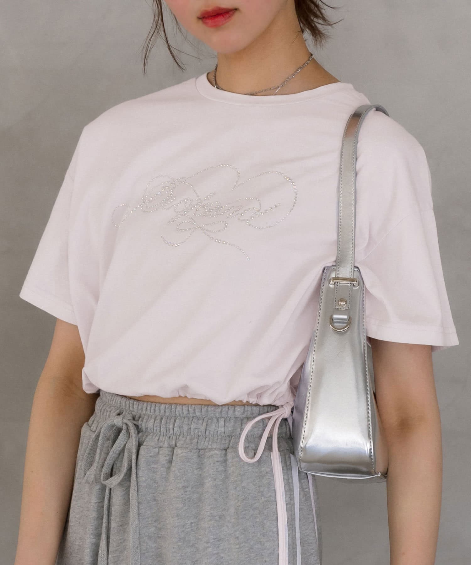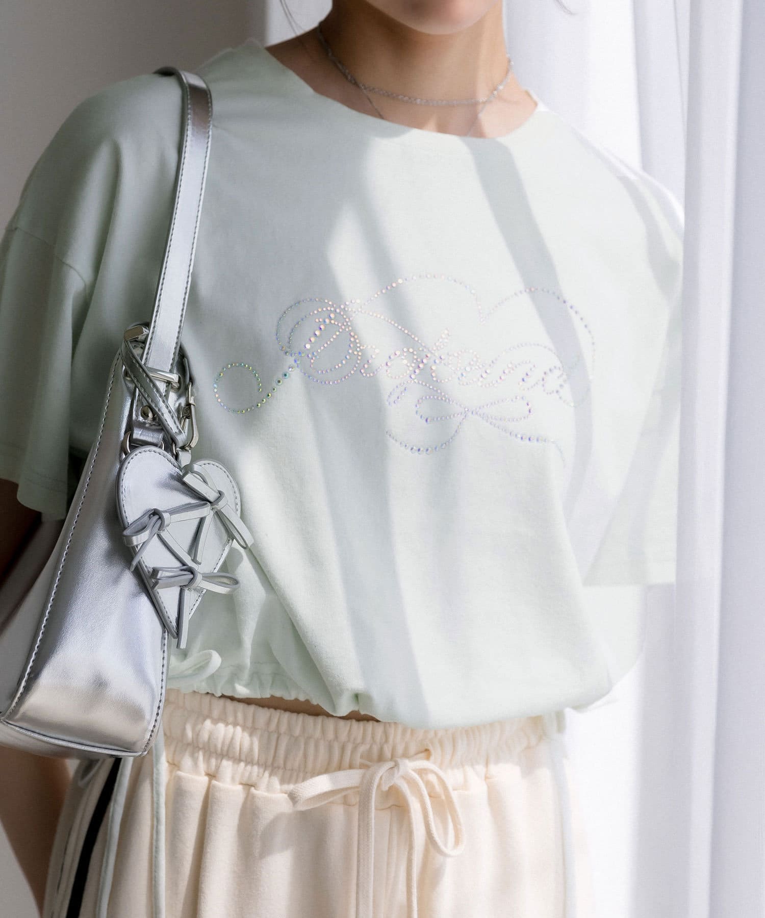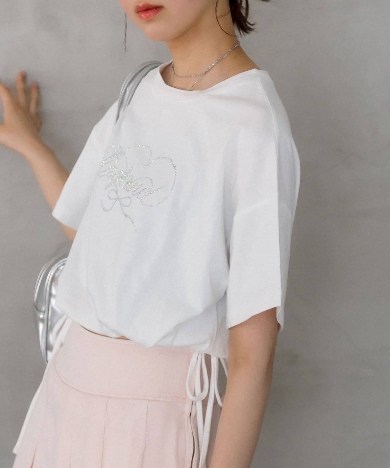 ・裾リボンときらきらのロゴがポイントのTシャツ。