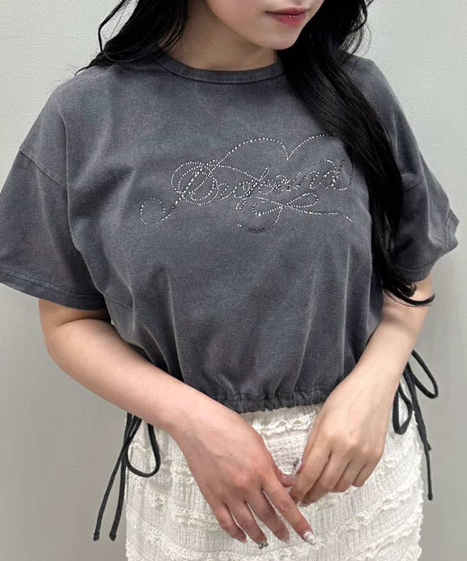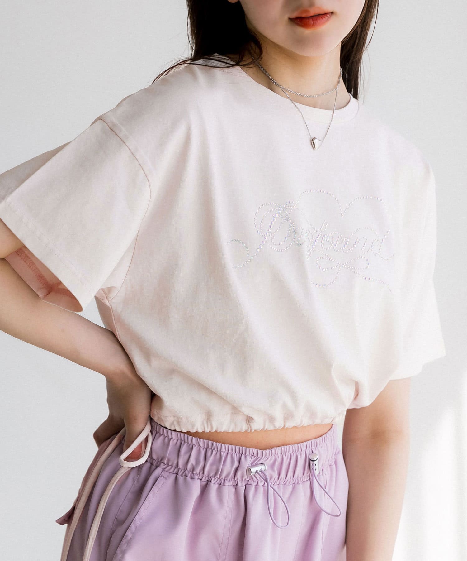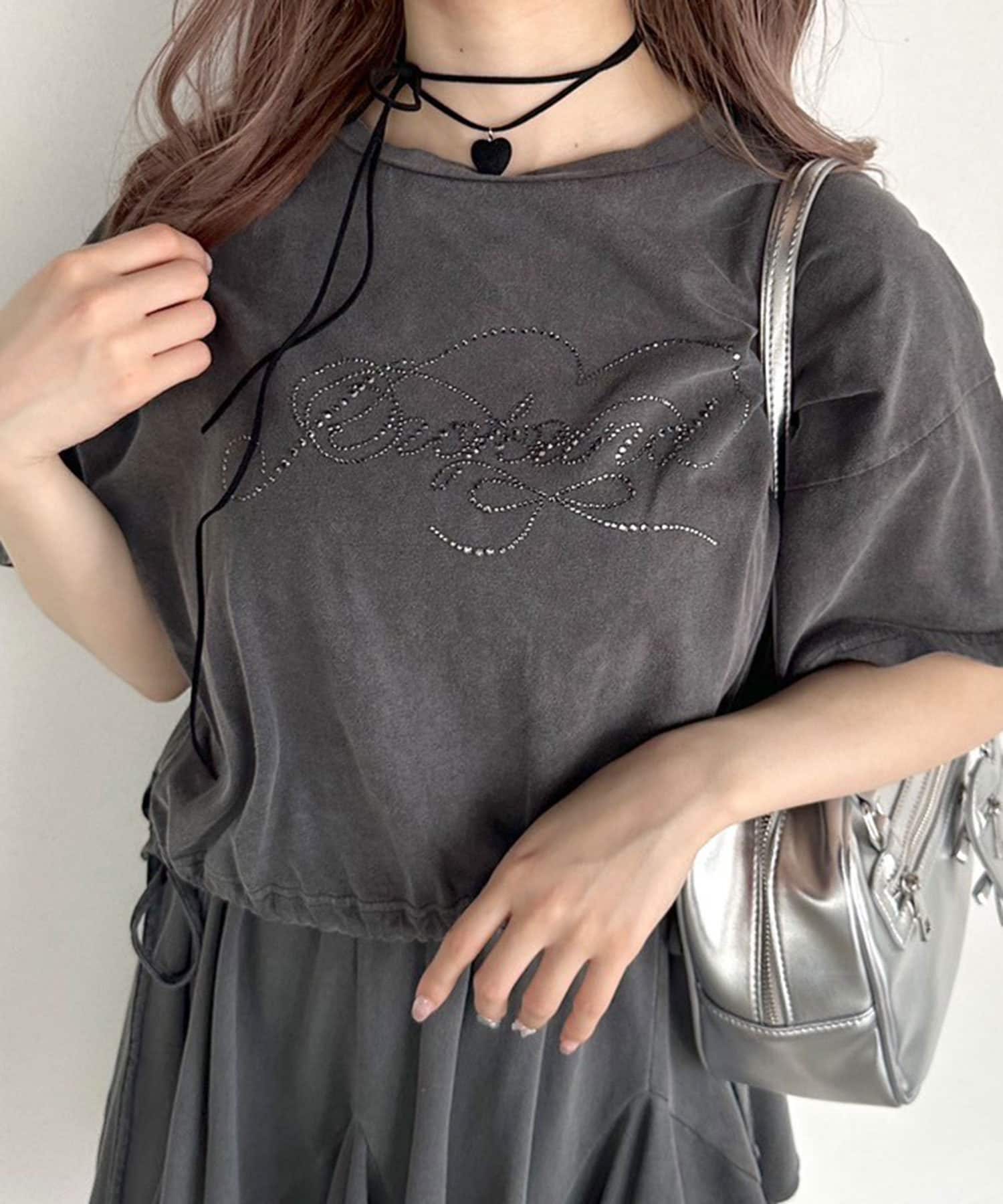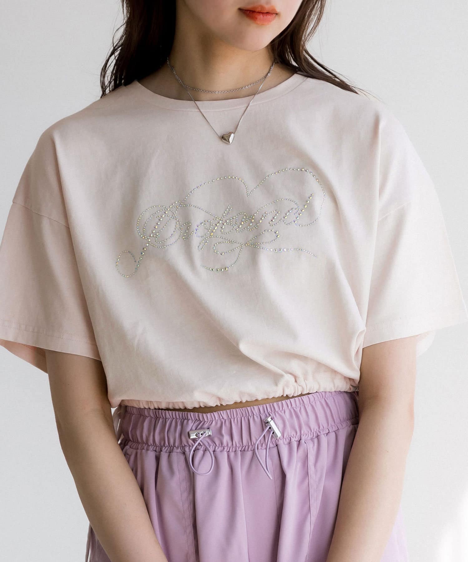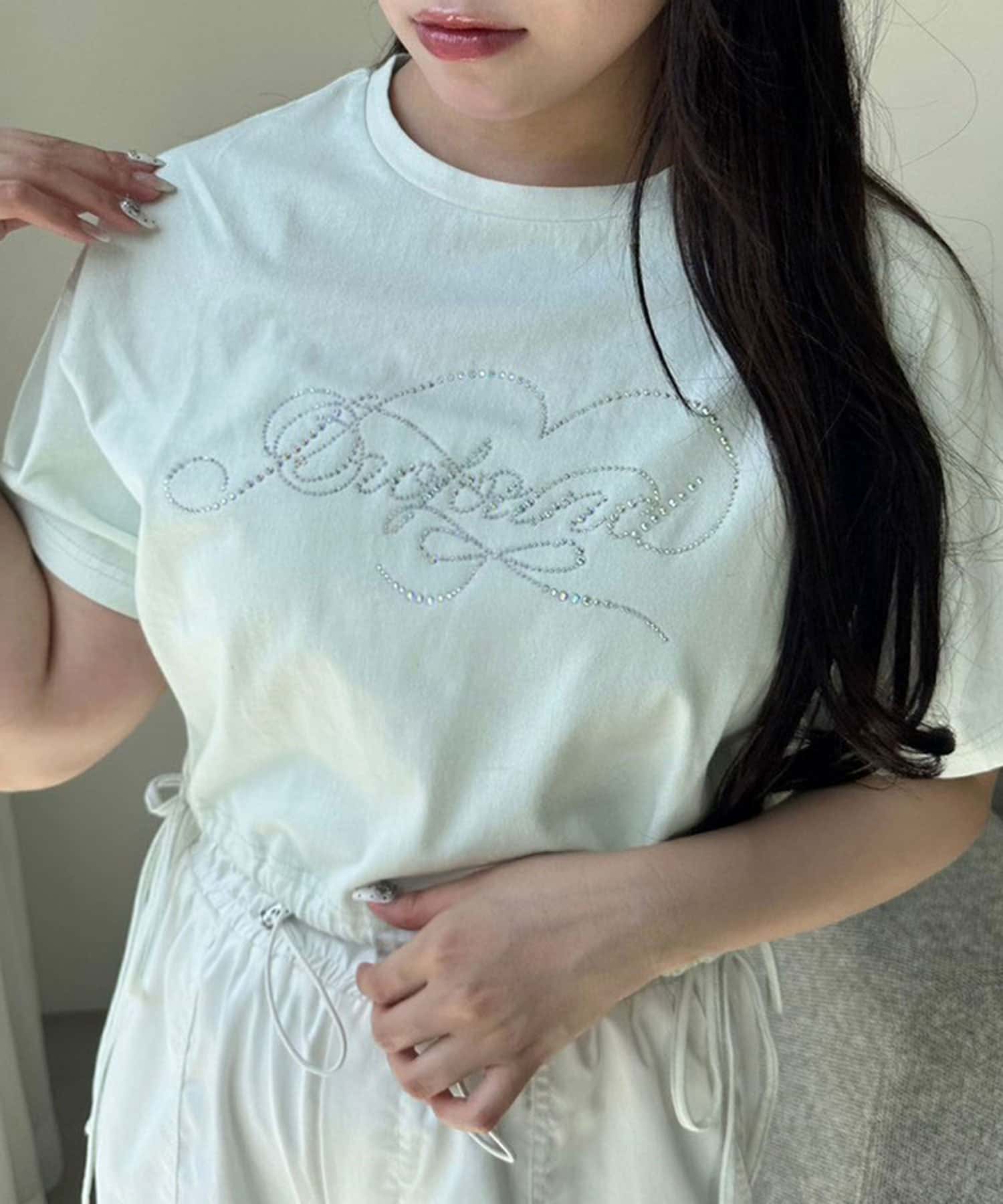 ・裾リボンときらきらのロゴがポイントのTシャツ。