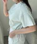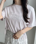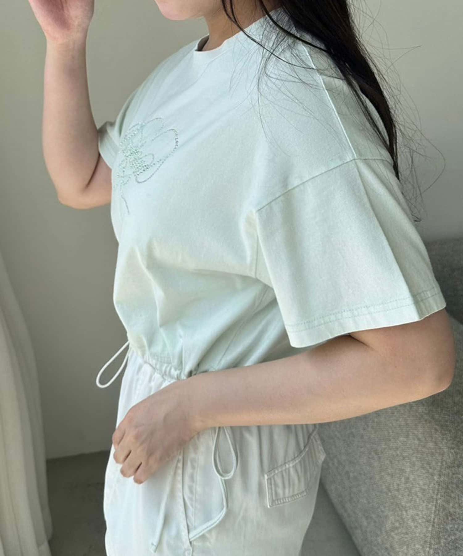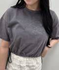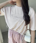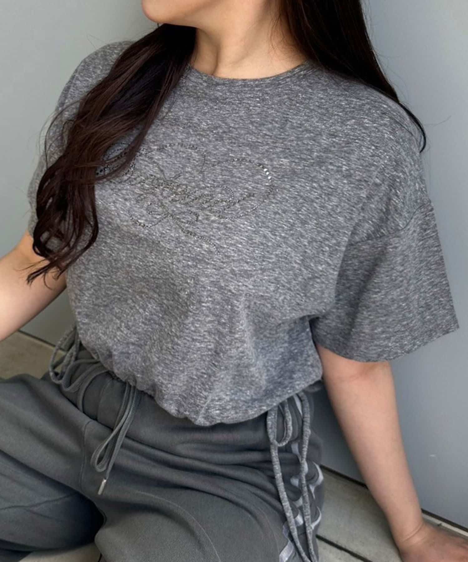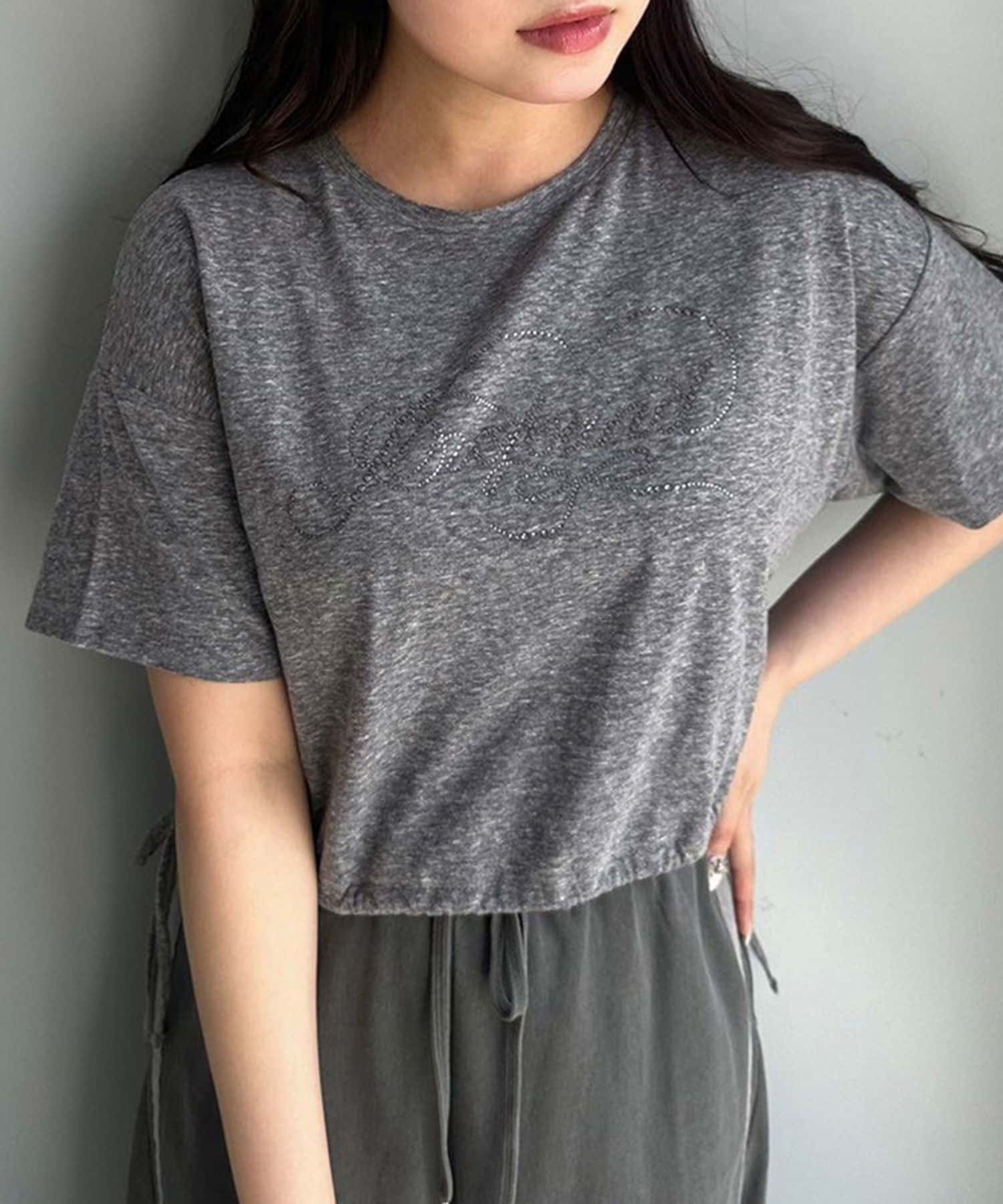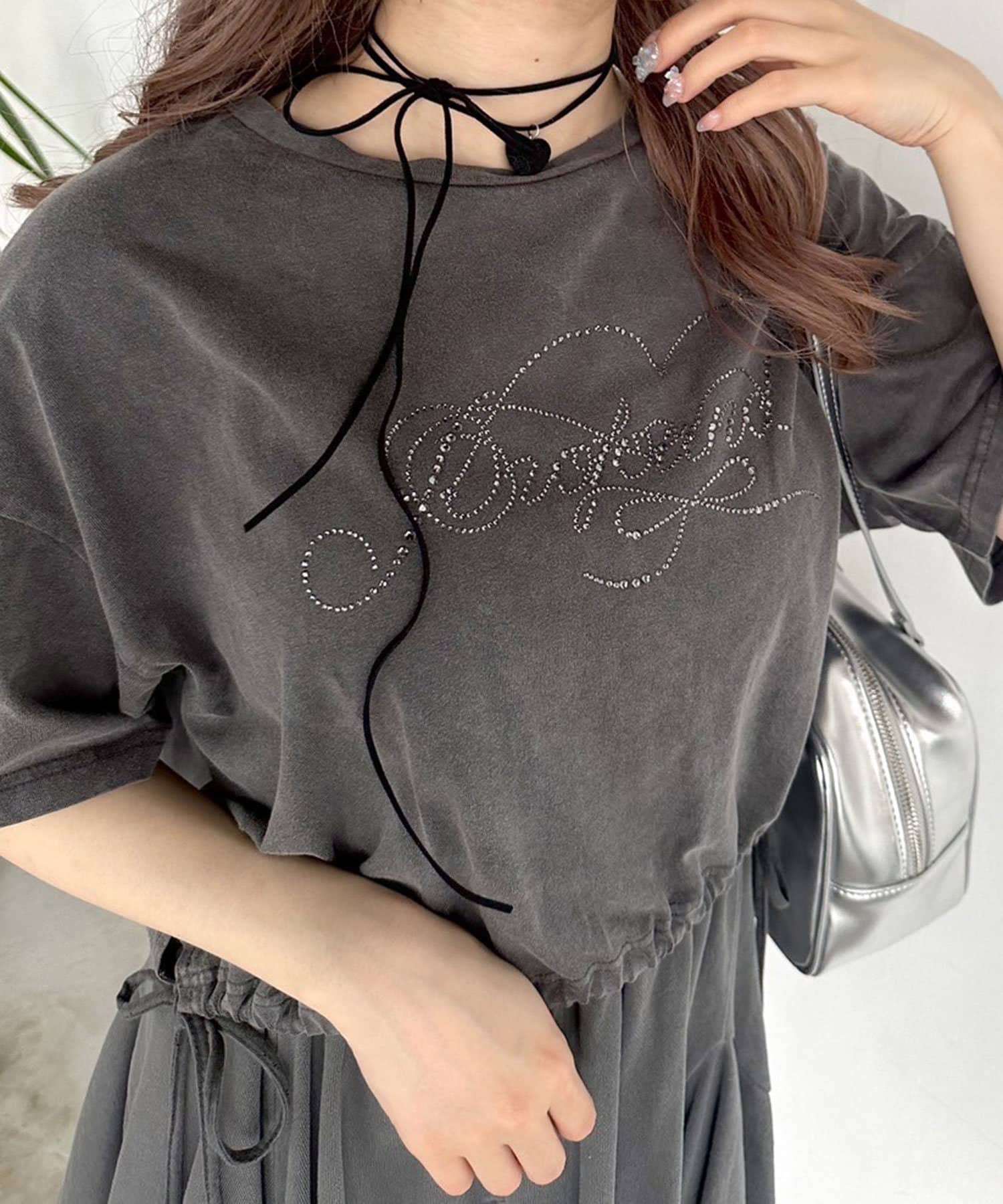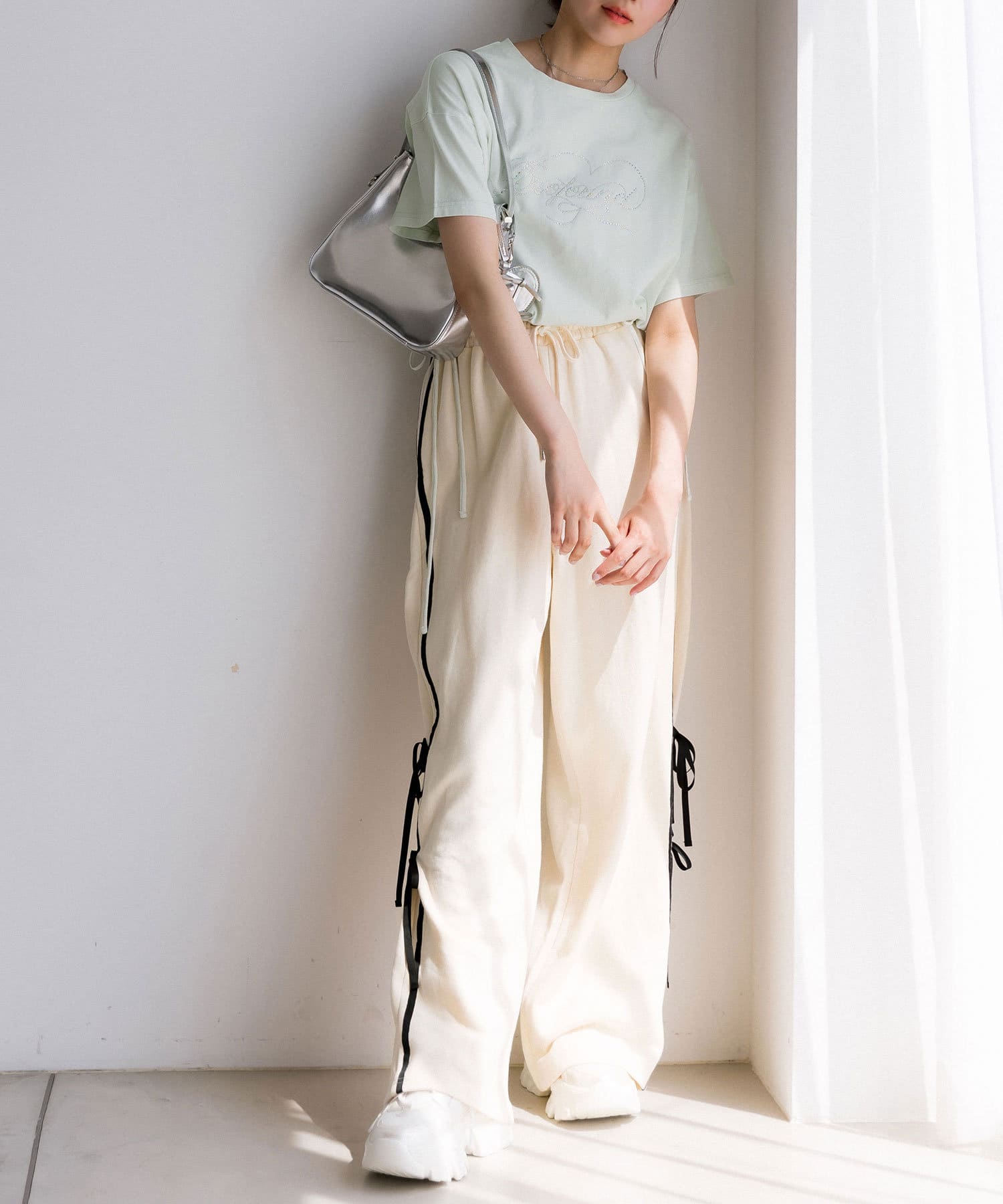 ・裾リボンときらきらのロゴがポイントのTシャツ。