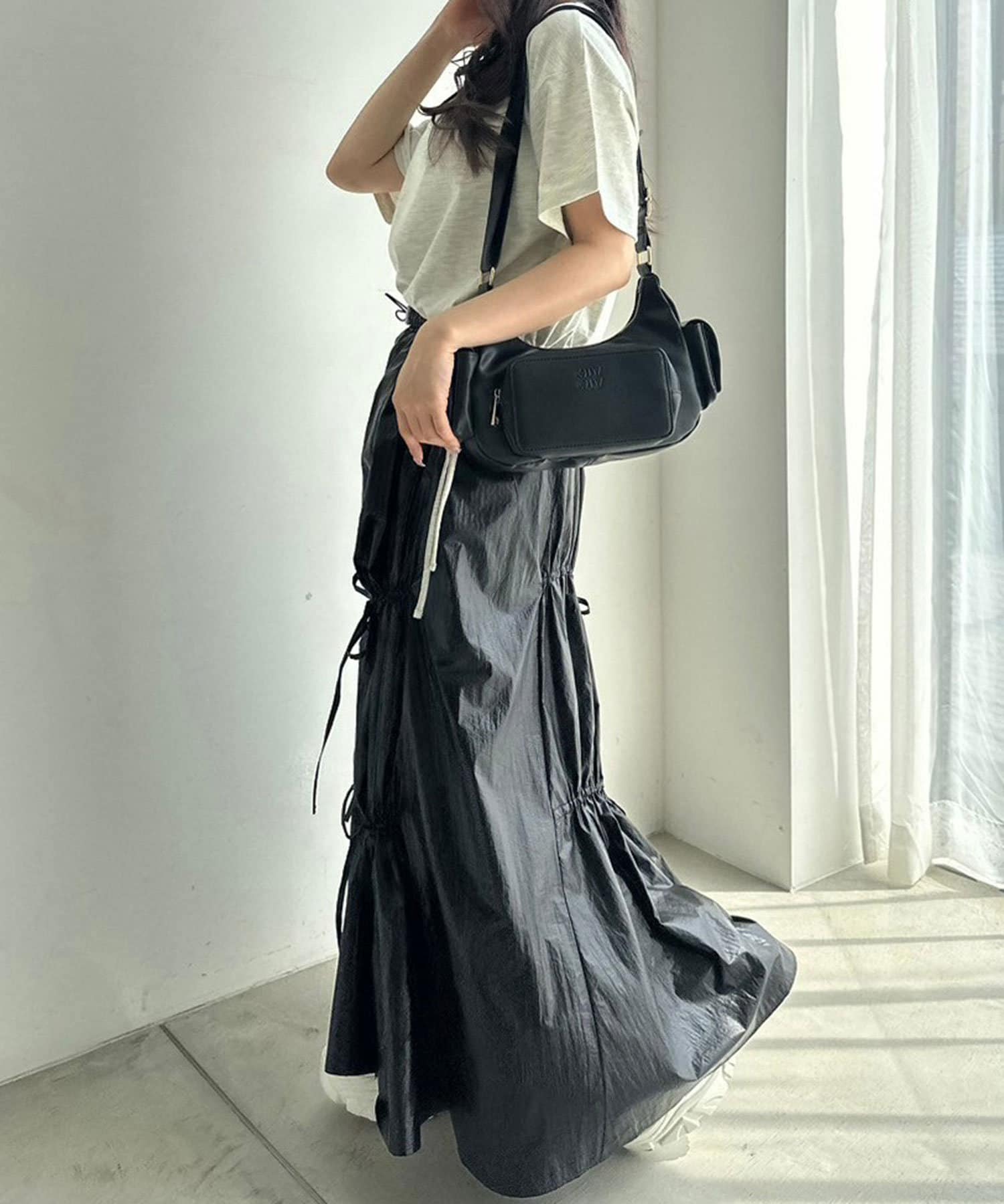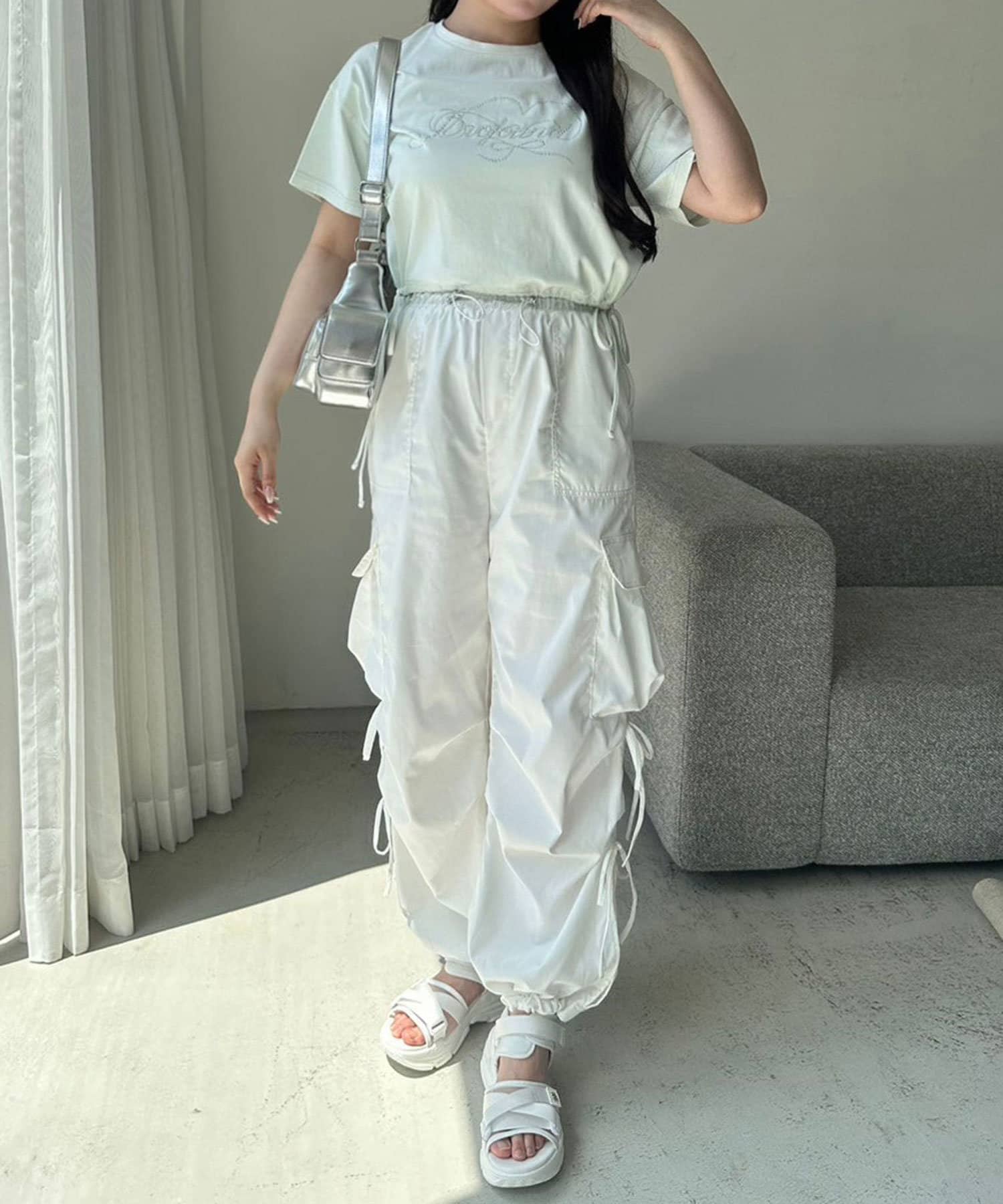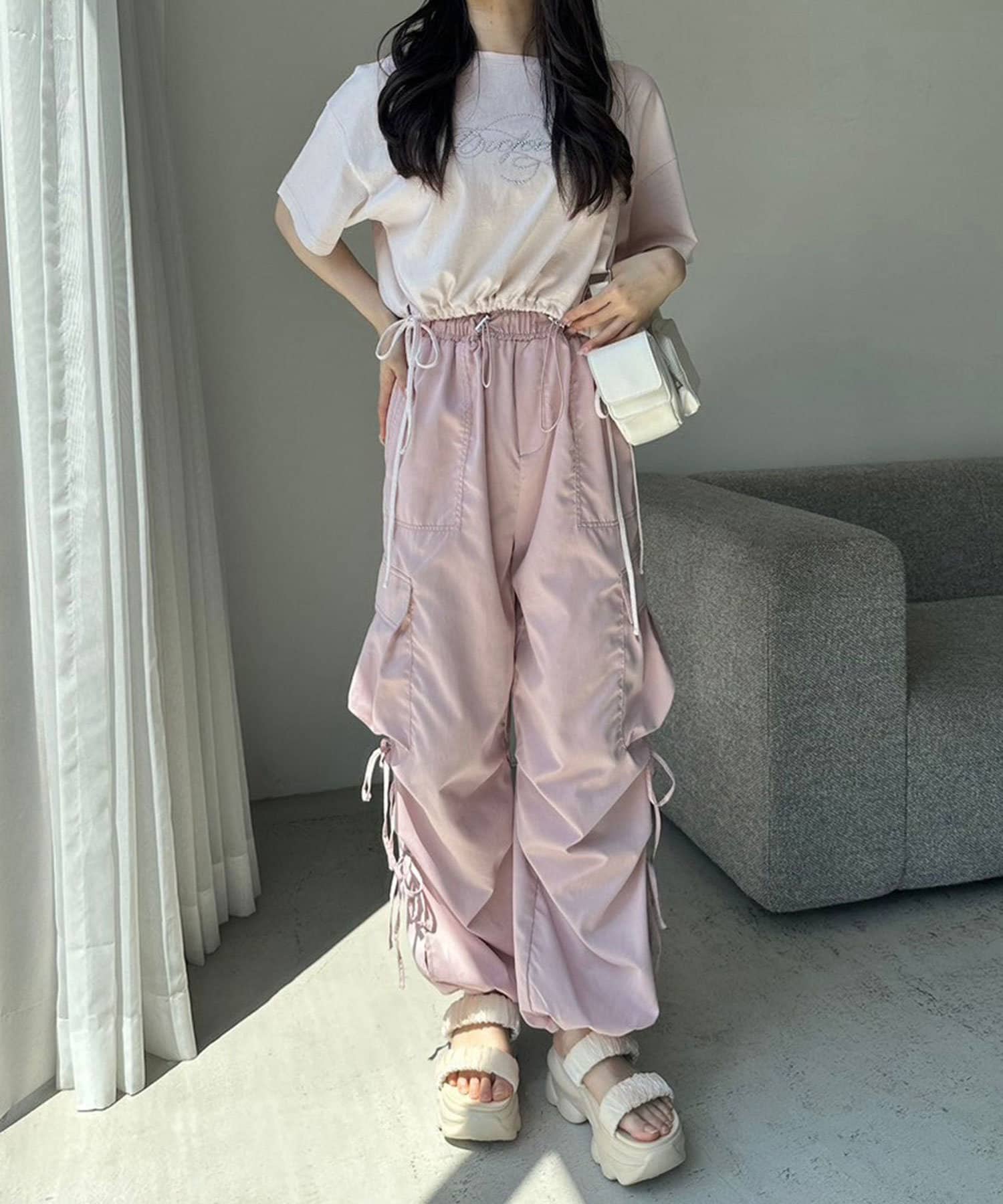 ・リボンで裾が絞れるので、お好みでシルエットを調節できます。