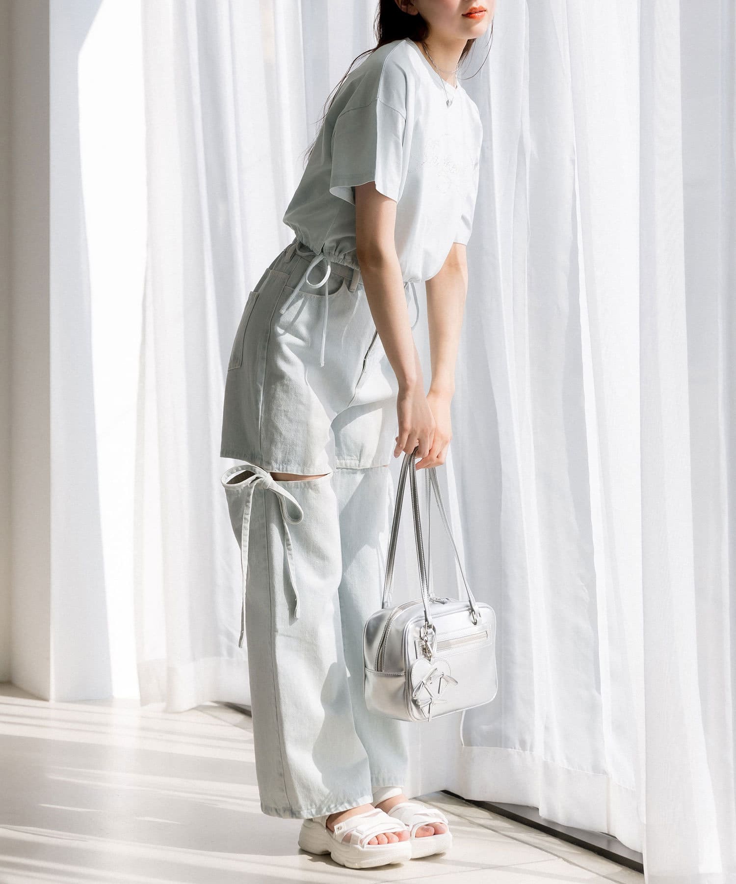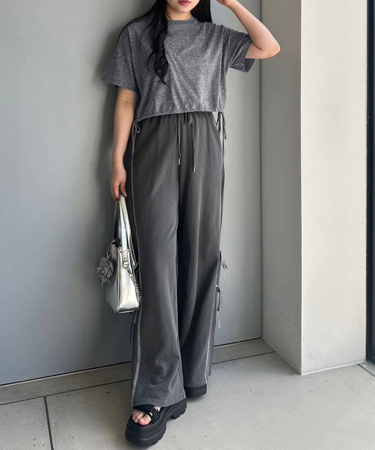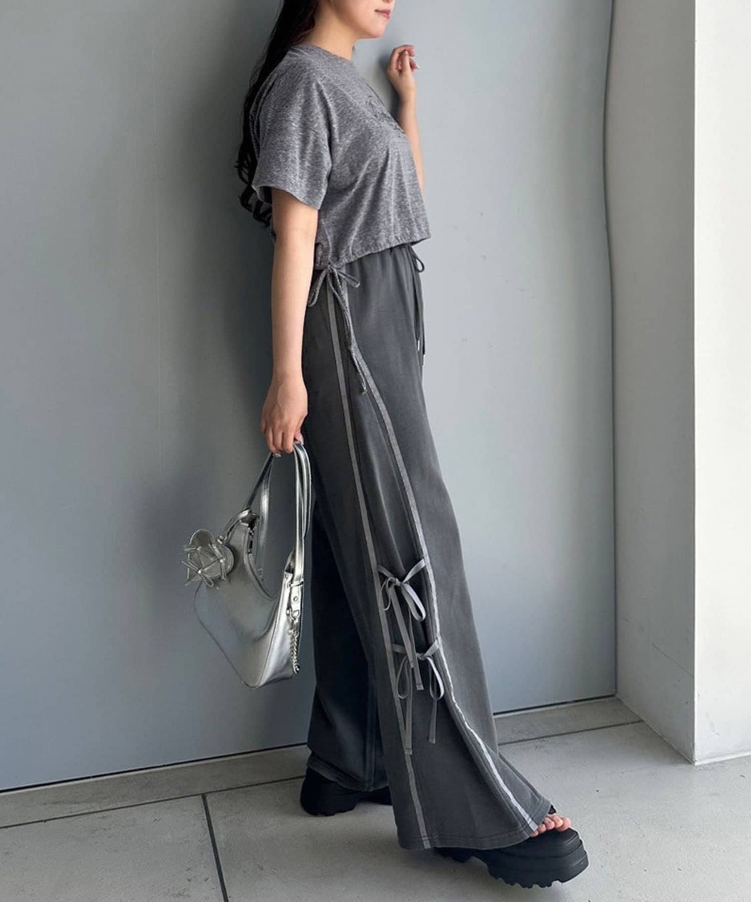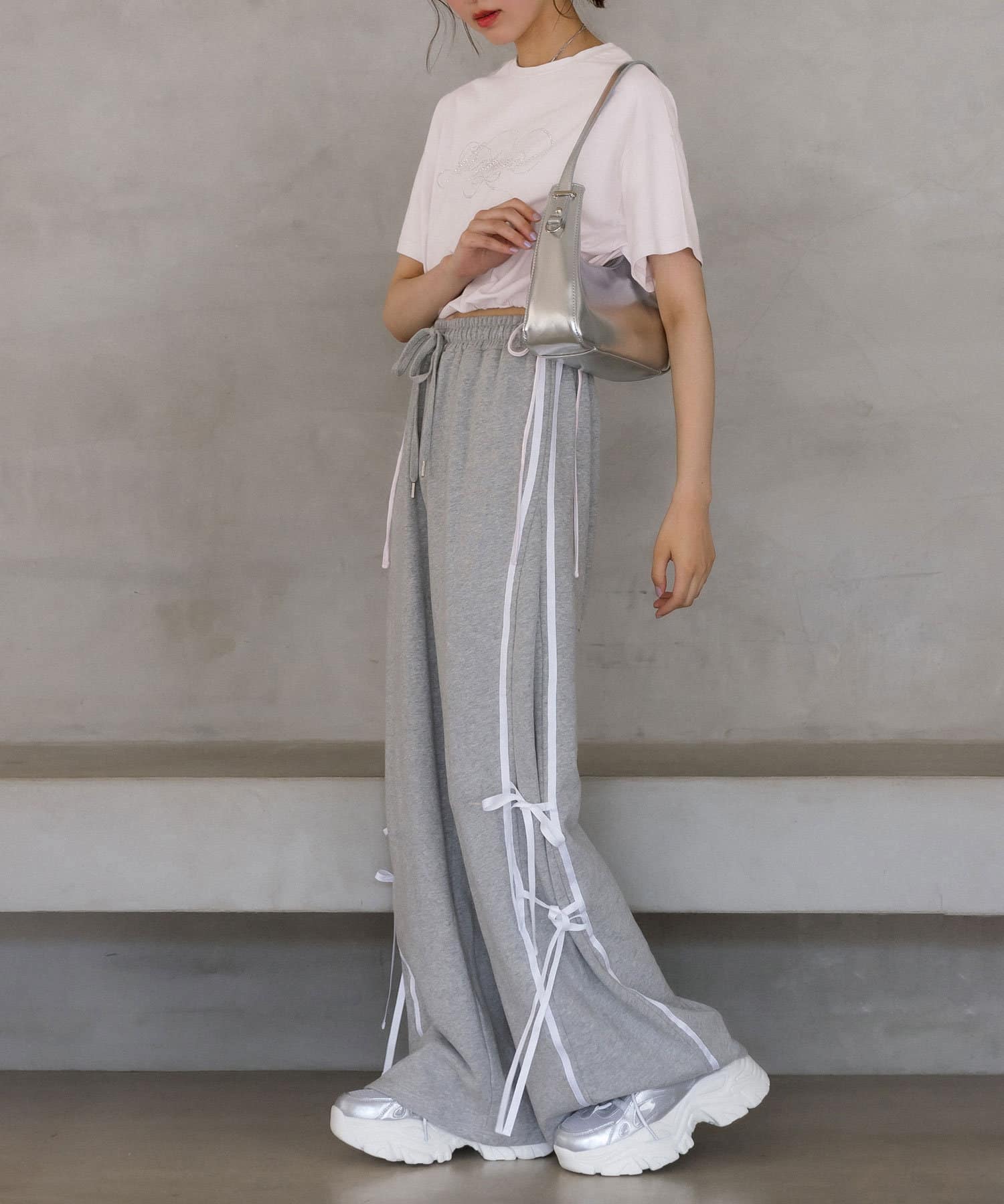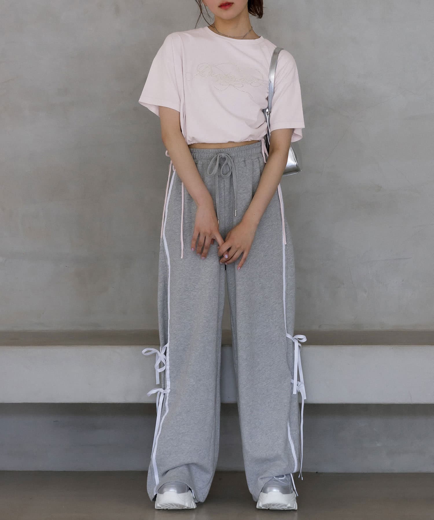 ・ウエストのリボンが可愛らしいクロップド丈です。