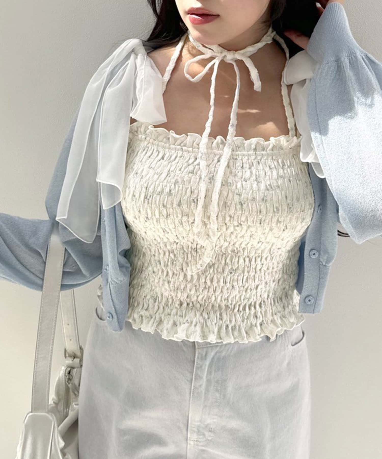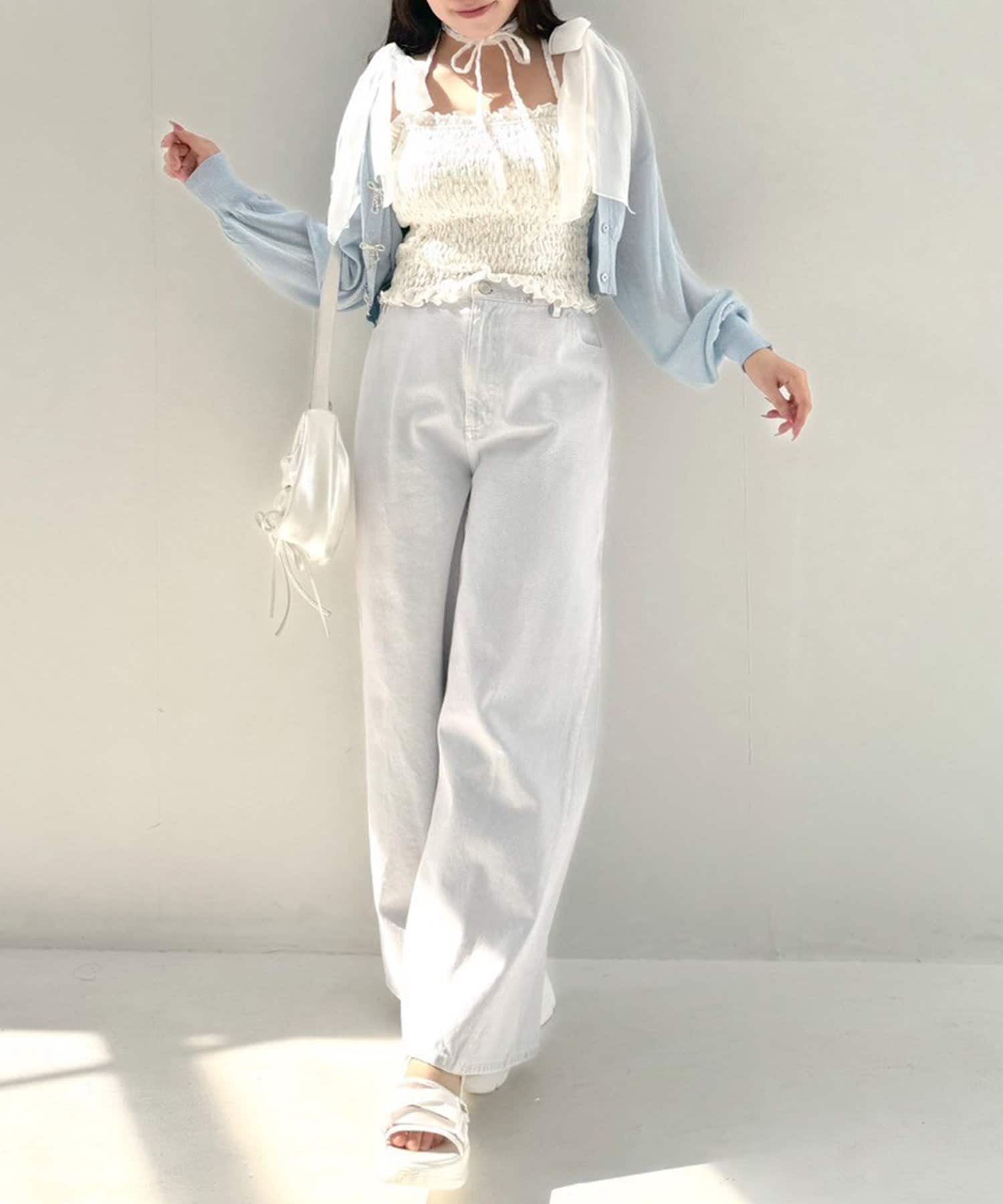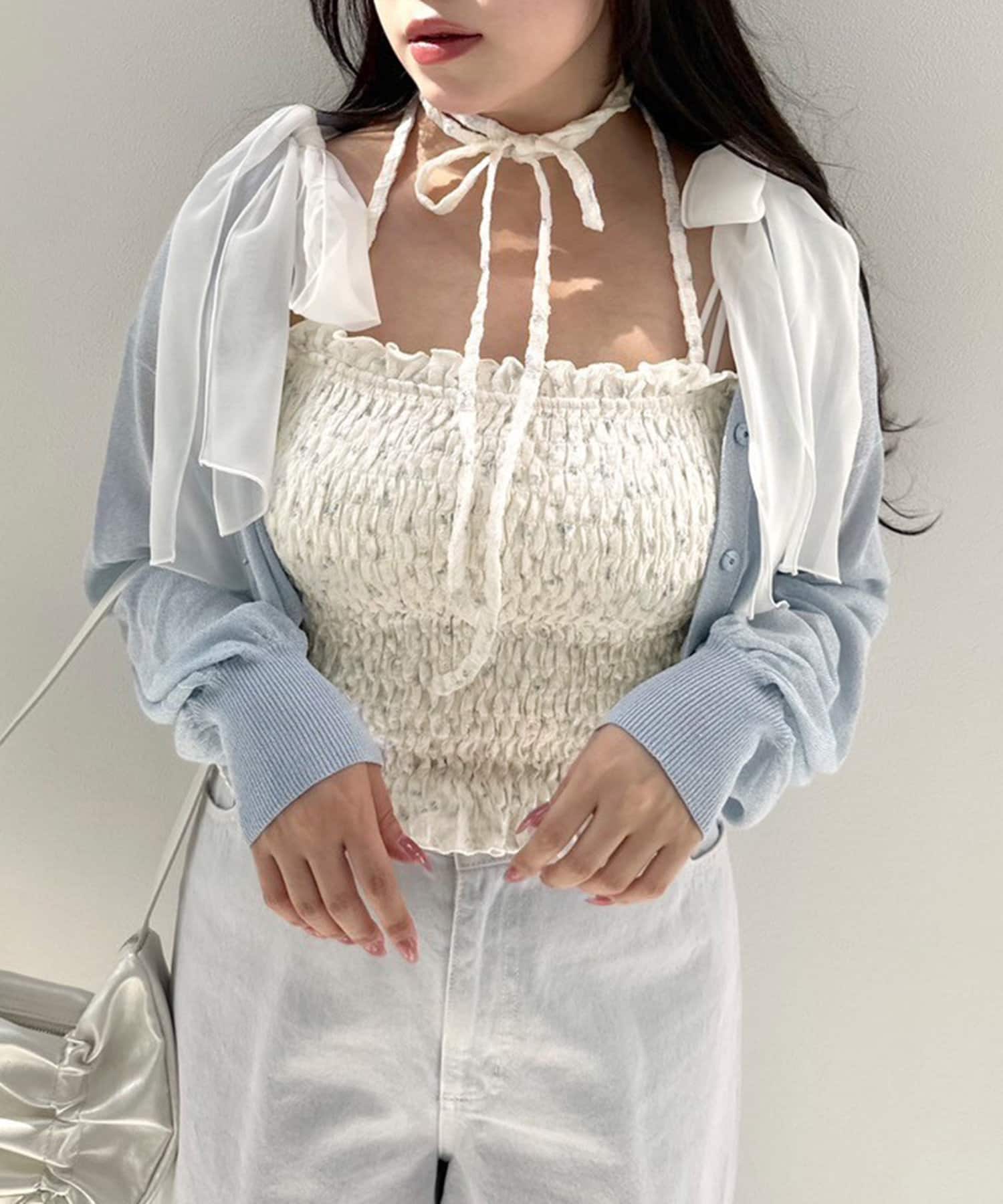・カーディガンやシャツを羽織ったスタイリングや、カップ付きなので1枚でトップスとして着るのも◎