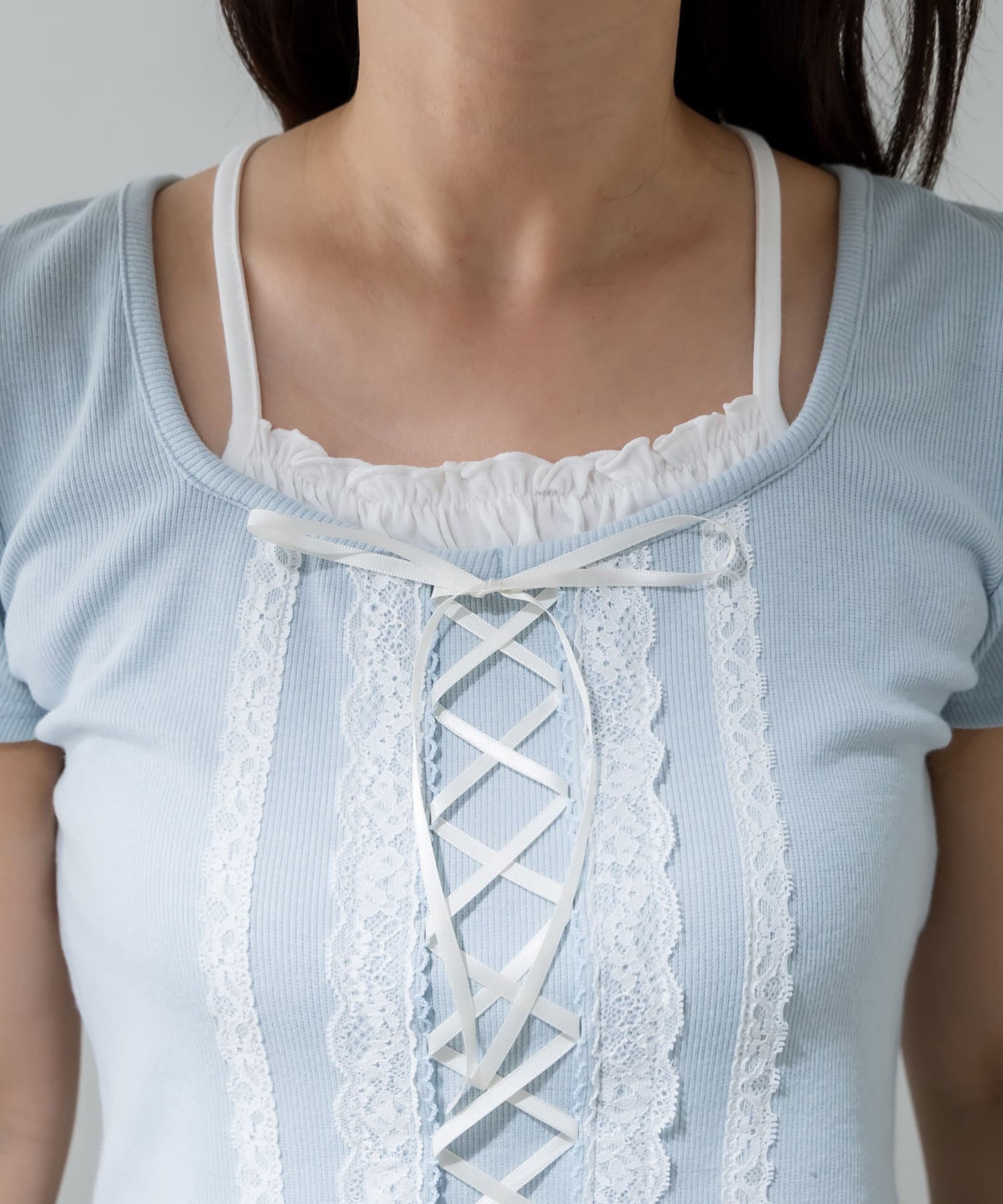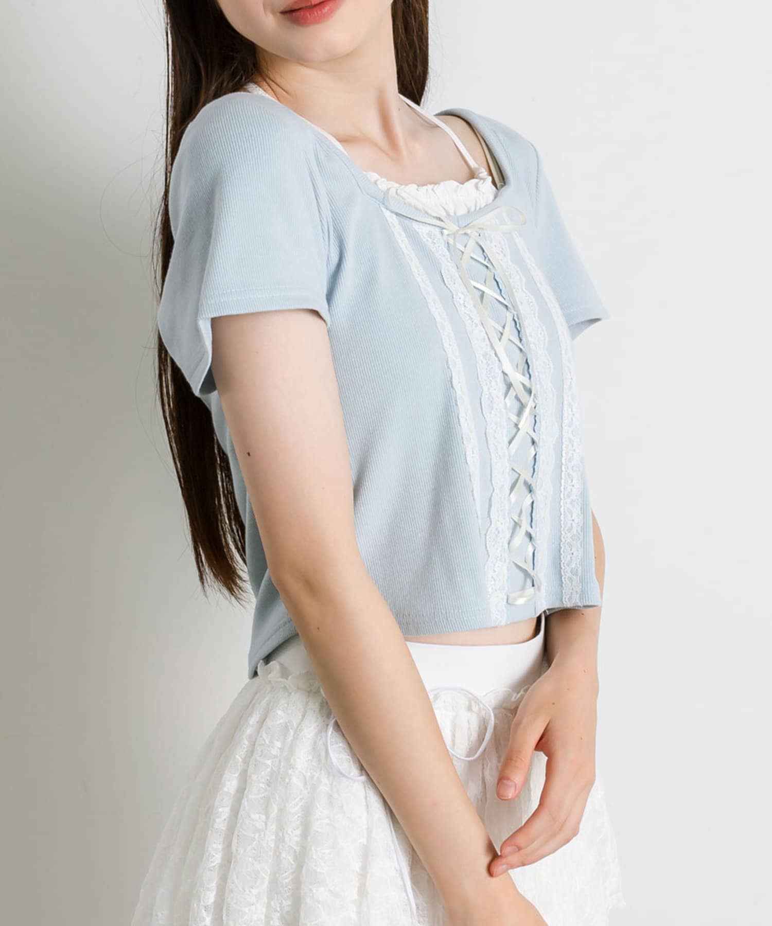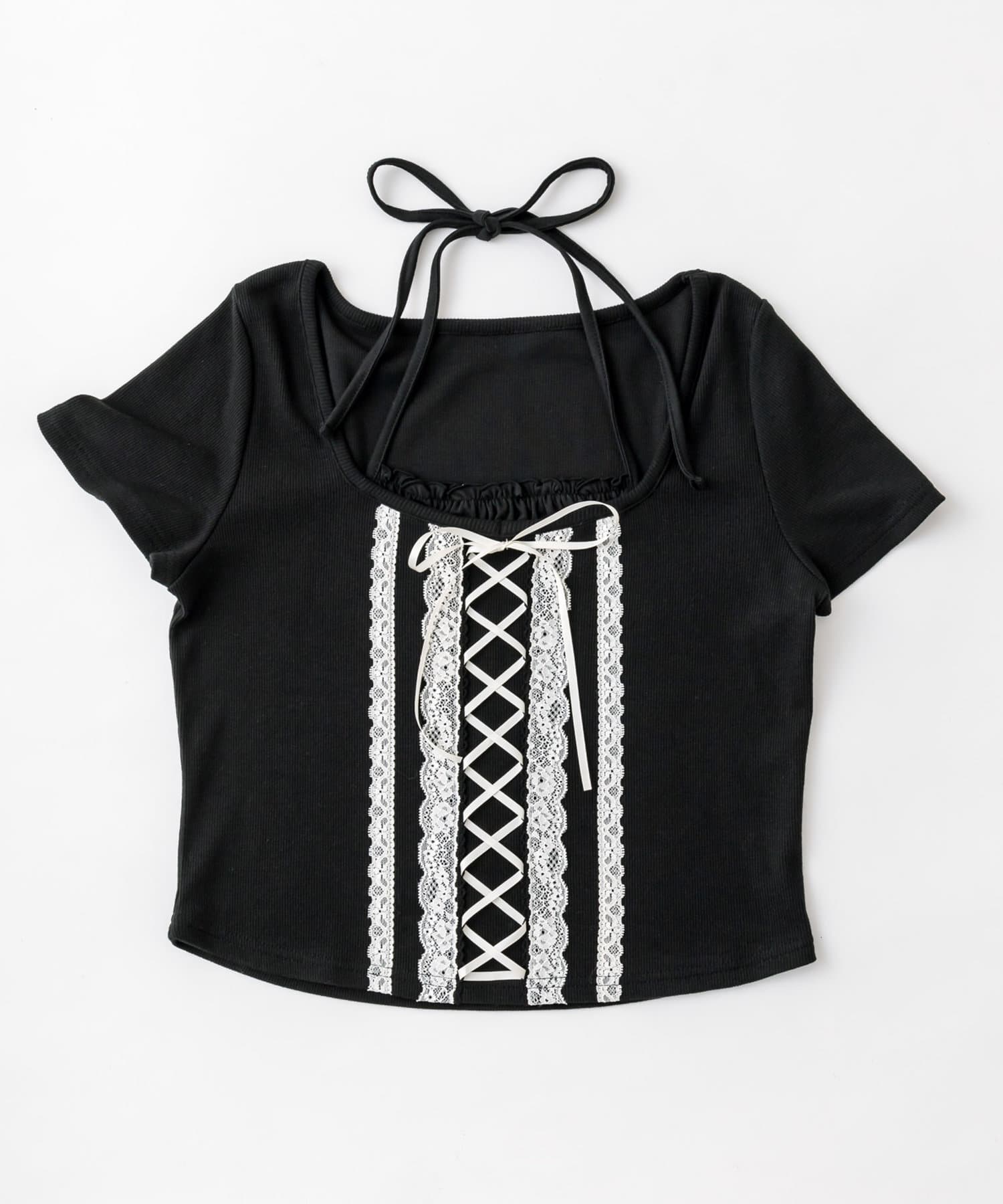 ・フロントの細やかなレースアップデザインがポイントのトップス。