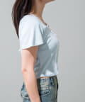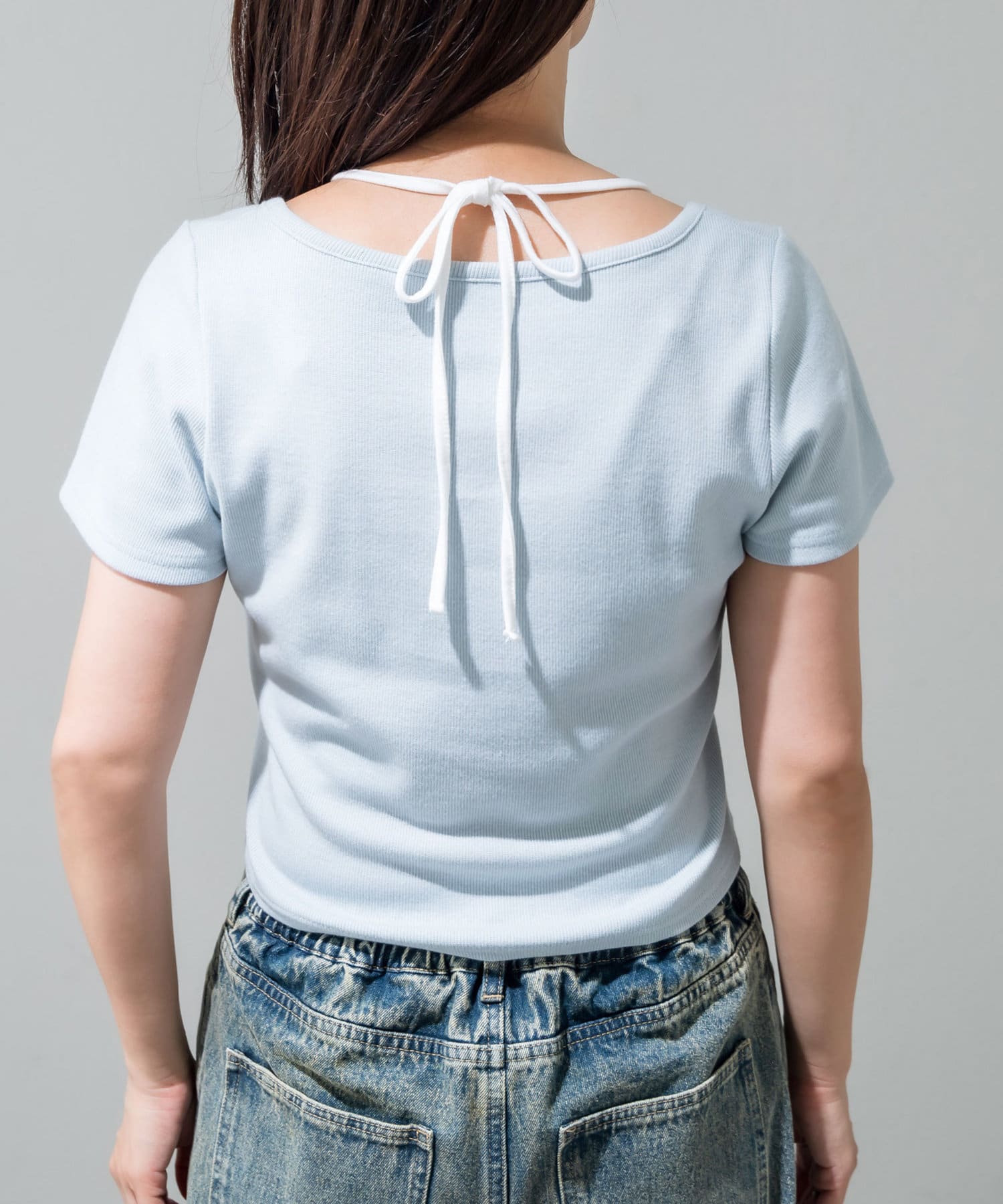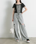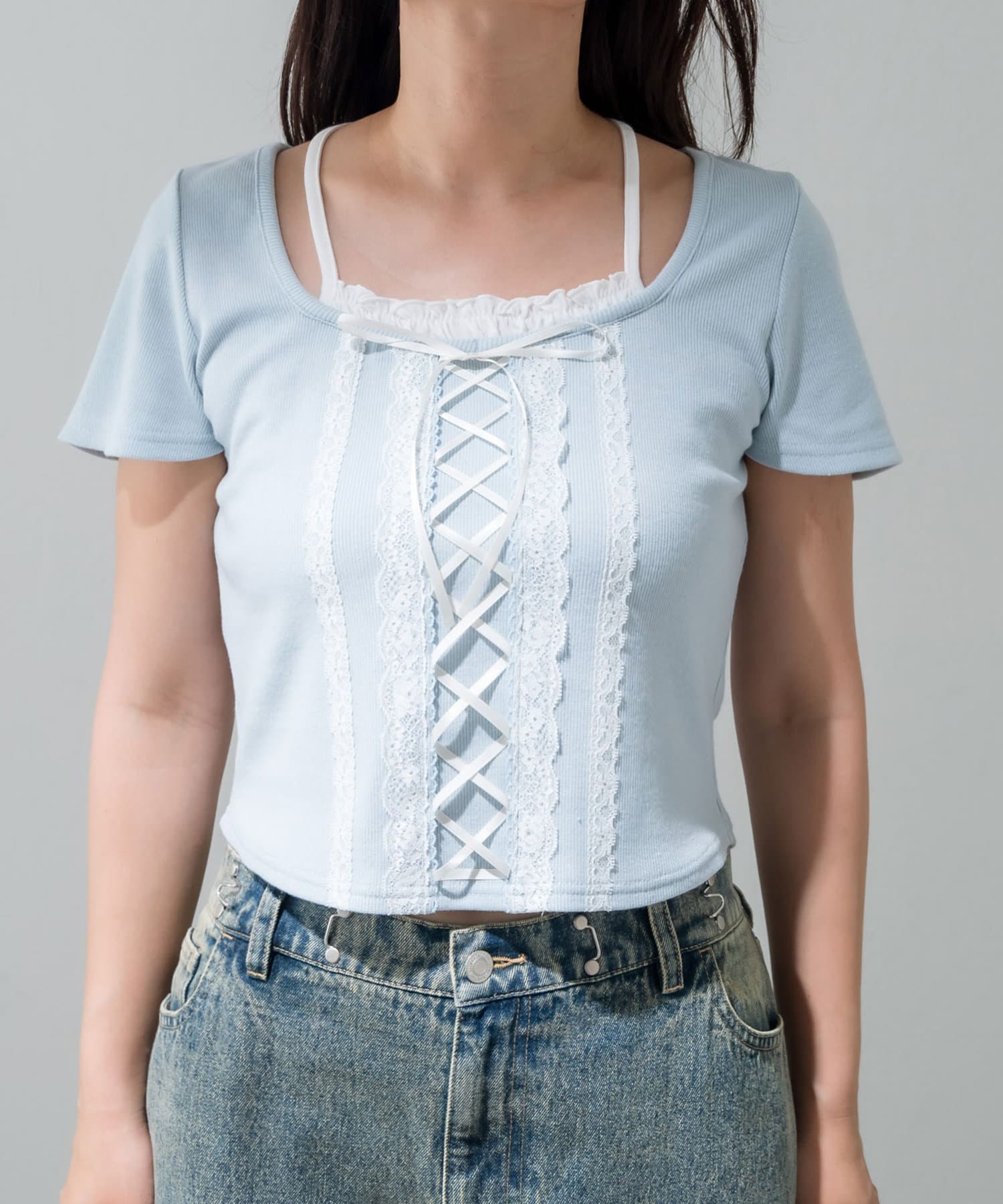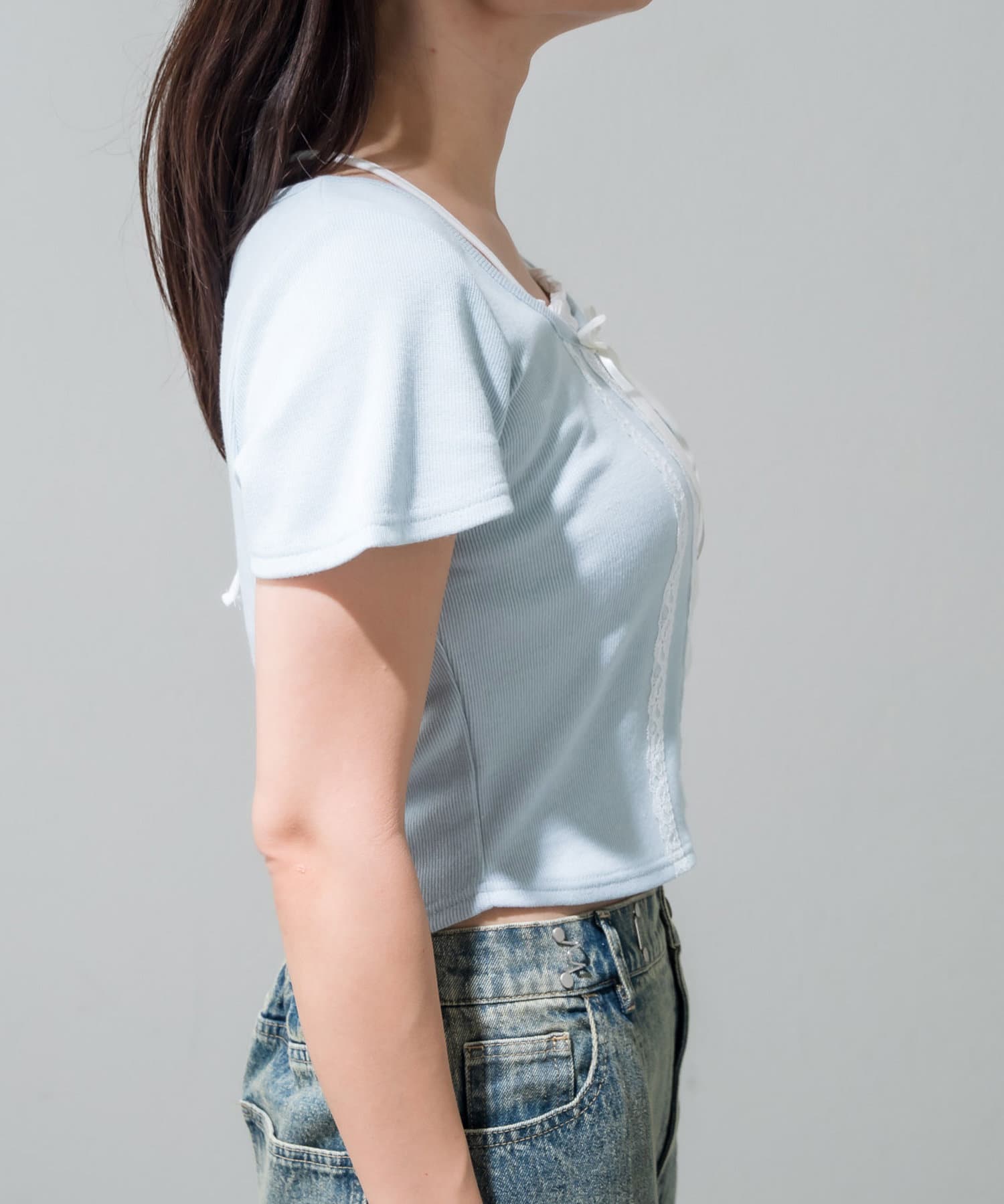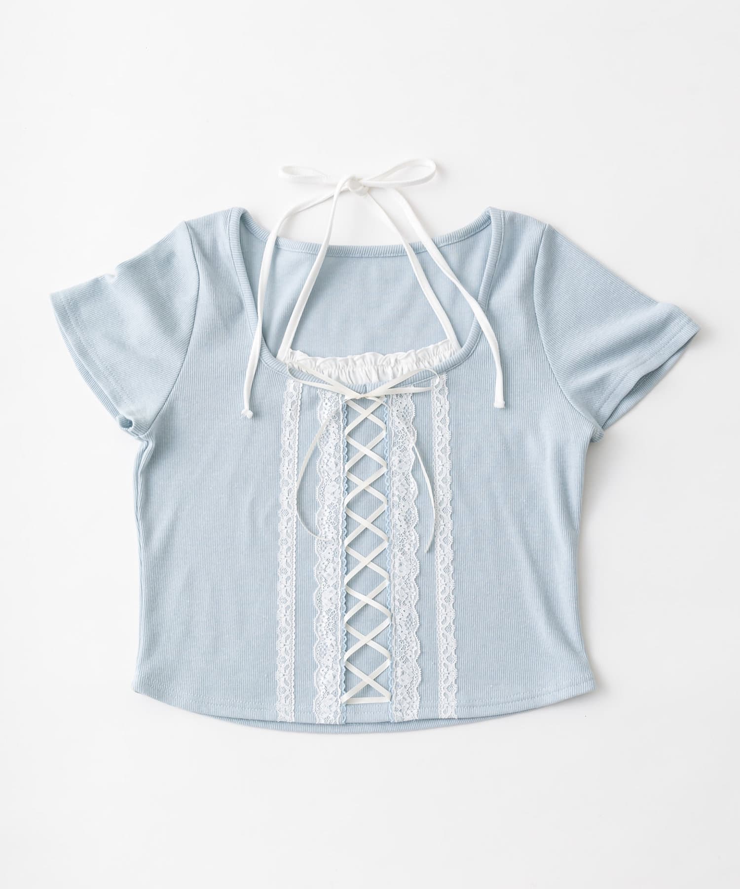 ・フロントの細やかなレースアップデザインがポイントのトップス。