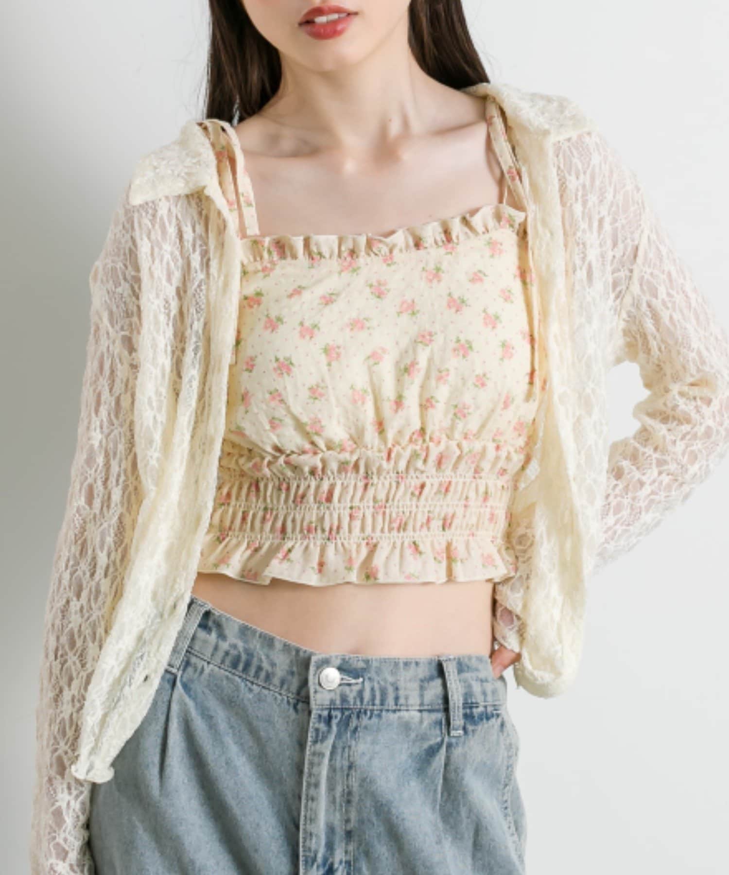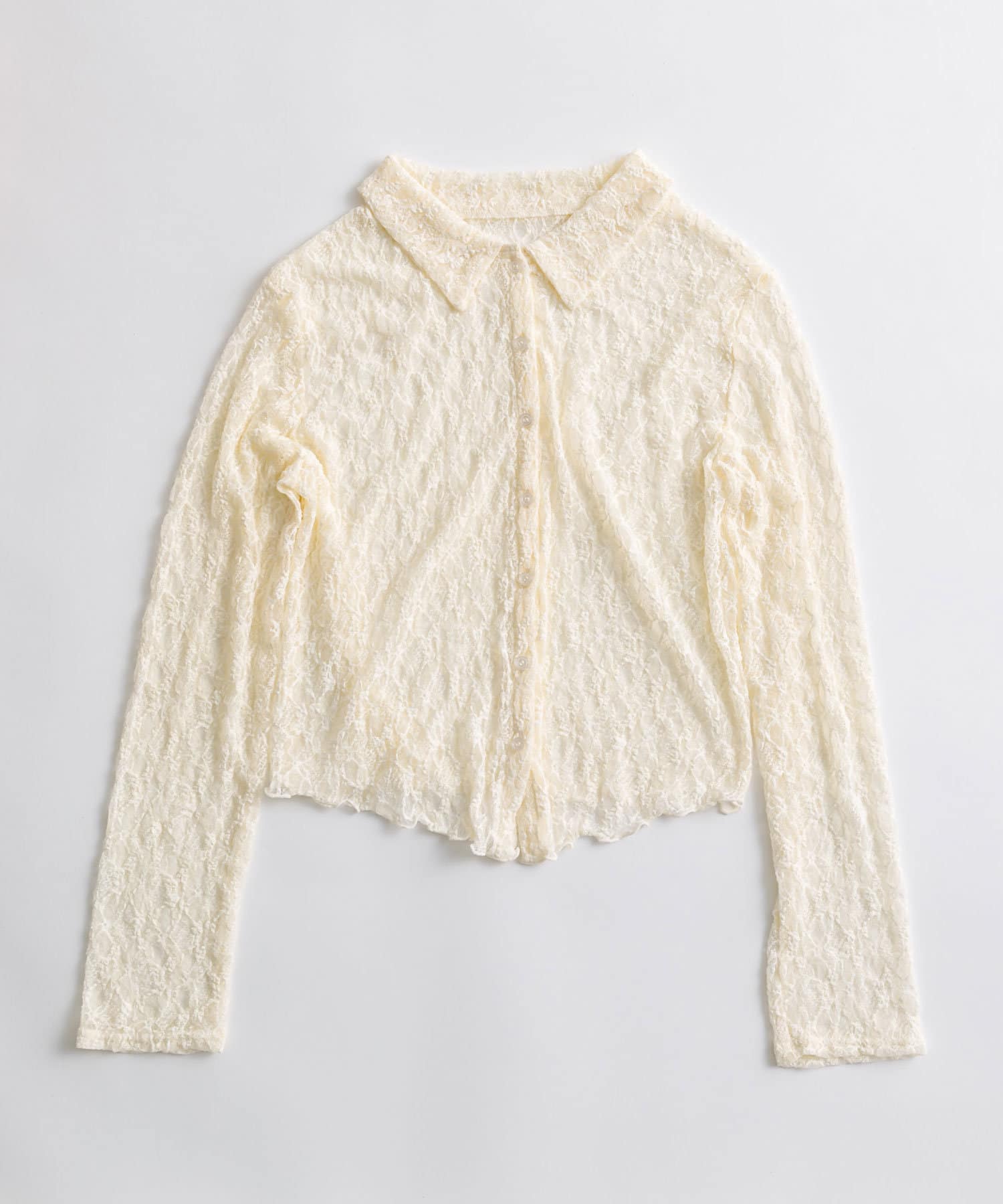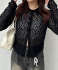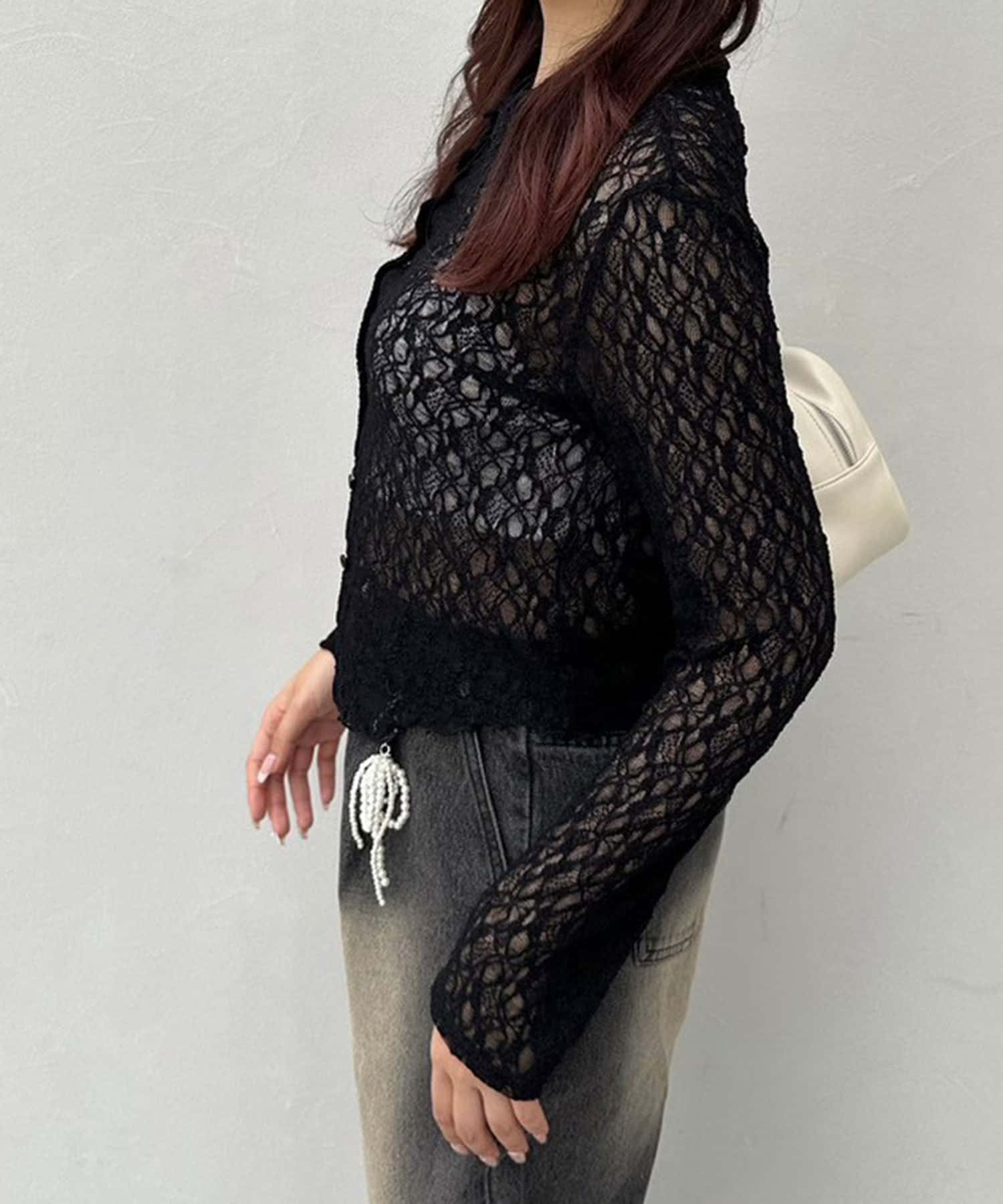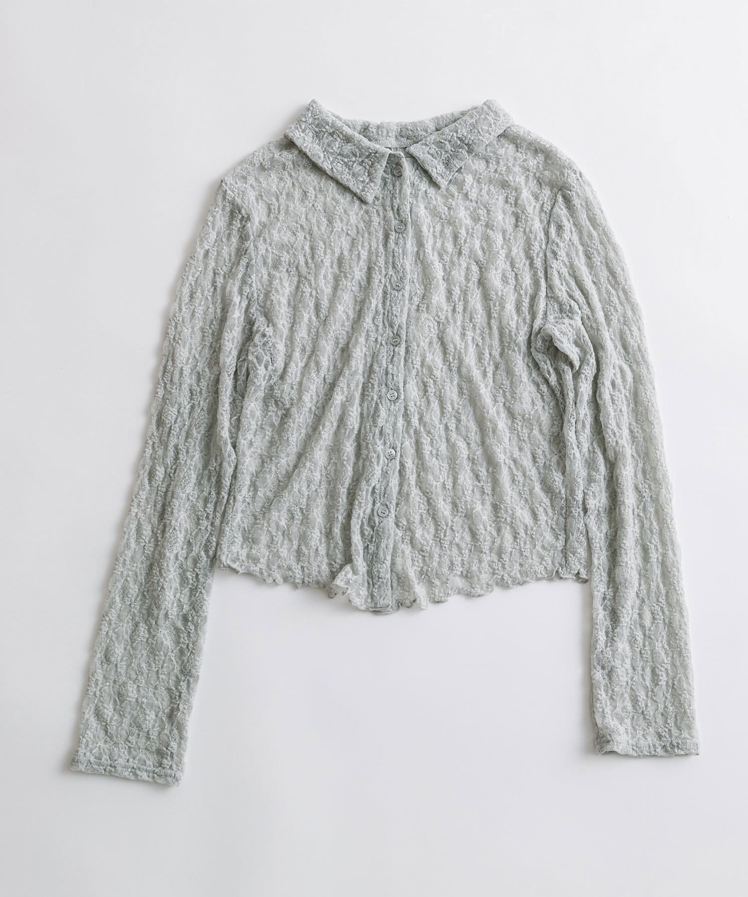 ・透け感のある総レースで程よい肌見せが叶うトップス。