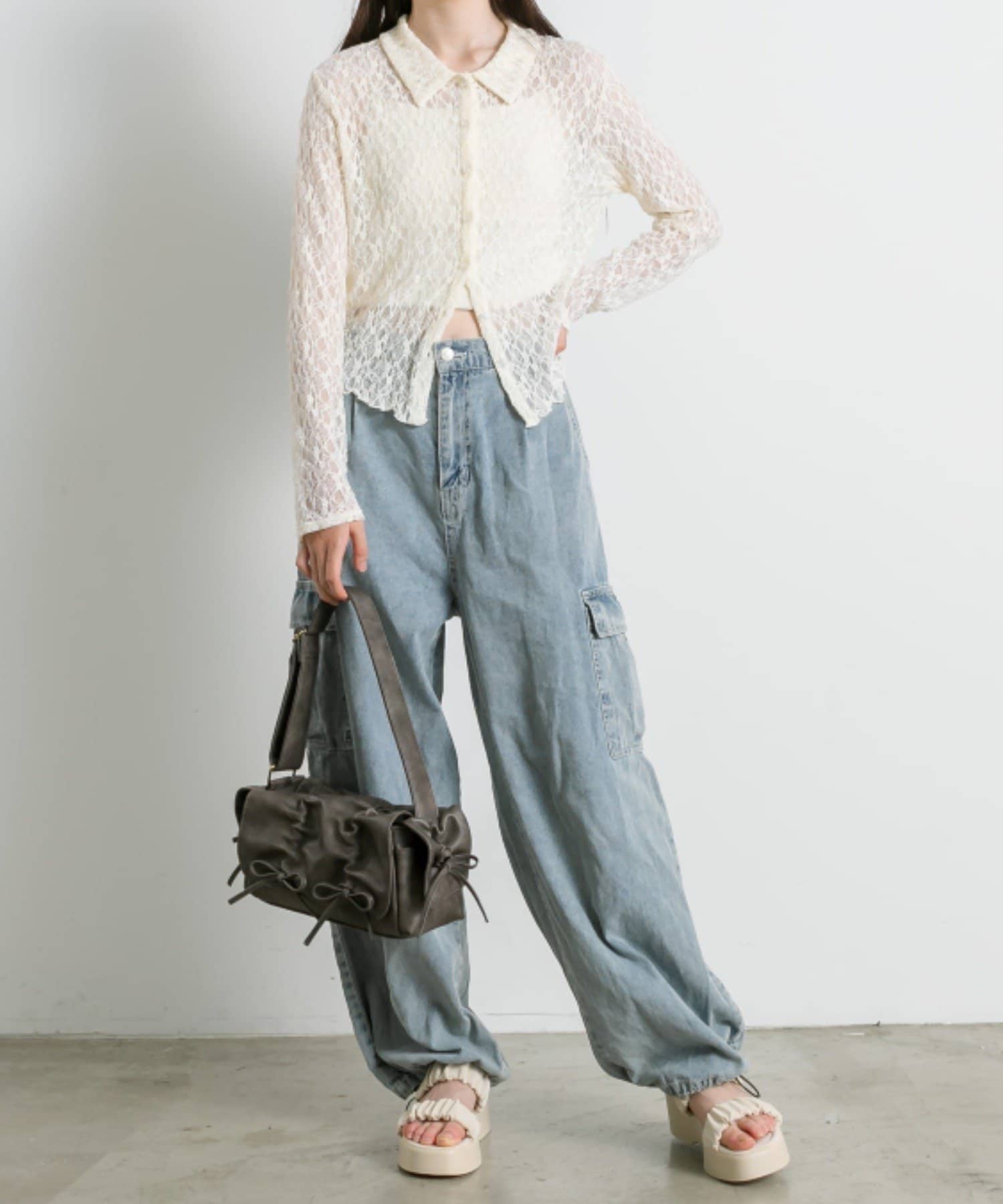 ・カジュアルなデニムからガーリーなスカートまで幅広く合わせやすいデザインです。