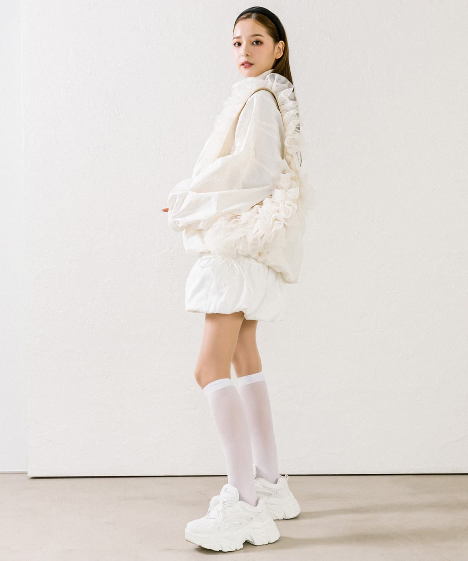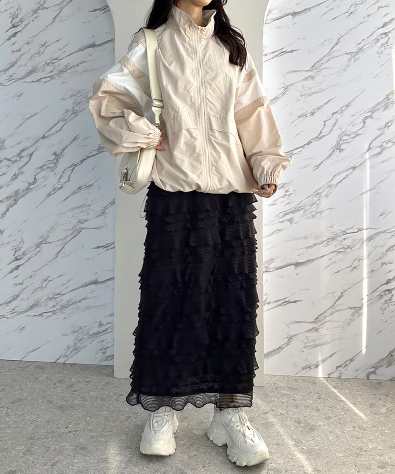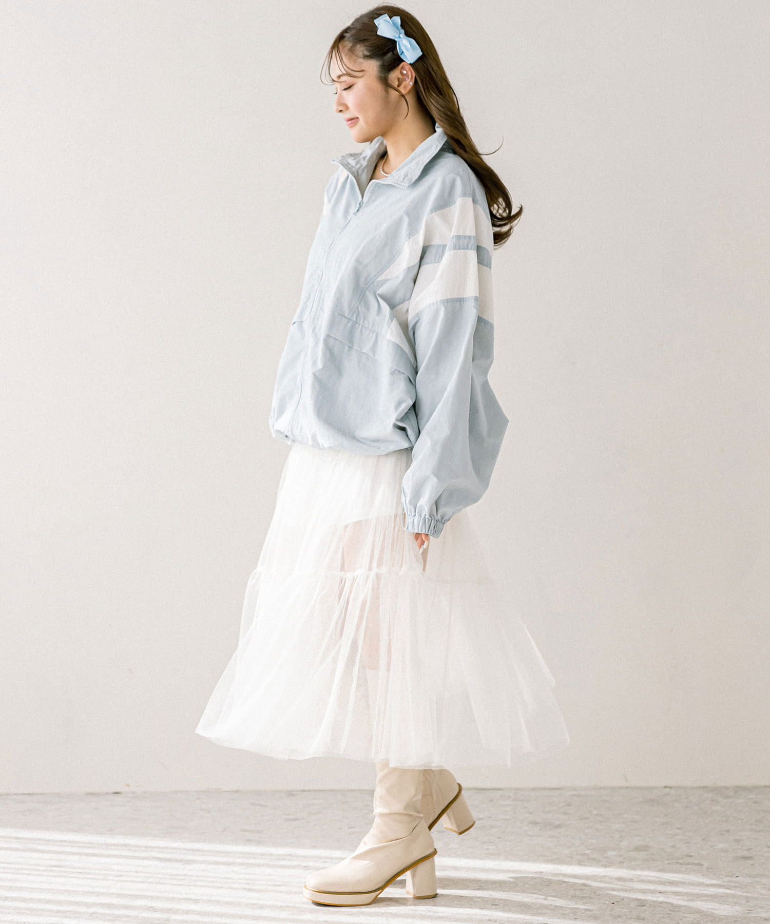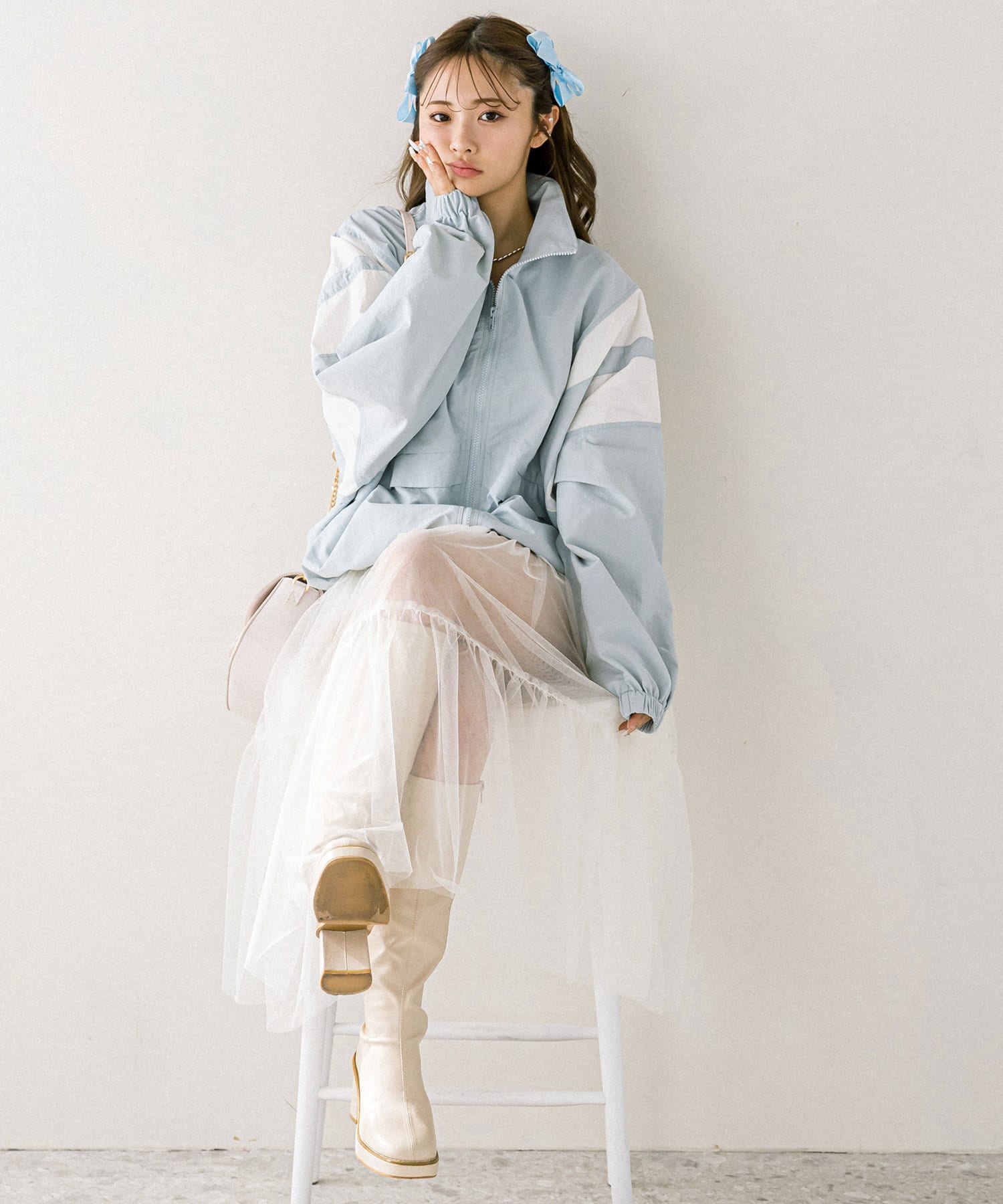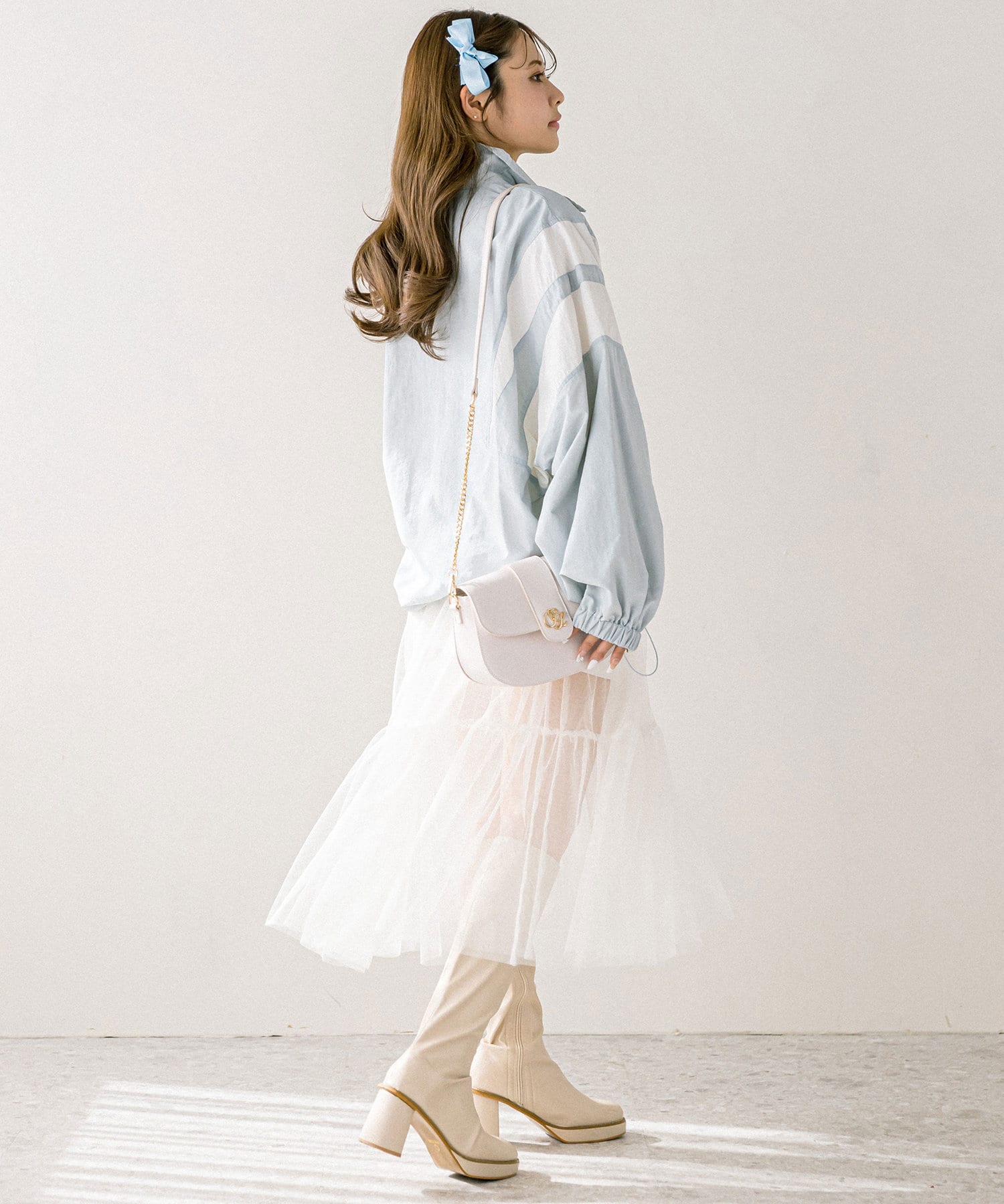 ・ボトムスは透け感のあるチュールスカートで合わせるのが
