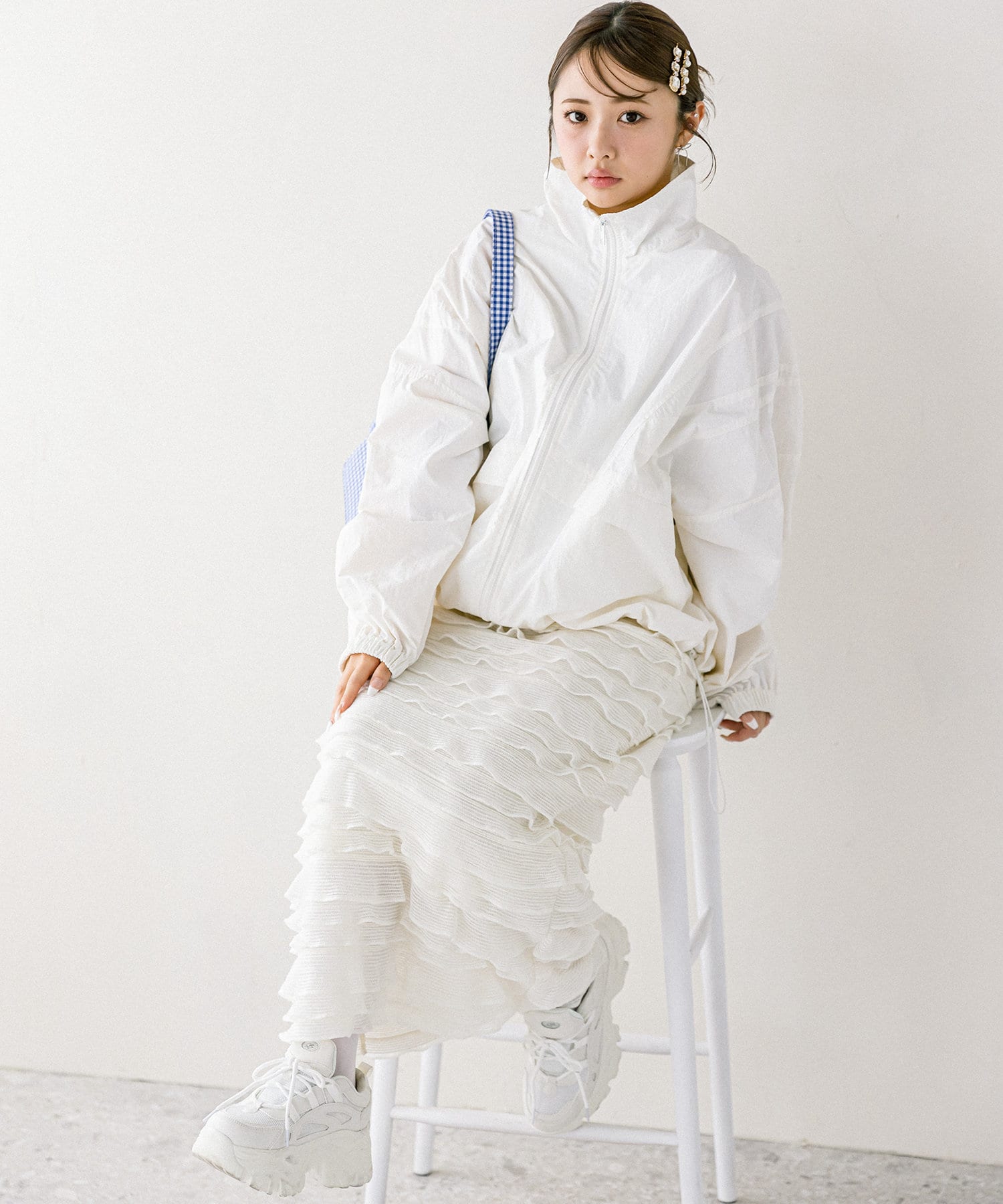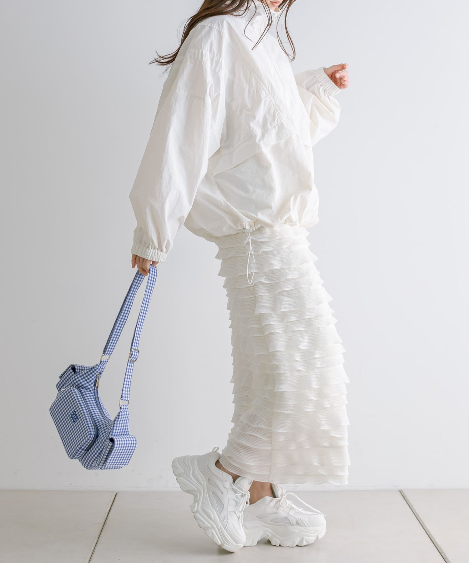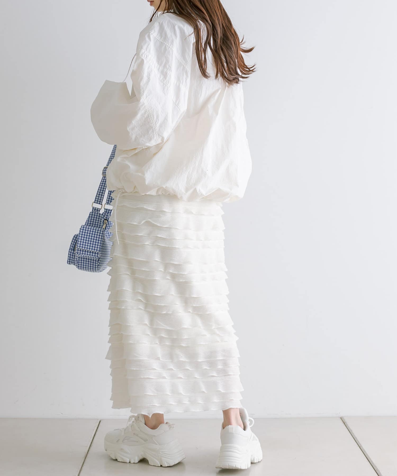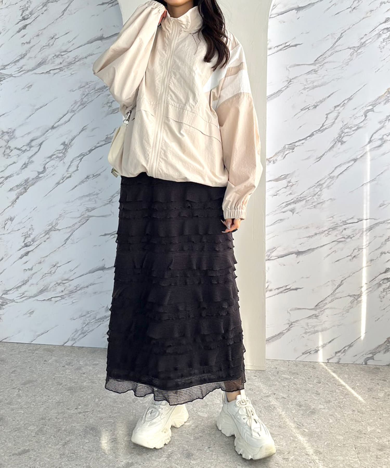 ・ボトムスは透け感のあるチュールスカートで合わせるのが