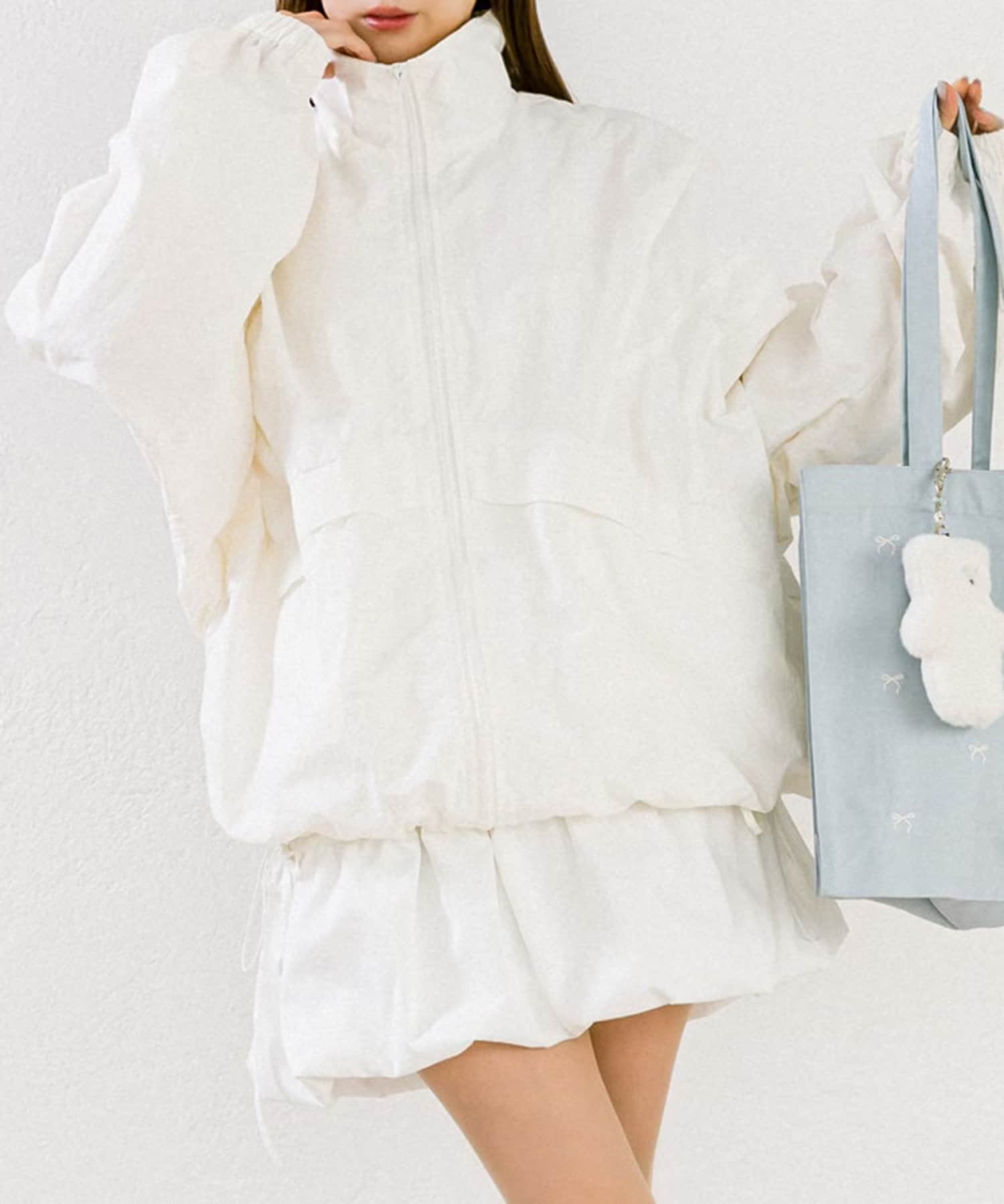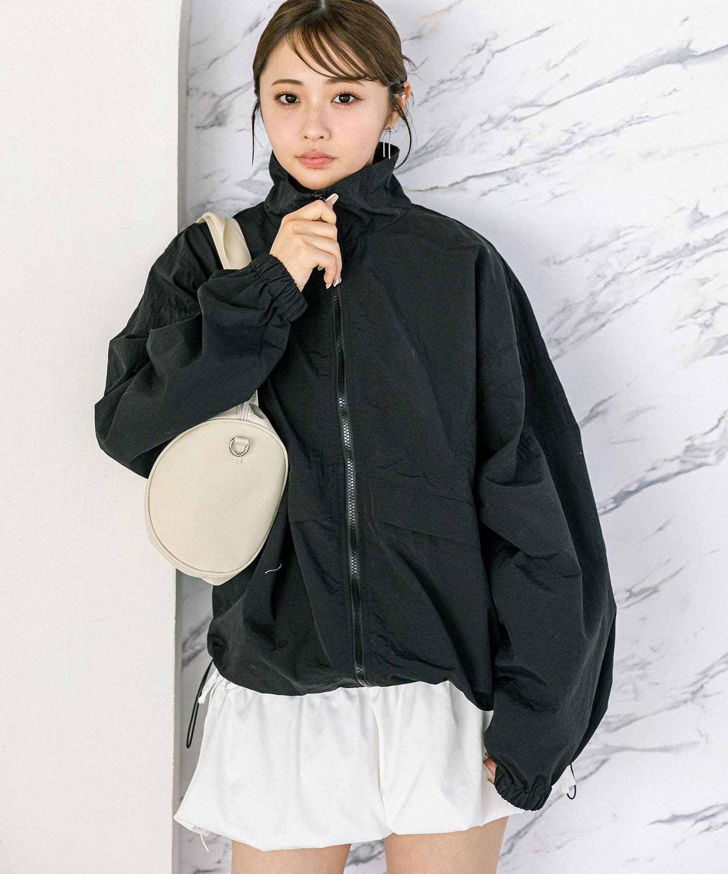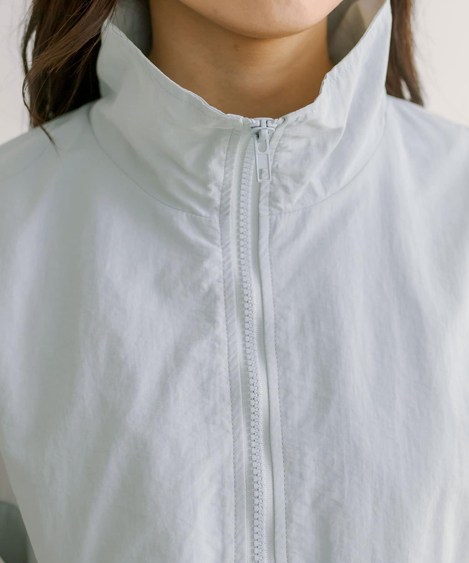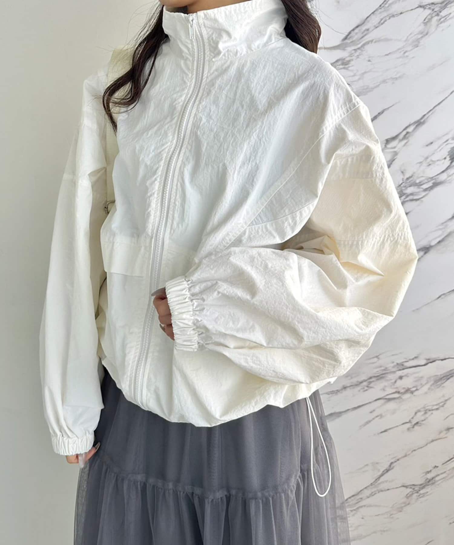 ・ファスナーを全て閉めればトレンドのスタンドネックに。