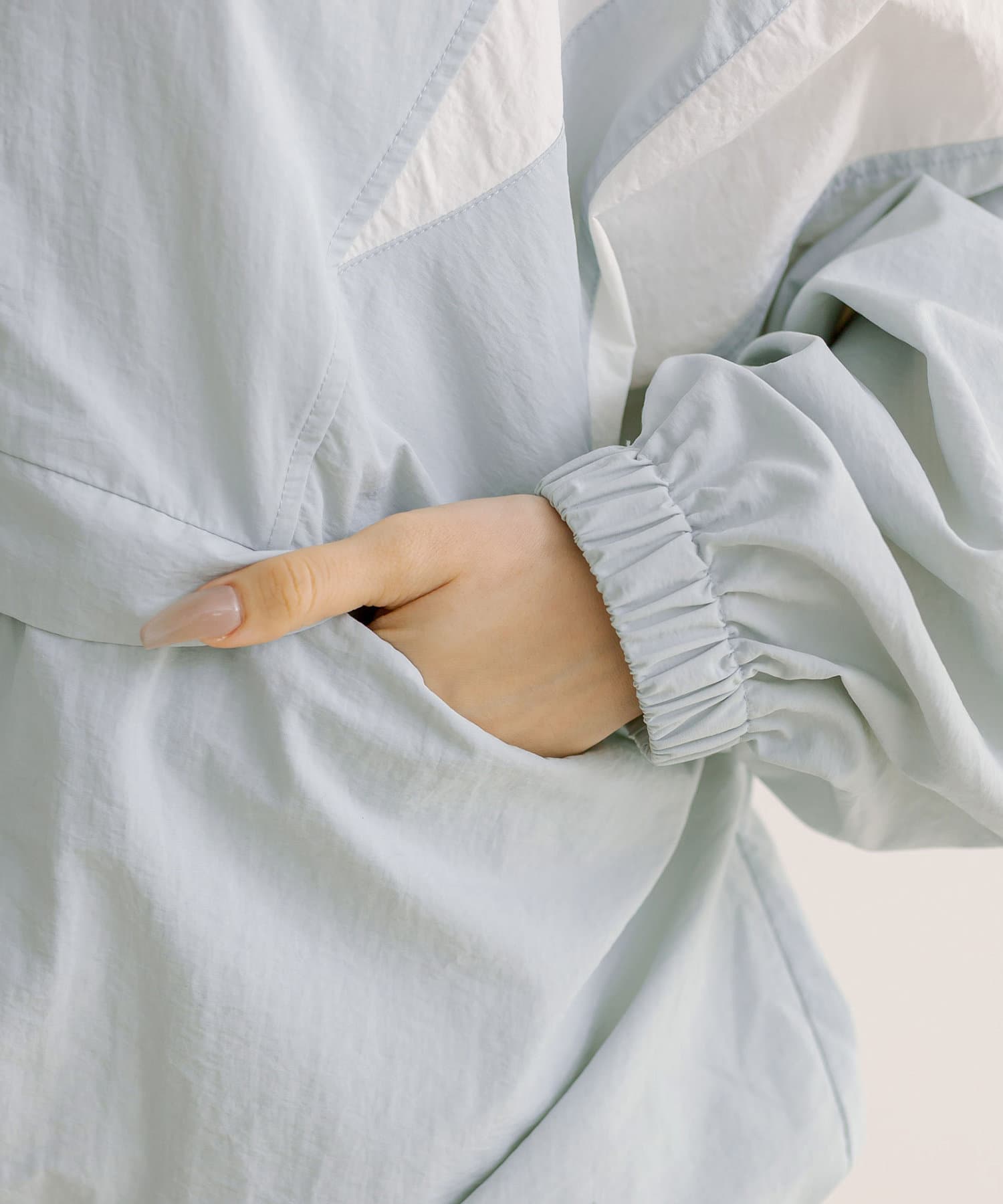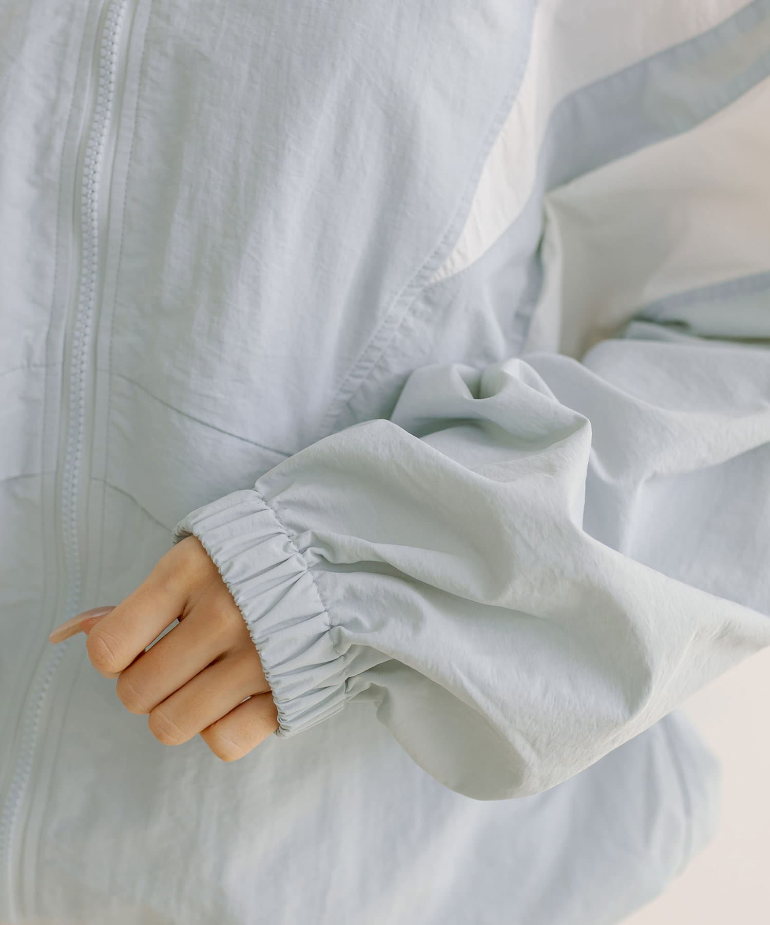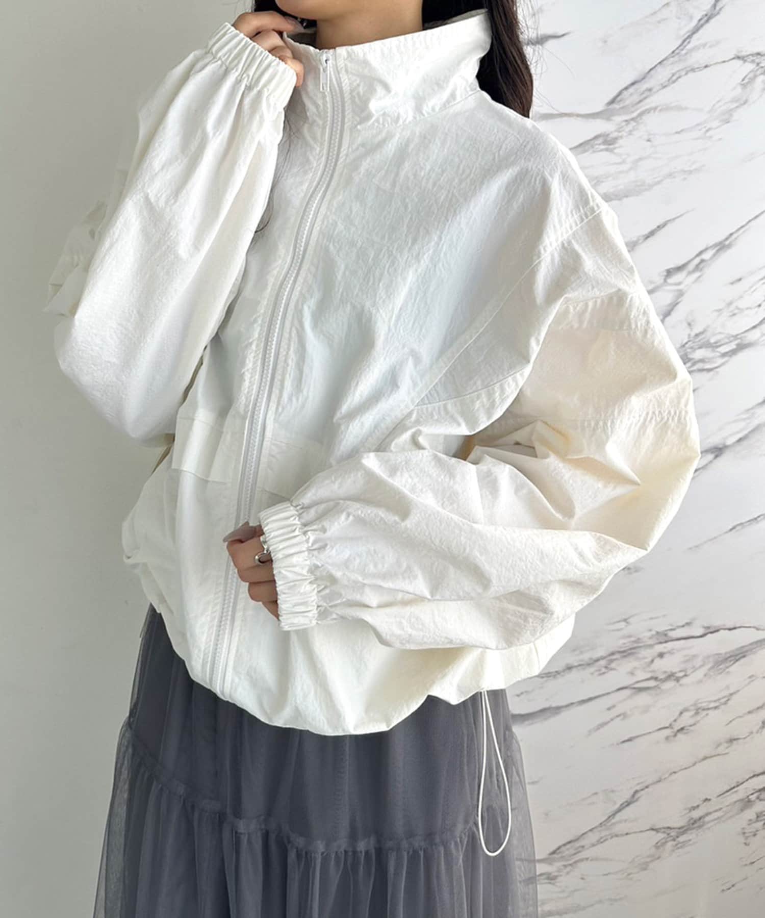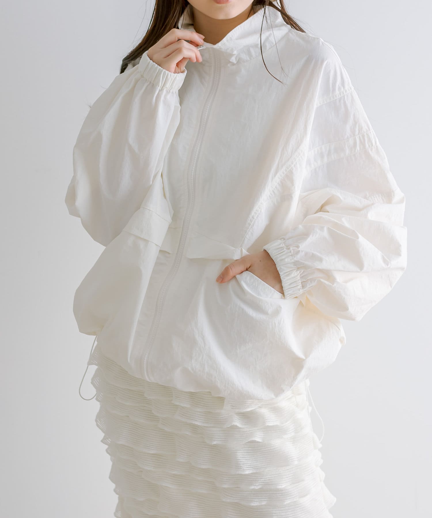 ・ファスナーを全て閉めればトレンドのスタンドネックに。