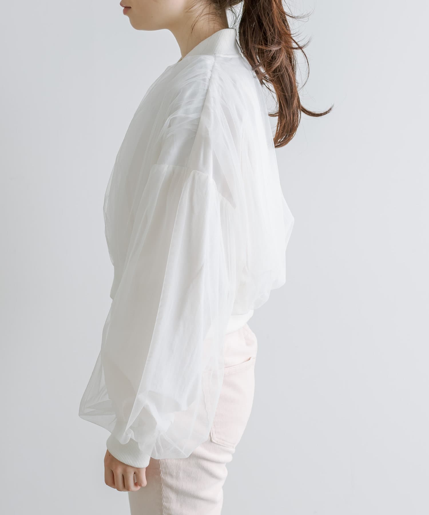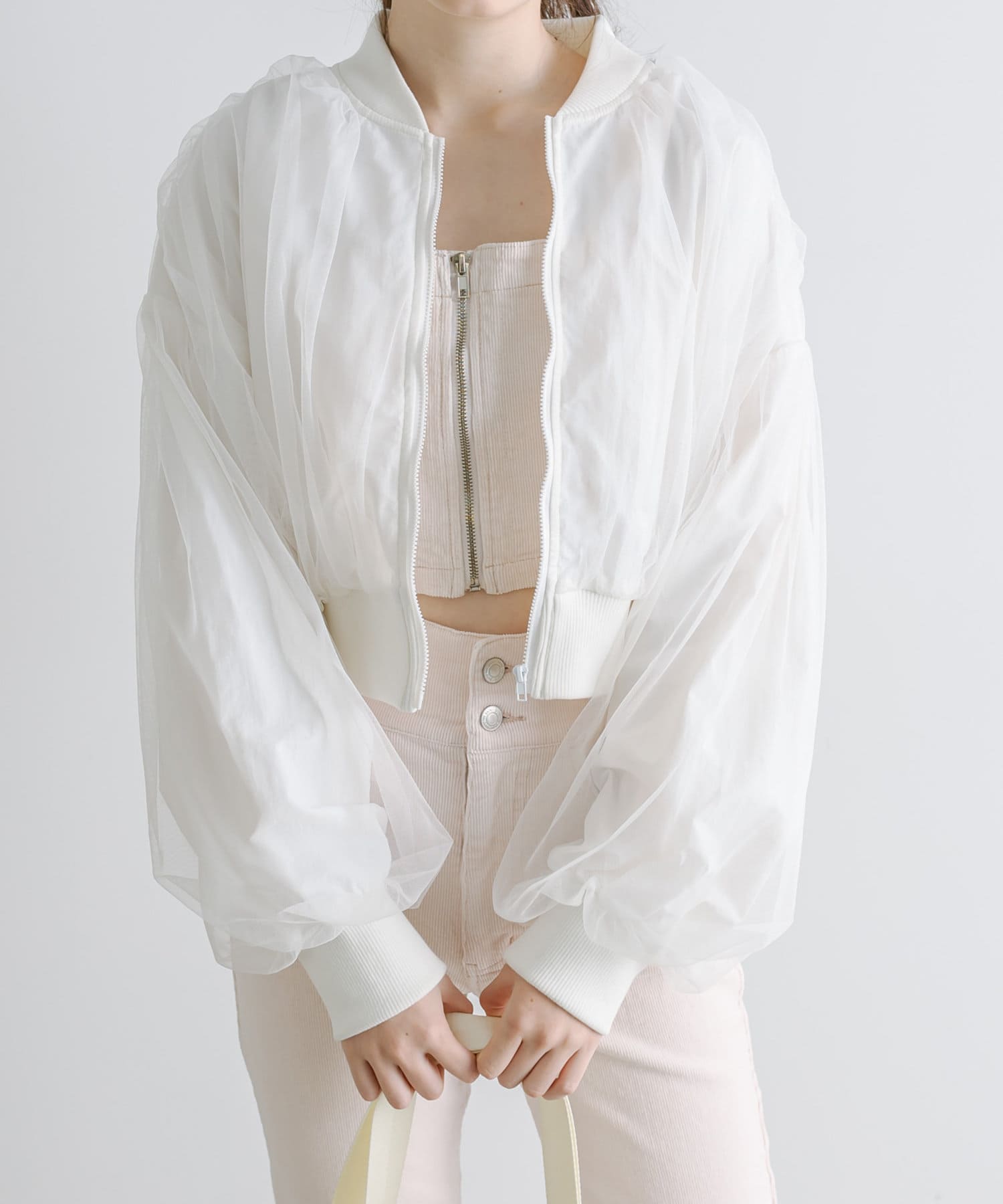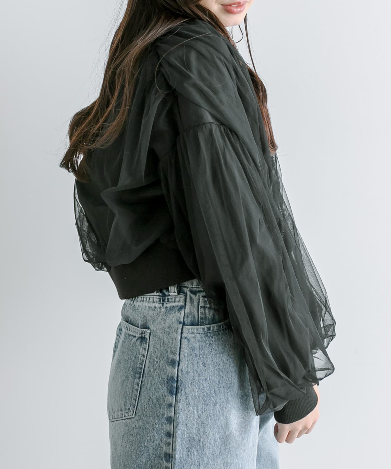 ・全体にチュールを重ねた立体感のあるブルゾン。