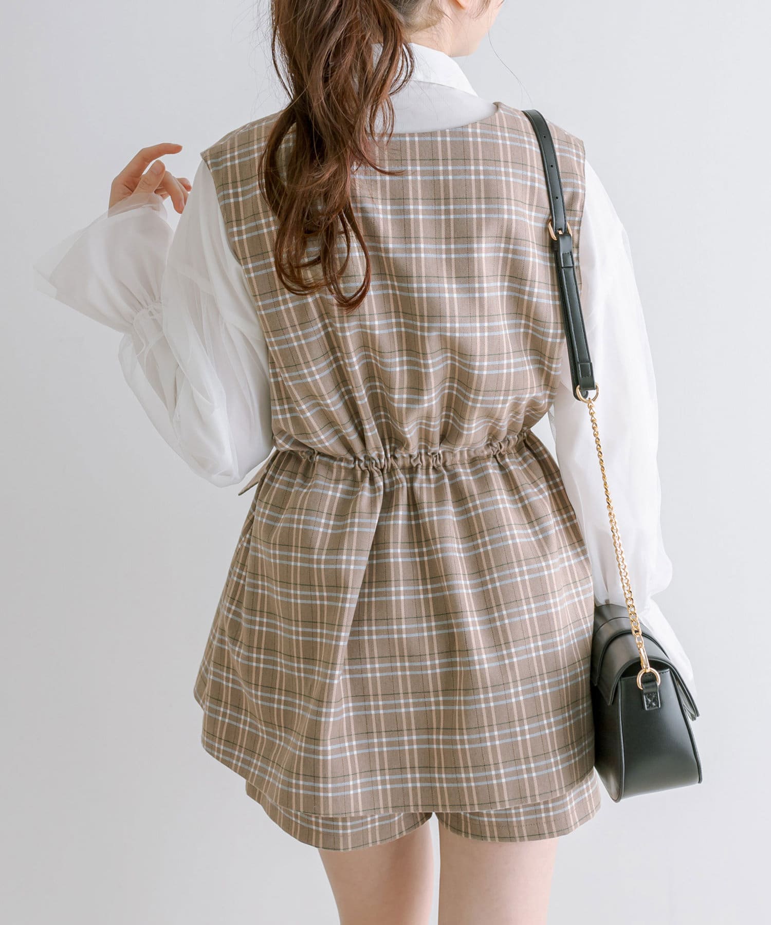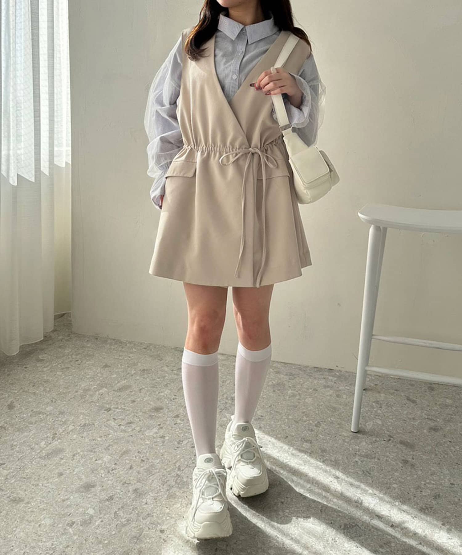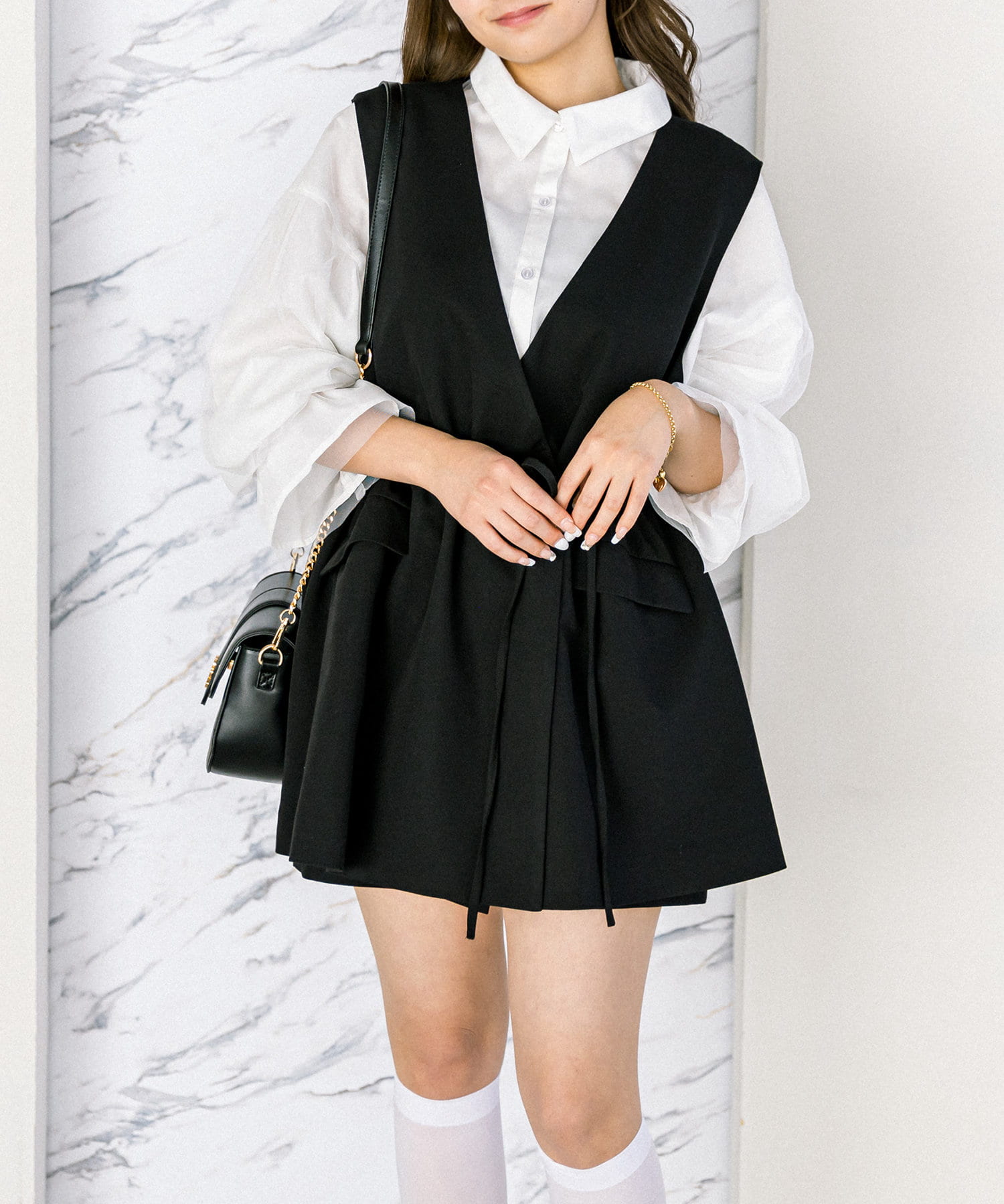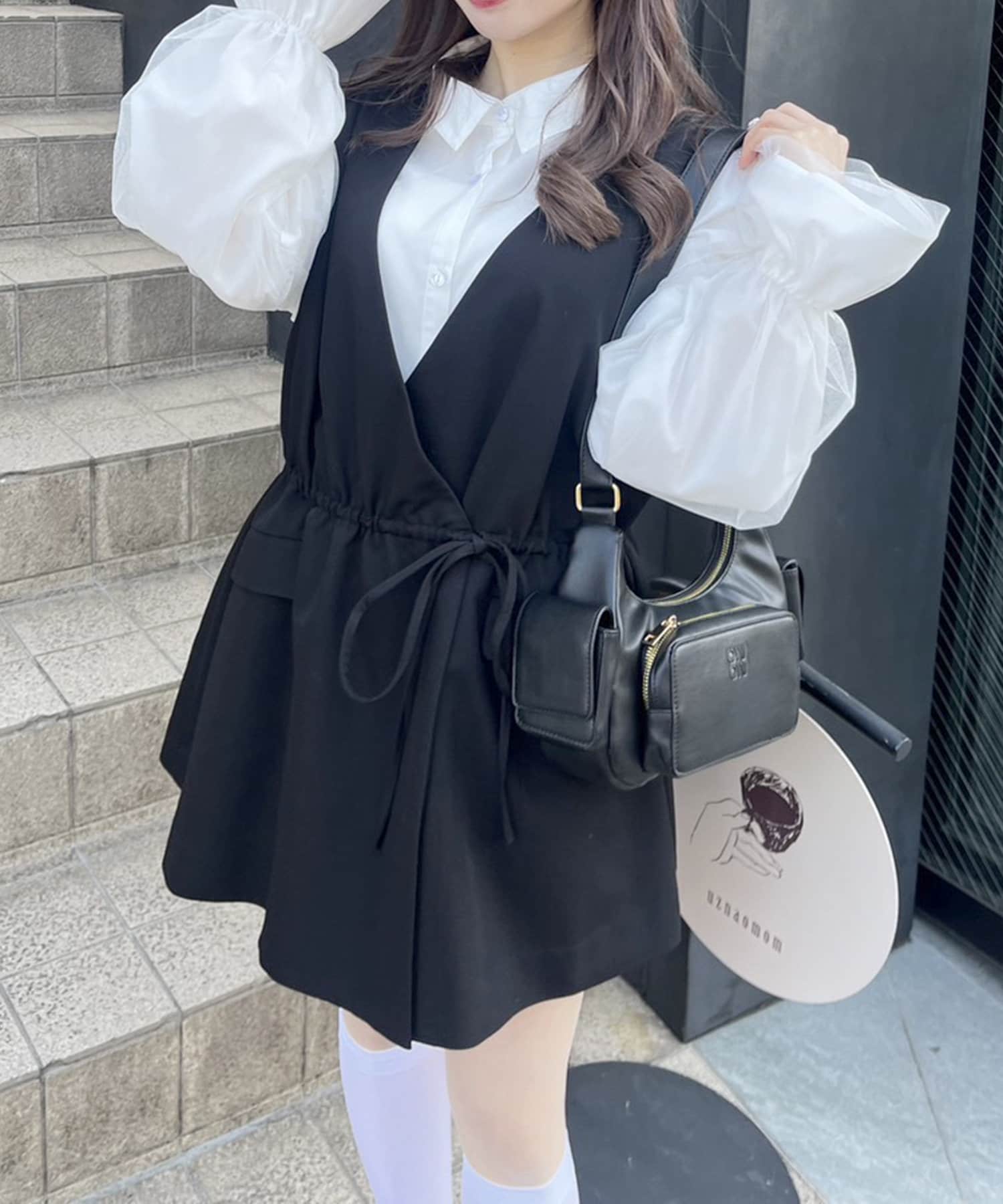 ・ジレの中はテレコのインナーやチュール重ねシャツと合わせても可愛いです。