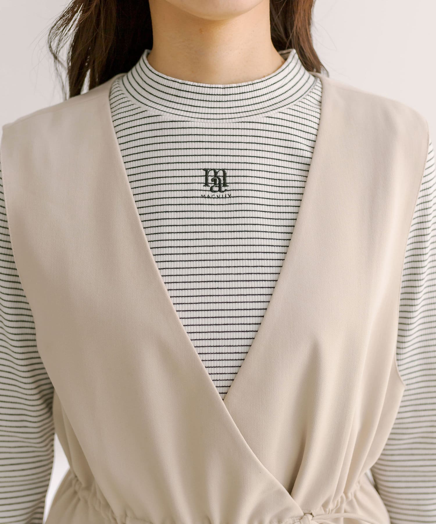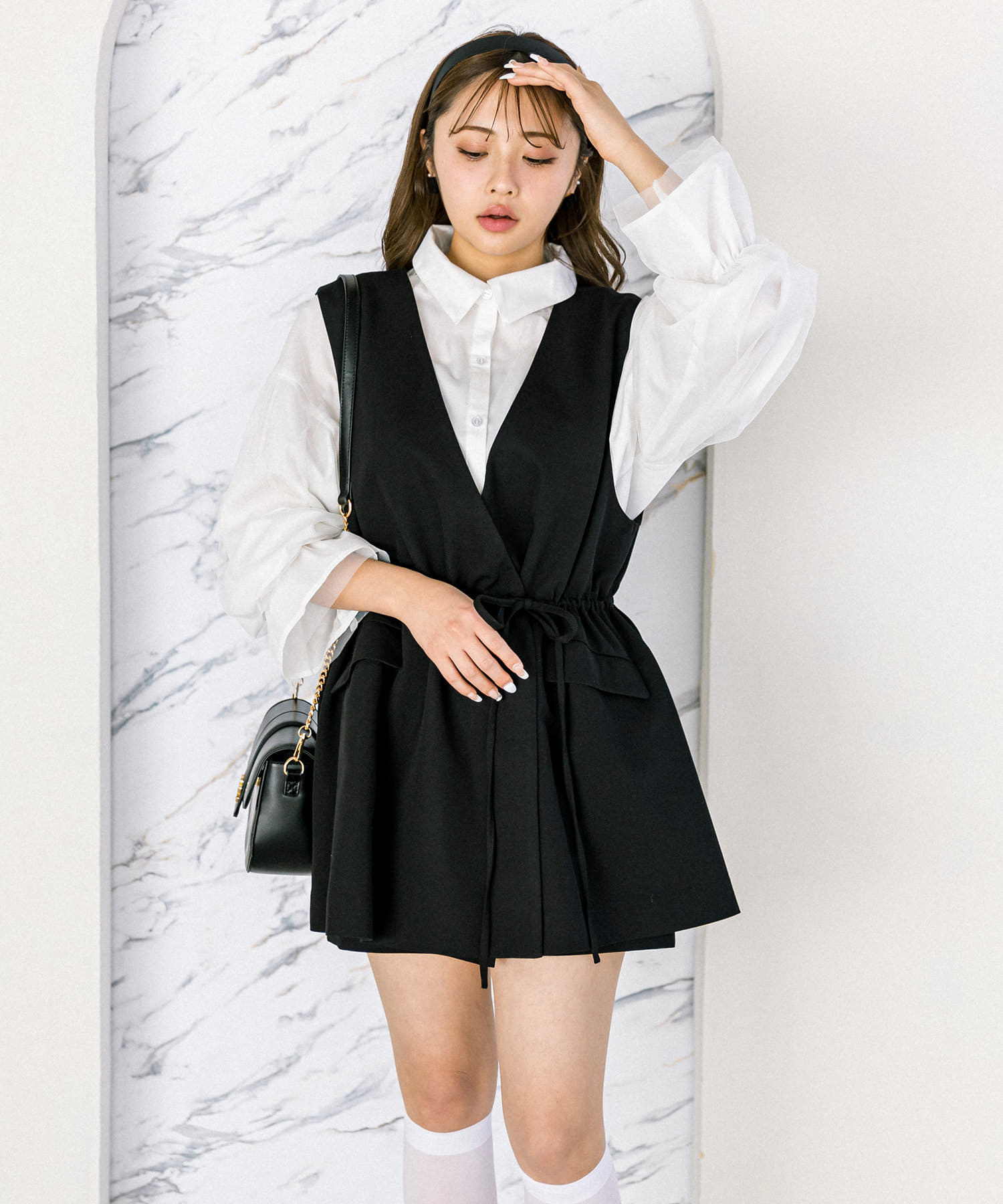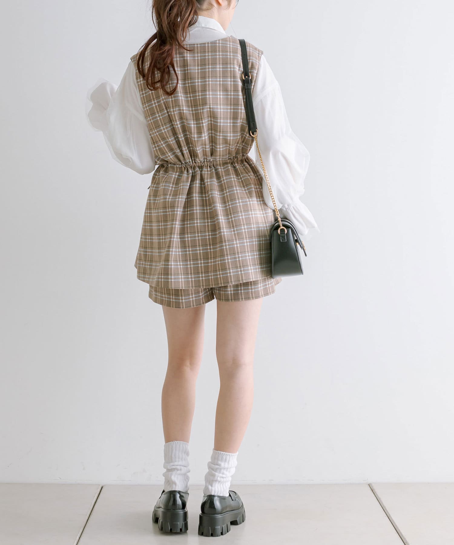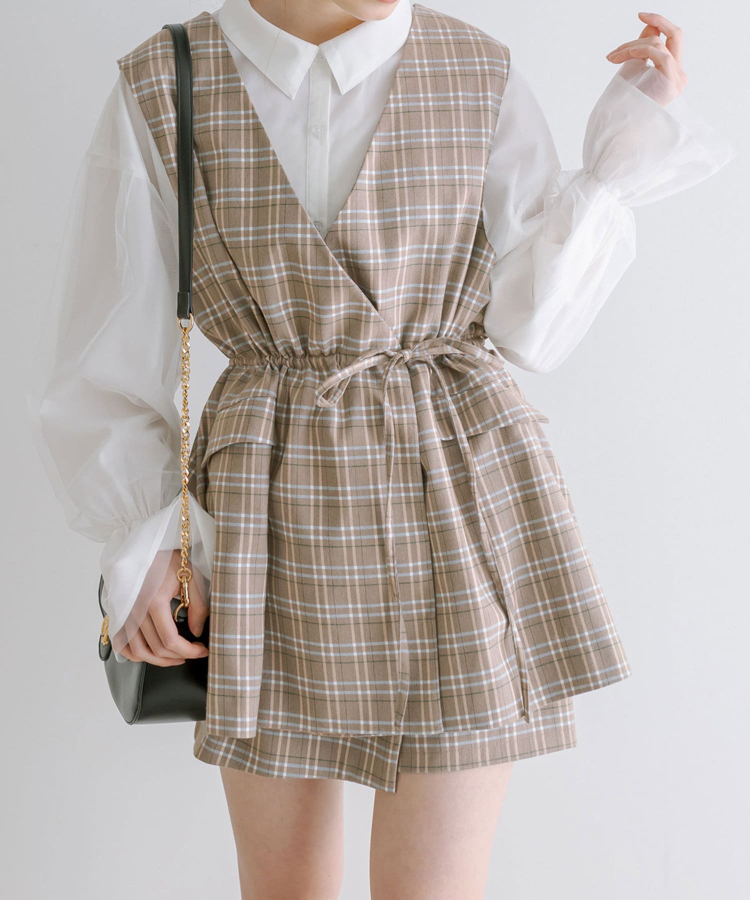 ・ジレの中はテレコのインナーやチュール重ねシャツと合わせても可愛いです。
