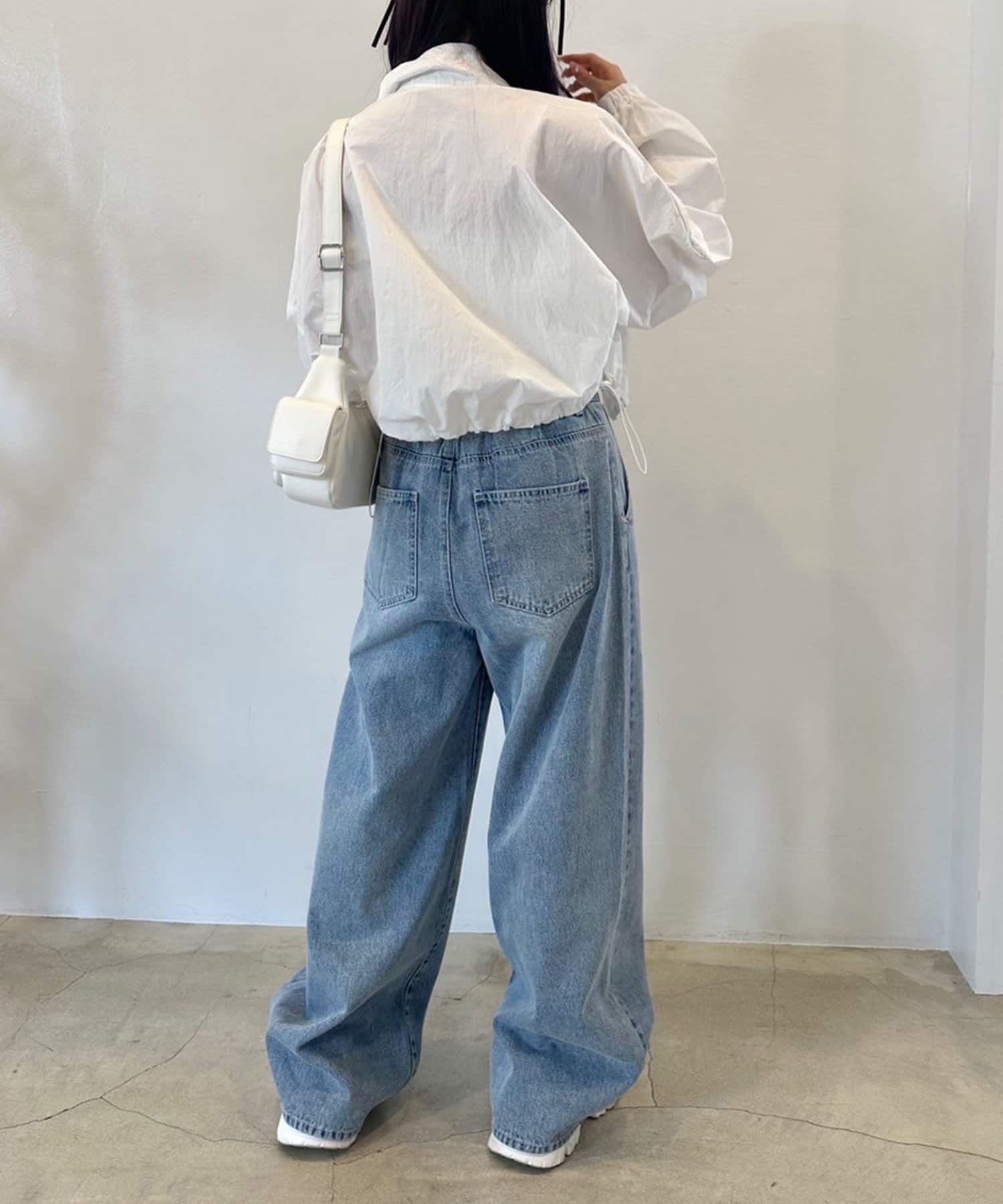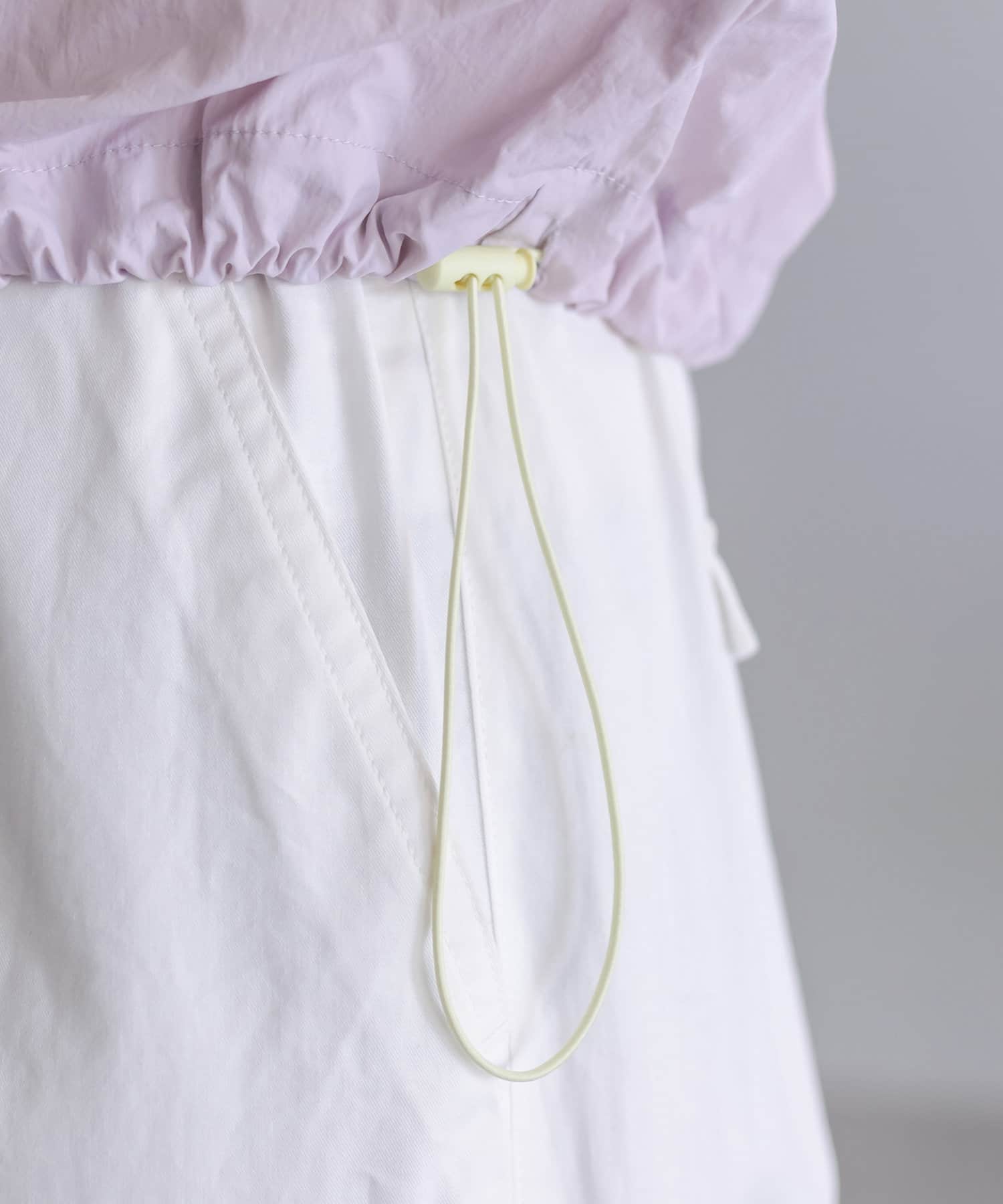 ・裾のドロストを絞ればすっきりとしたシルエットになります。