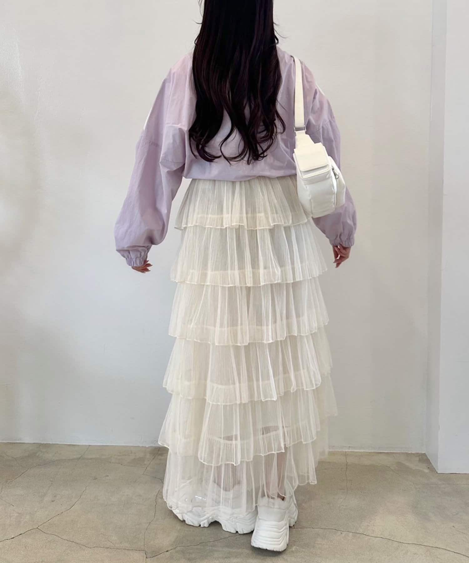 ・ガーリー好きな方はミニボトムやチュールスカートとの組み合わせがおすすめ。