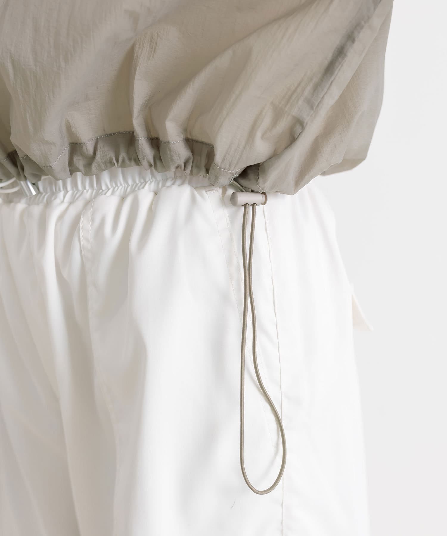 ・裾はドローコードで絞り具合を調節できて、コーデによってシルエットを変えて着用していただけます。