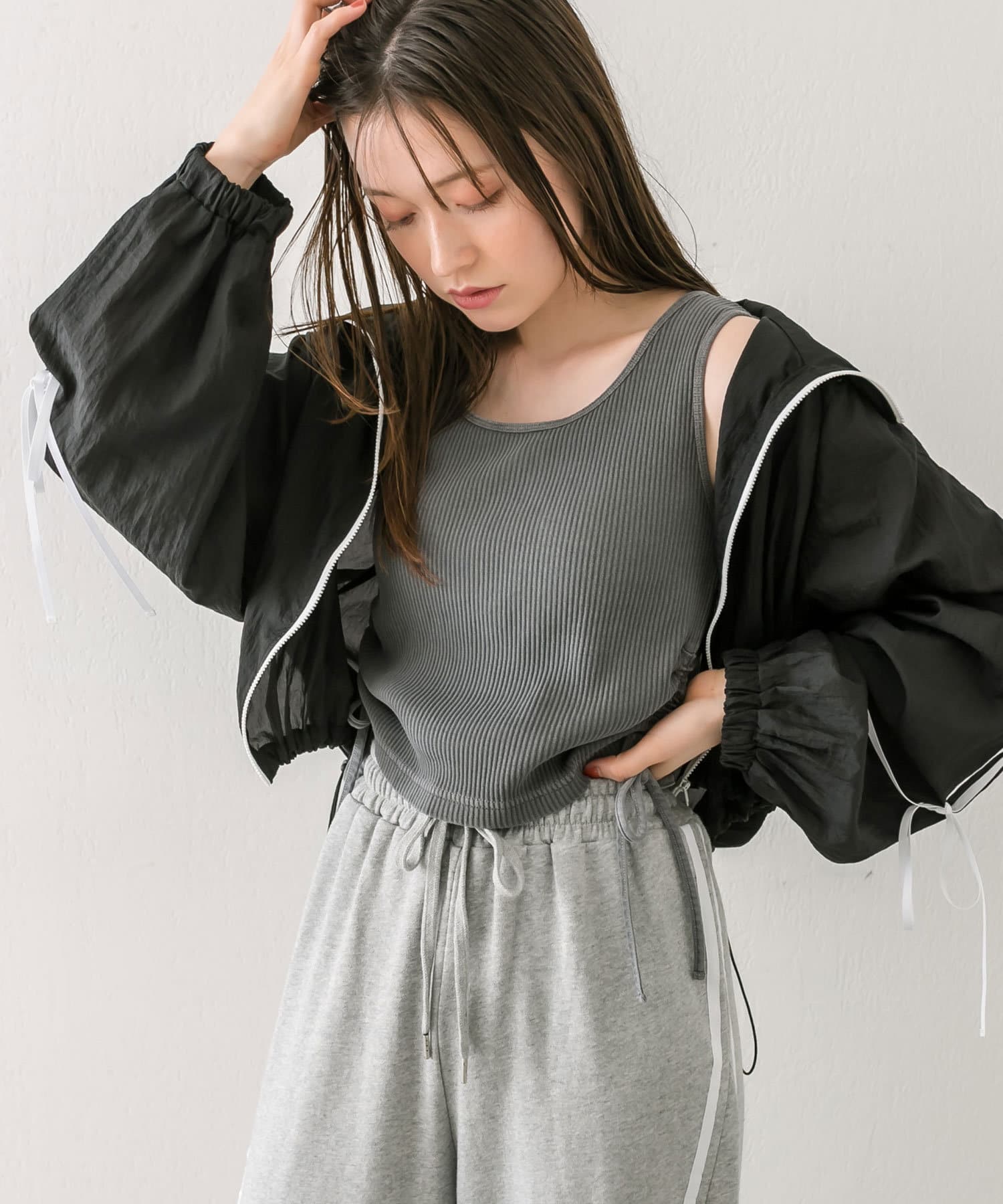 ・キャミワンピースやビスチェなどに合わせた程よい肌見せの韓国っぽコーデも可愛いです。