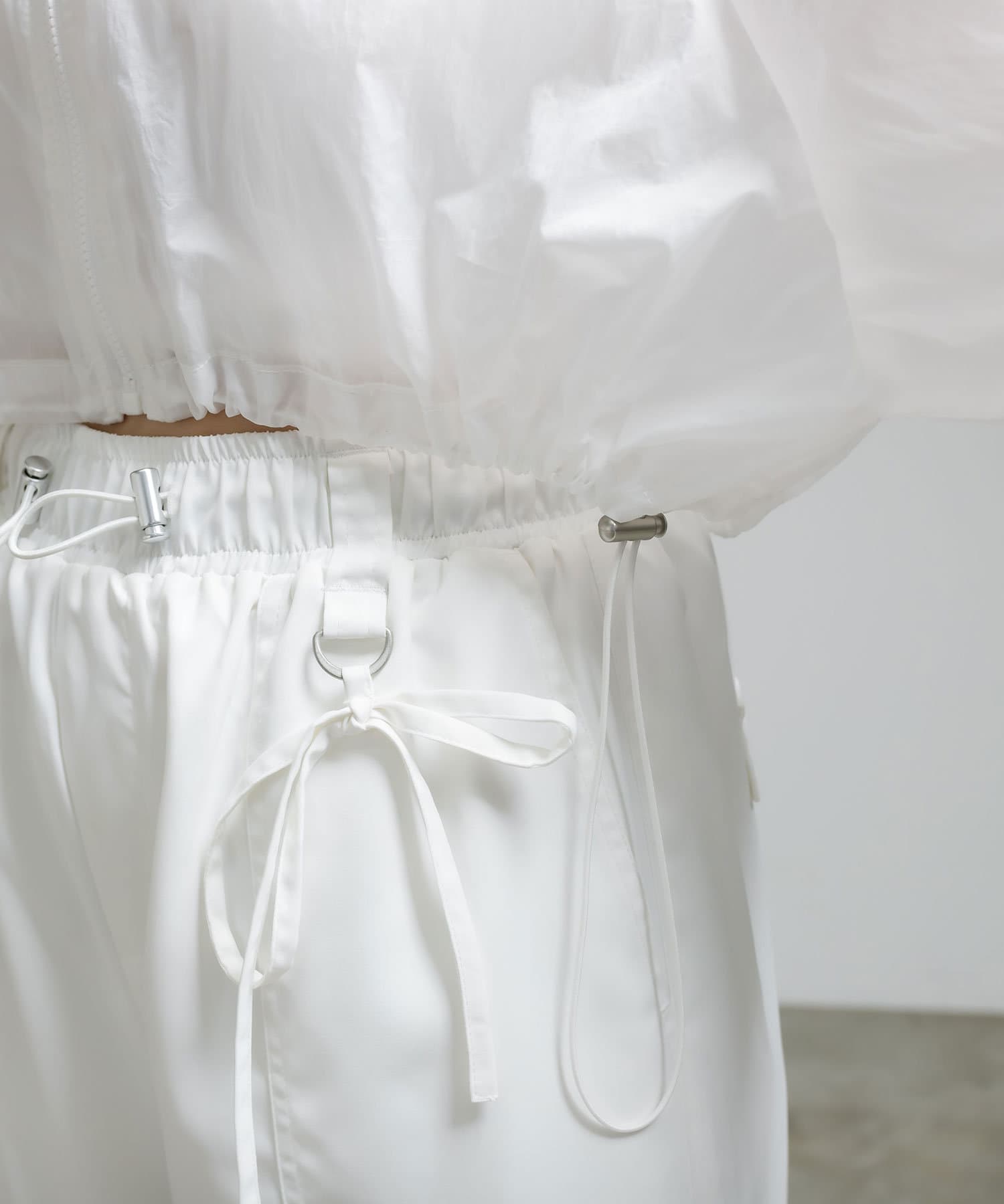 ・裾はドローコードで絞り具合を調節できて、コーデによってシルエットを変えて着用していただけます。