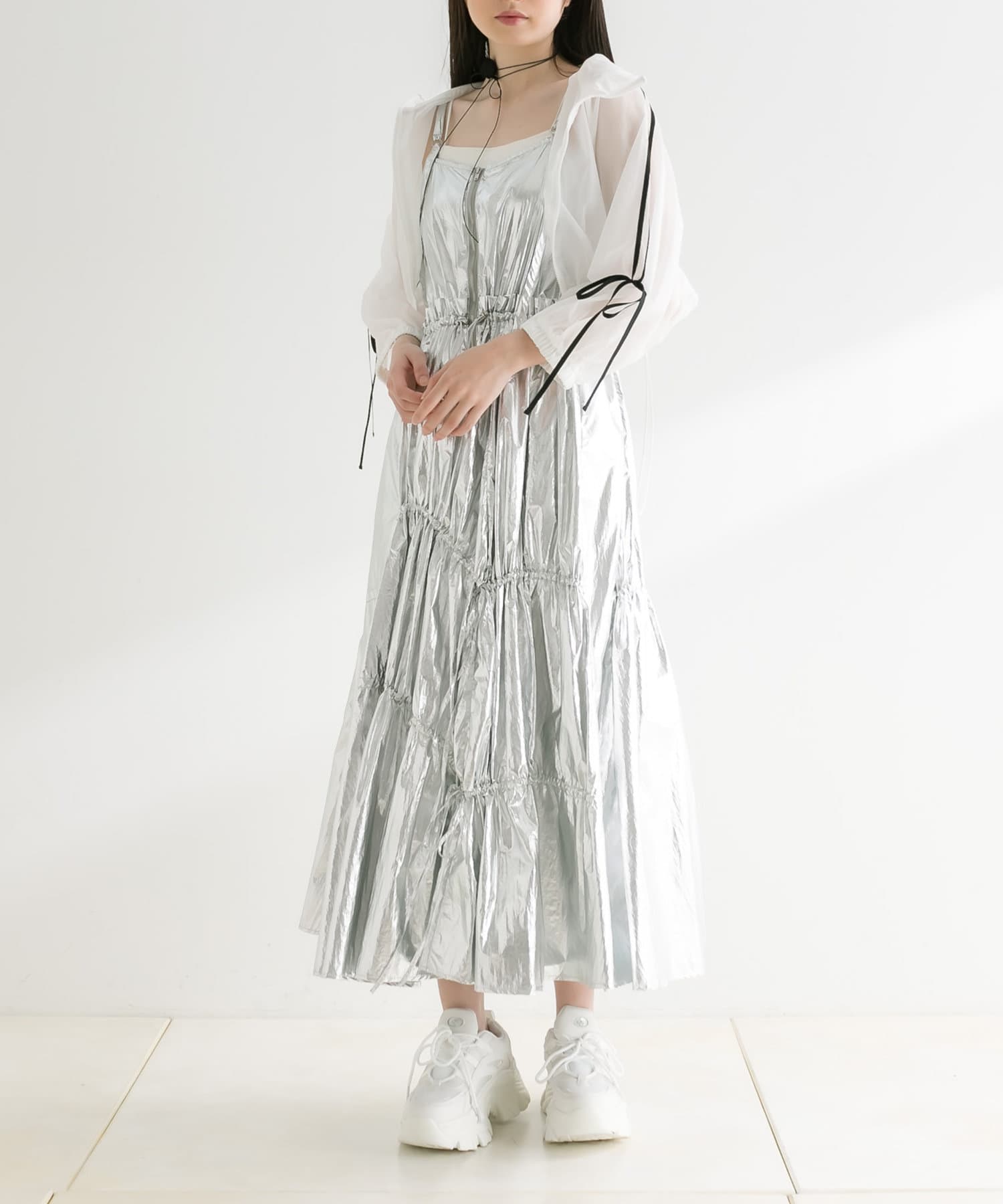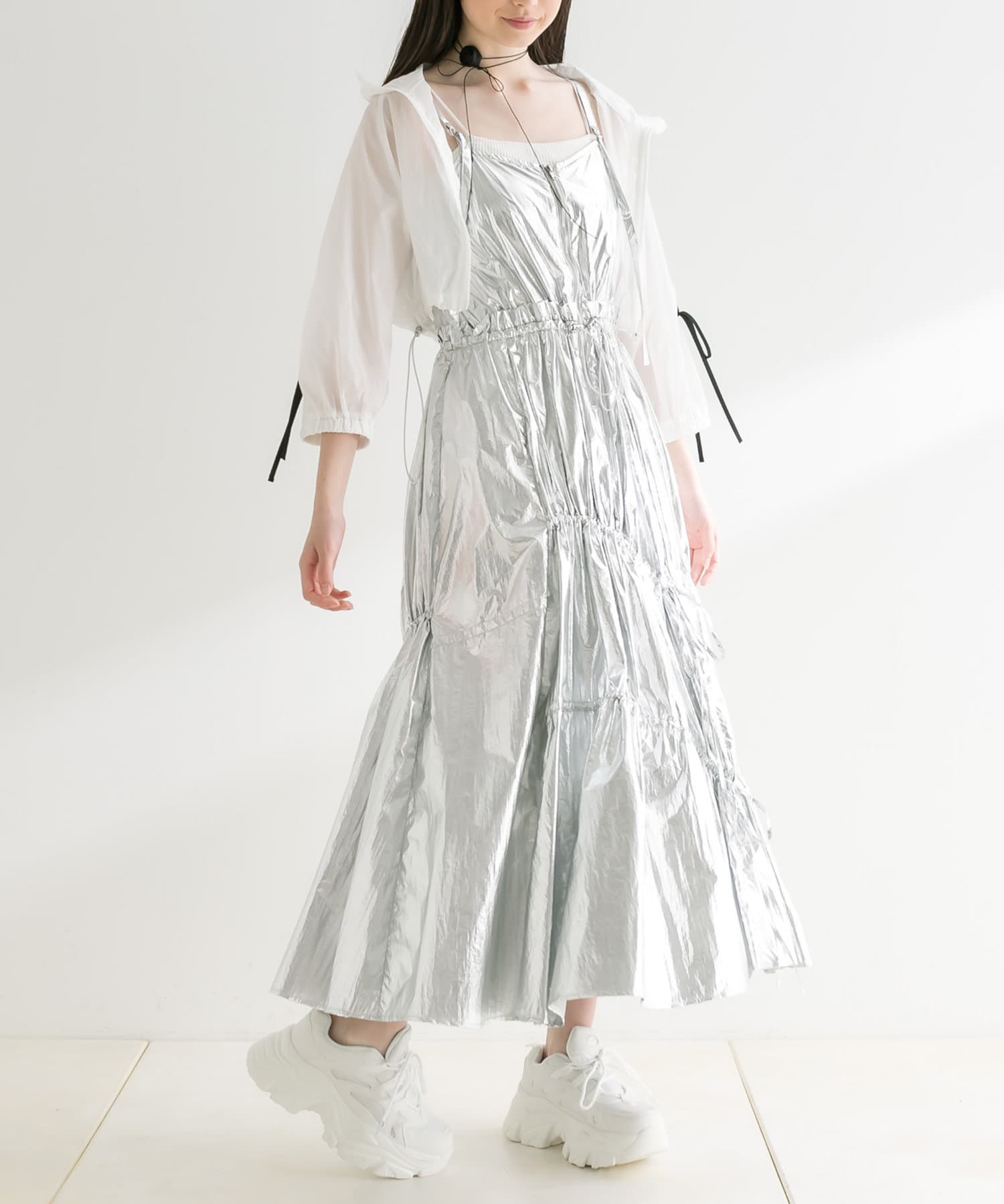 ・キャミワンピースやビスチェなどに合わせた程よい肌見せの韓国っぽコーデも可愛いです。