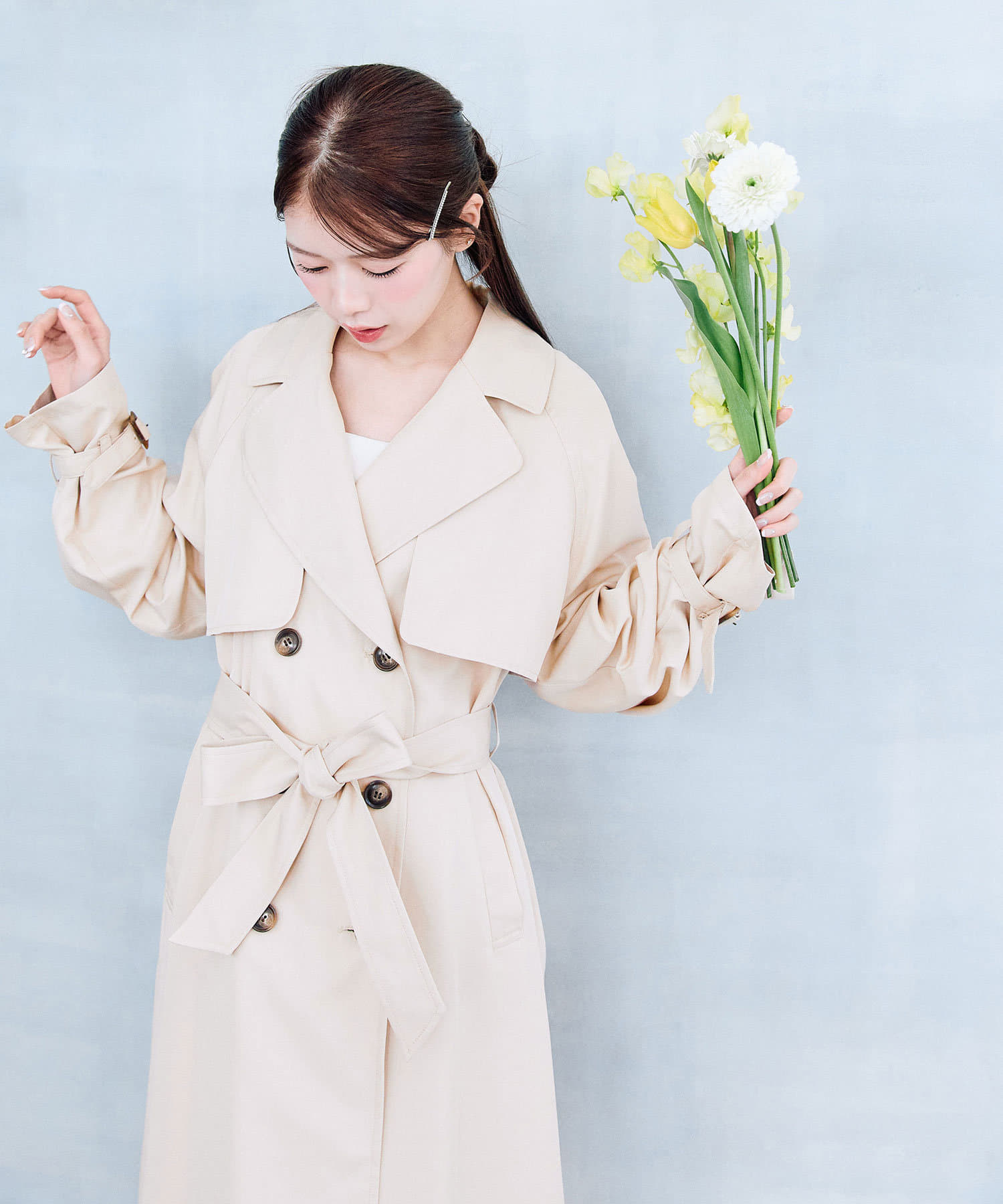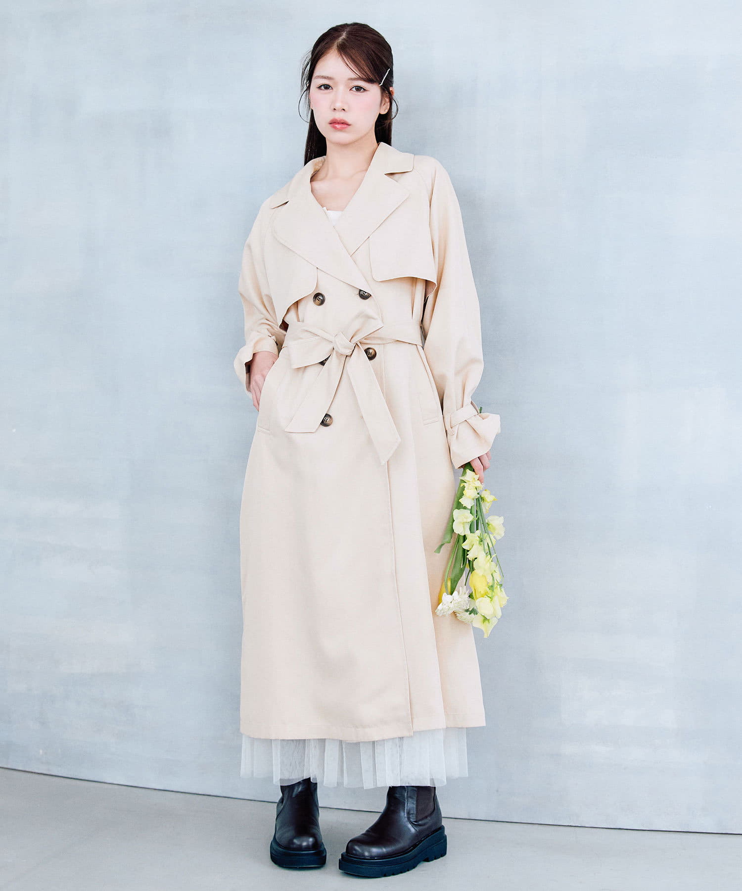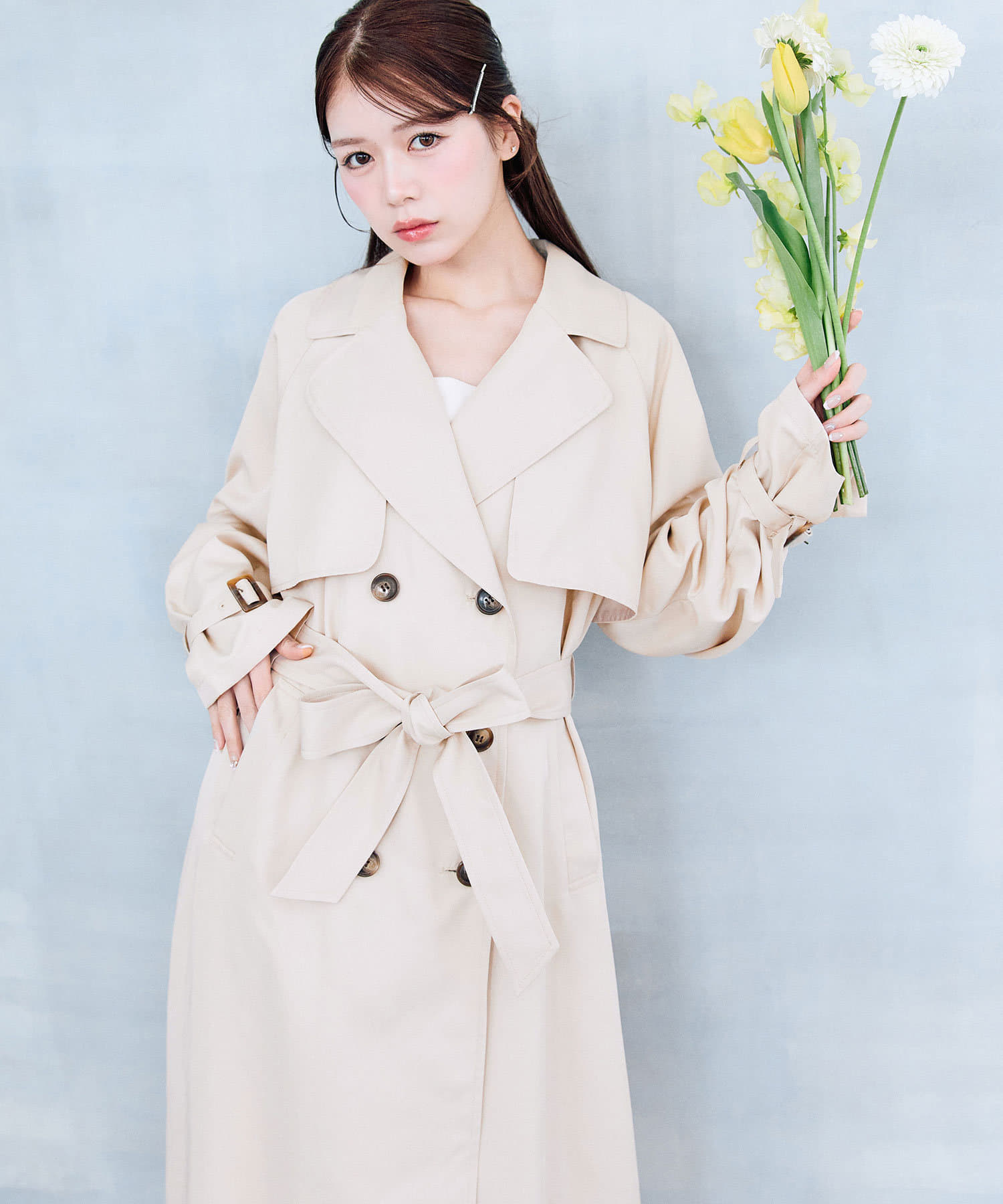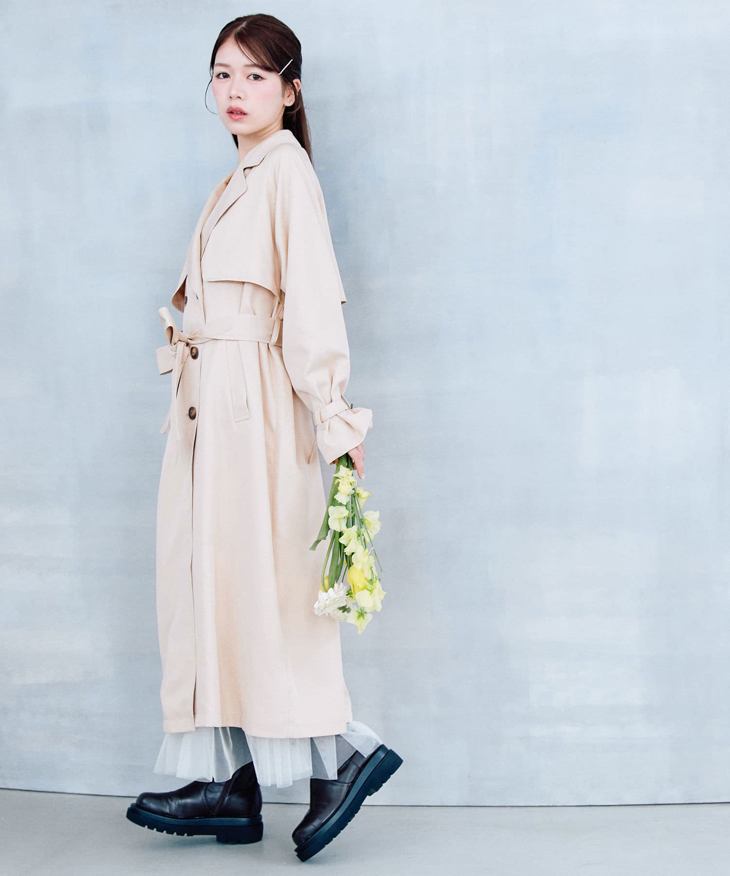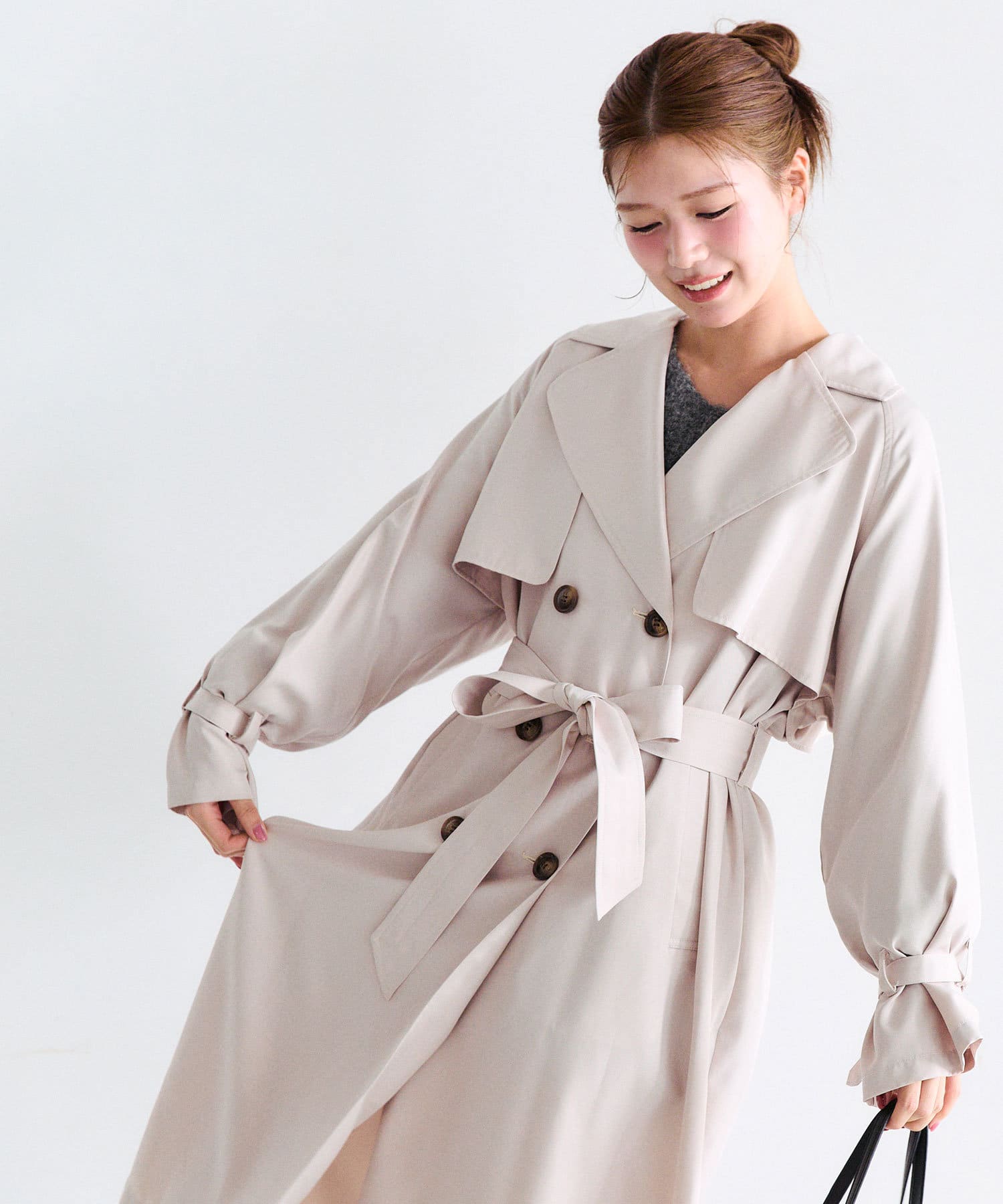 ・身長別で、自分好みの丈感が選べるトレンチコート。
