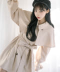 ・ボタンを閉じてウエストリボンを結ぶとワンピース風に。オリーブらしい大人ガーリースタイルが完成します。