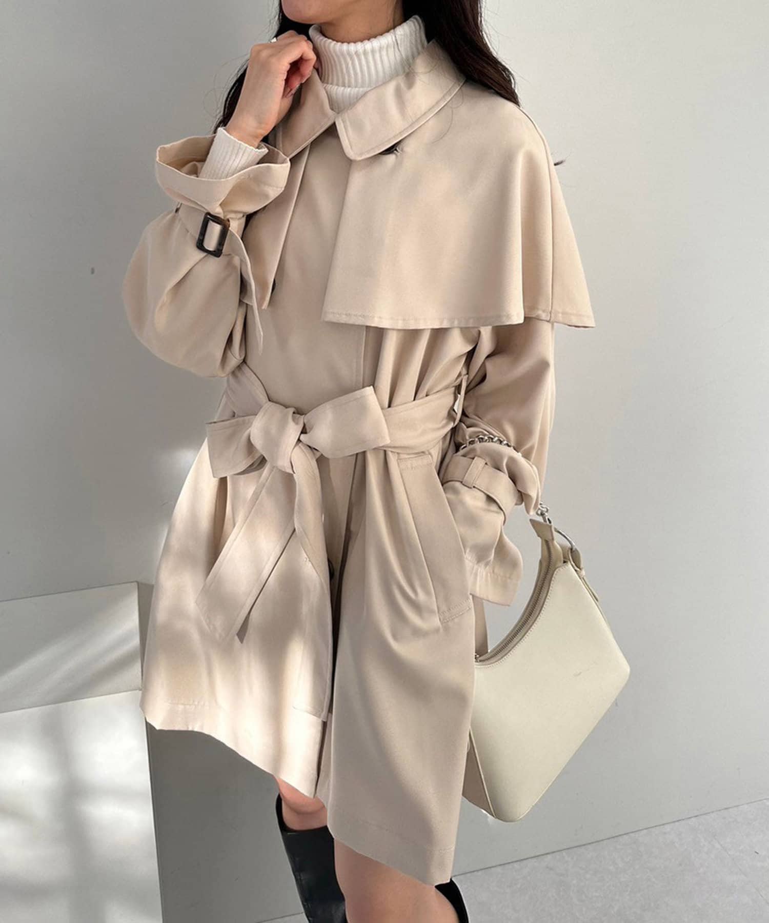 ・ケープは取り外し可能で、2WAYで着こなしが楽しめます。