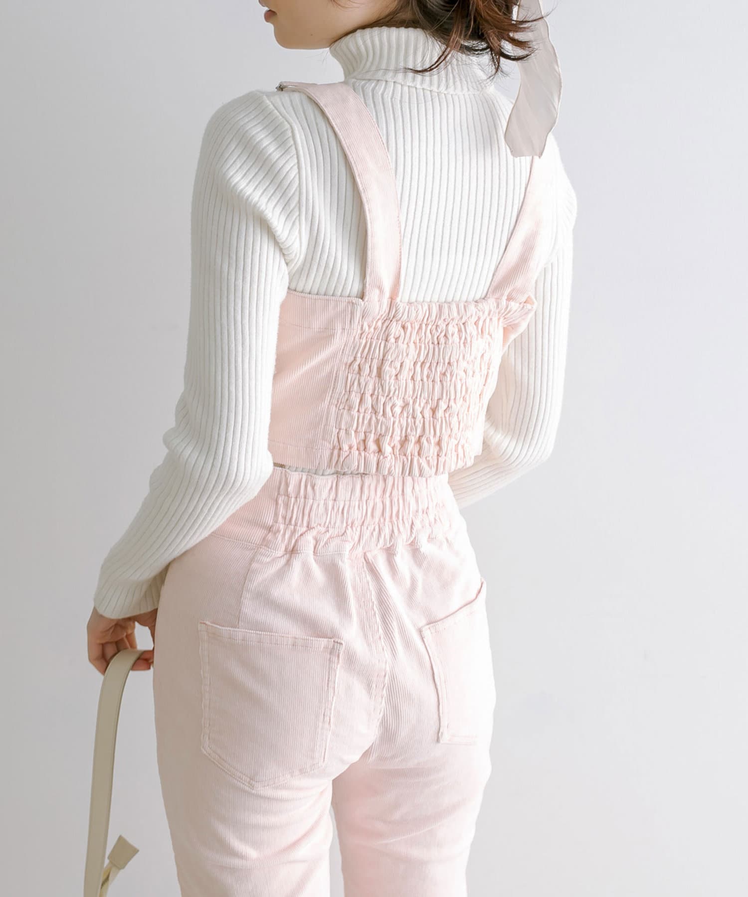 ・ピンクは春らしいペールピンクの春コーデュロイ。