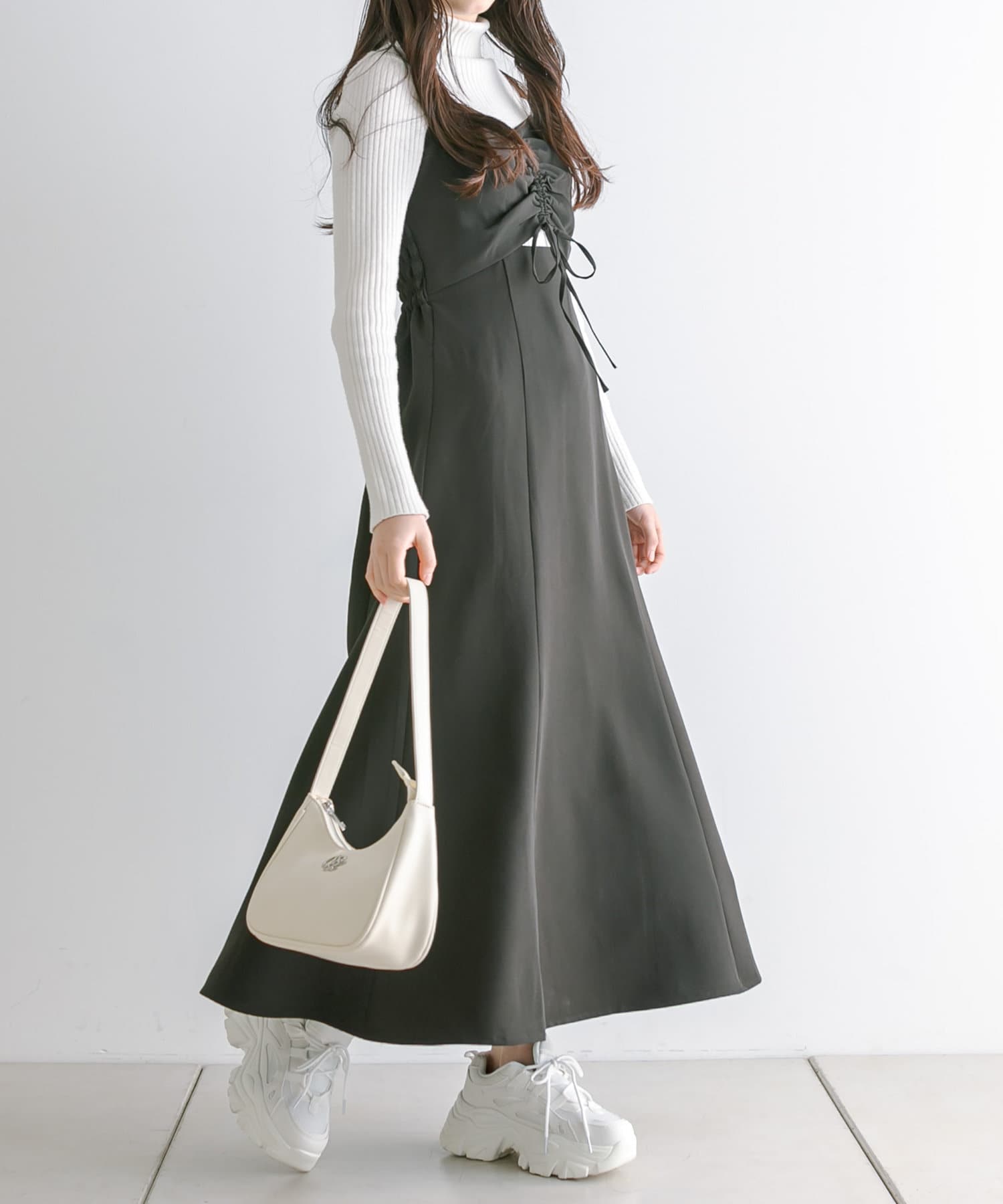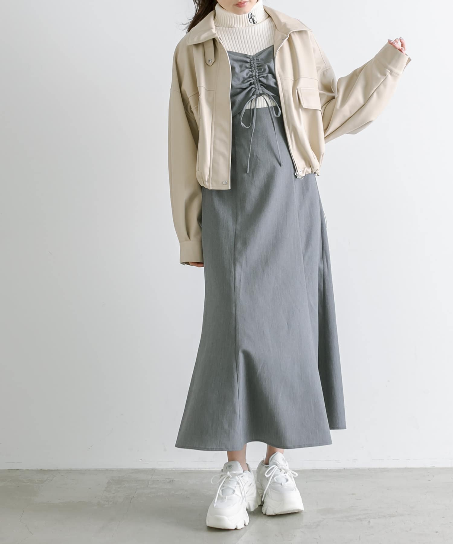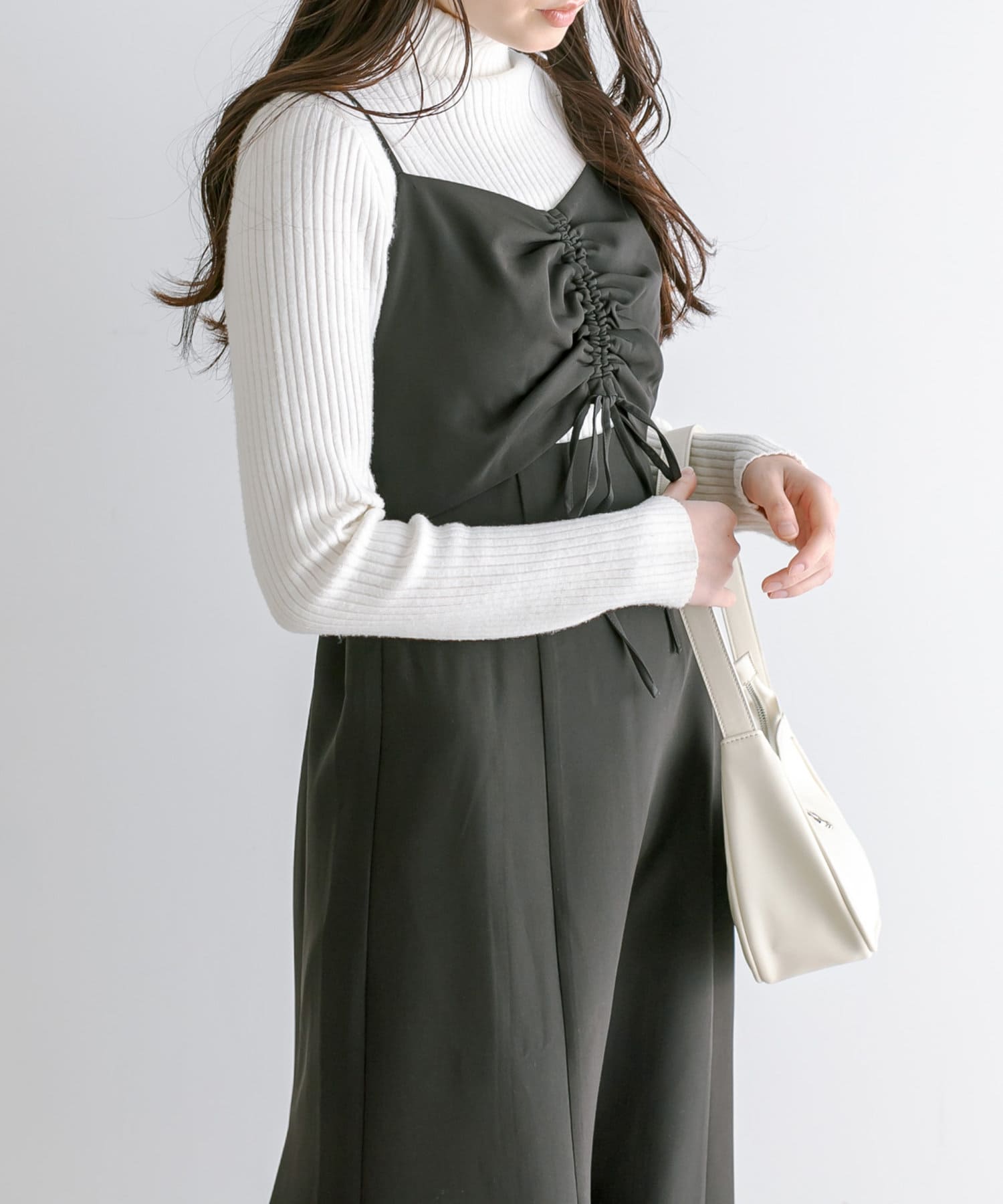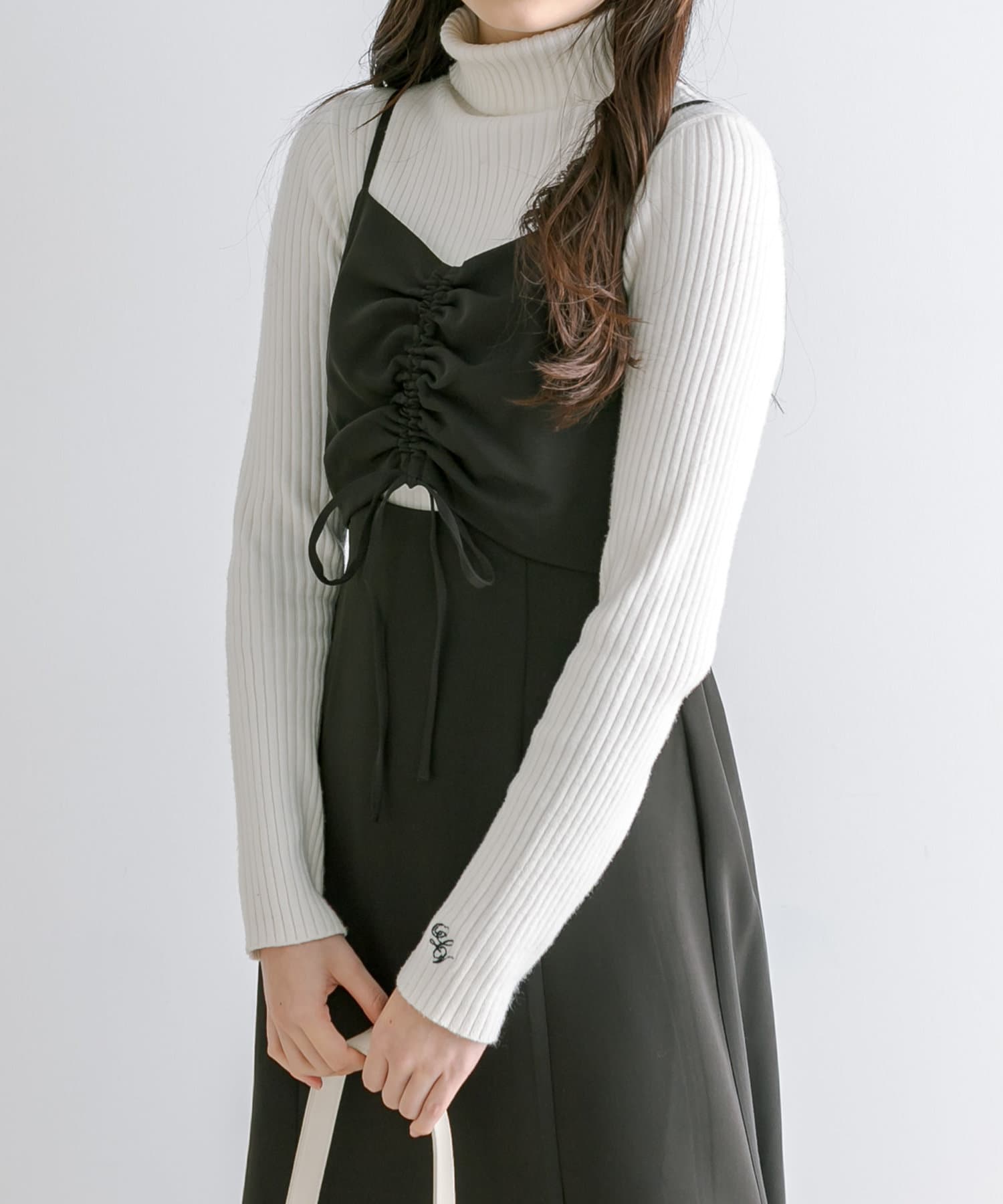 ・リボンでくしゅっと感を調節でき、インナーをチラ見せしたい方はたくさん絞っていただけます。