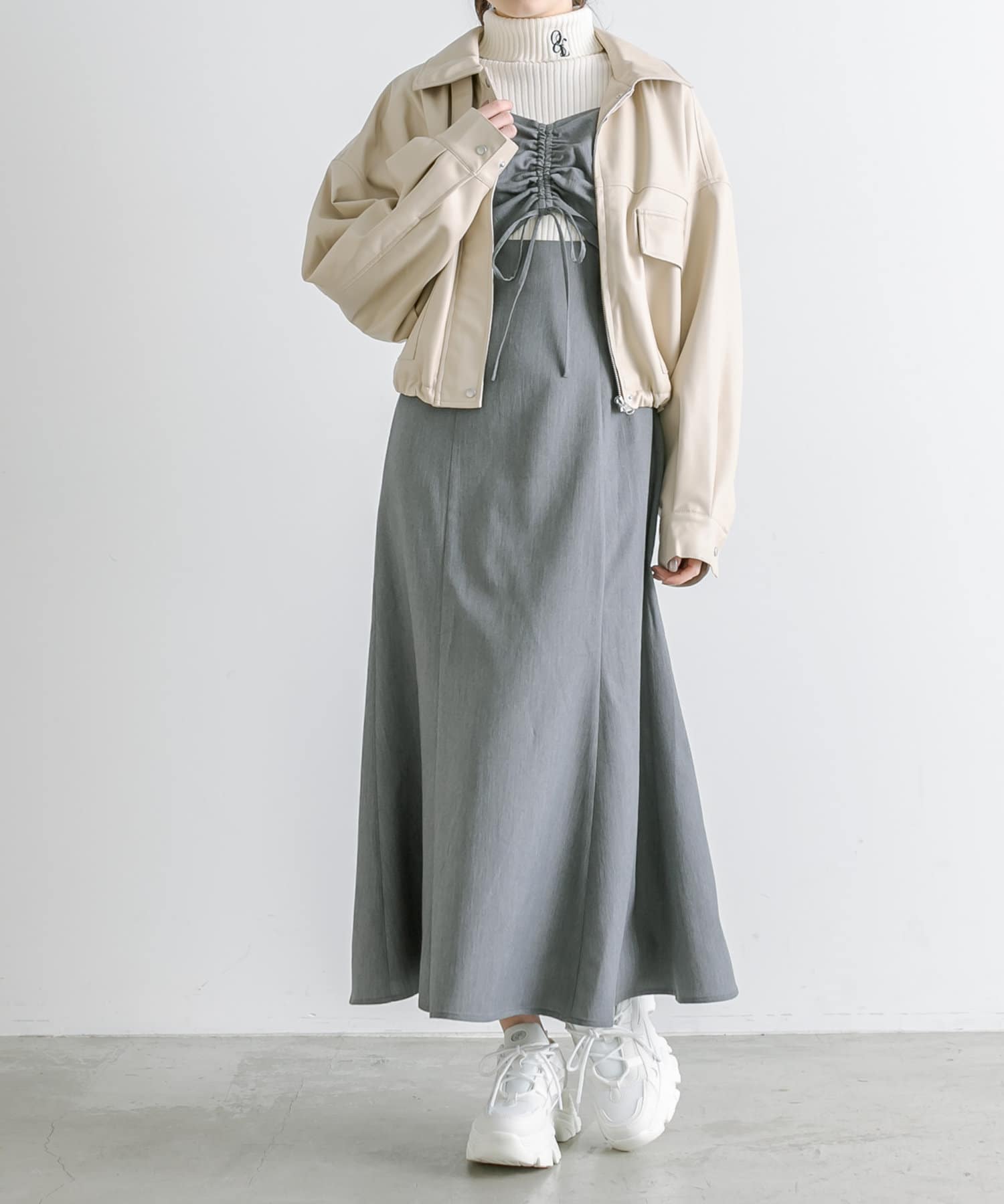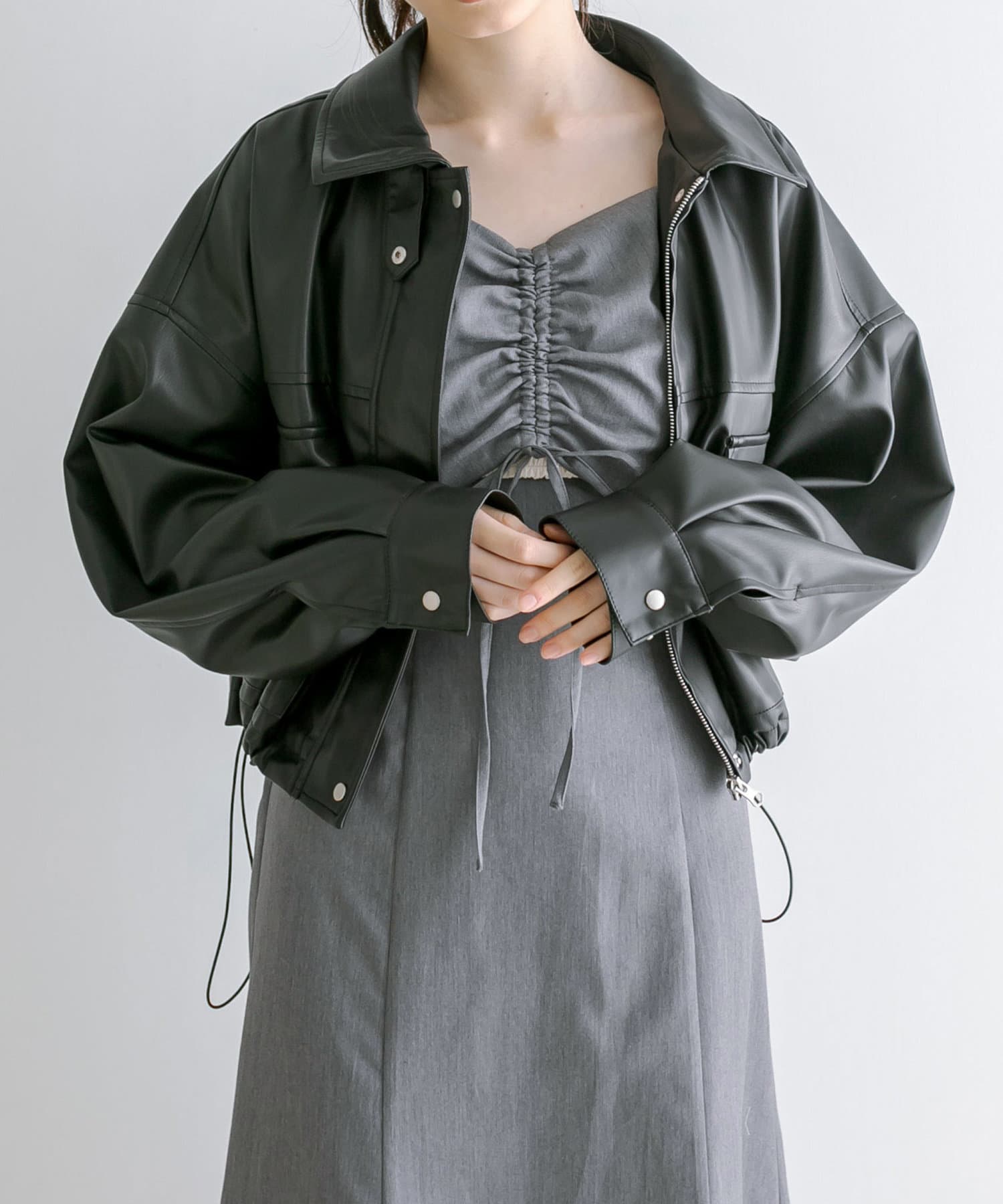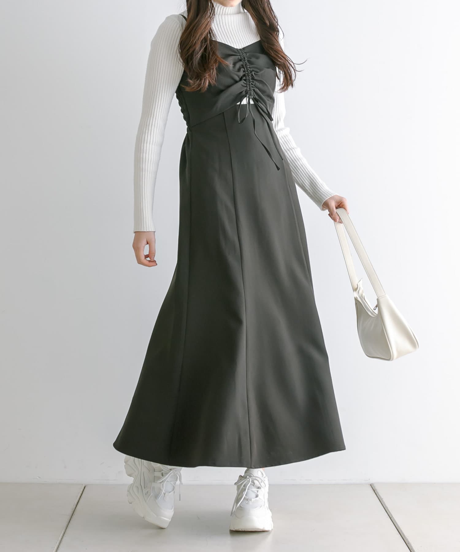 ・リボンでくしゅっと感を調節でき、インナーをチラ見せしたい方はたくさん絞っていただけます。