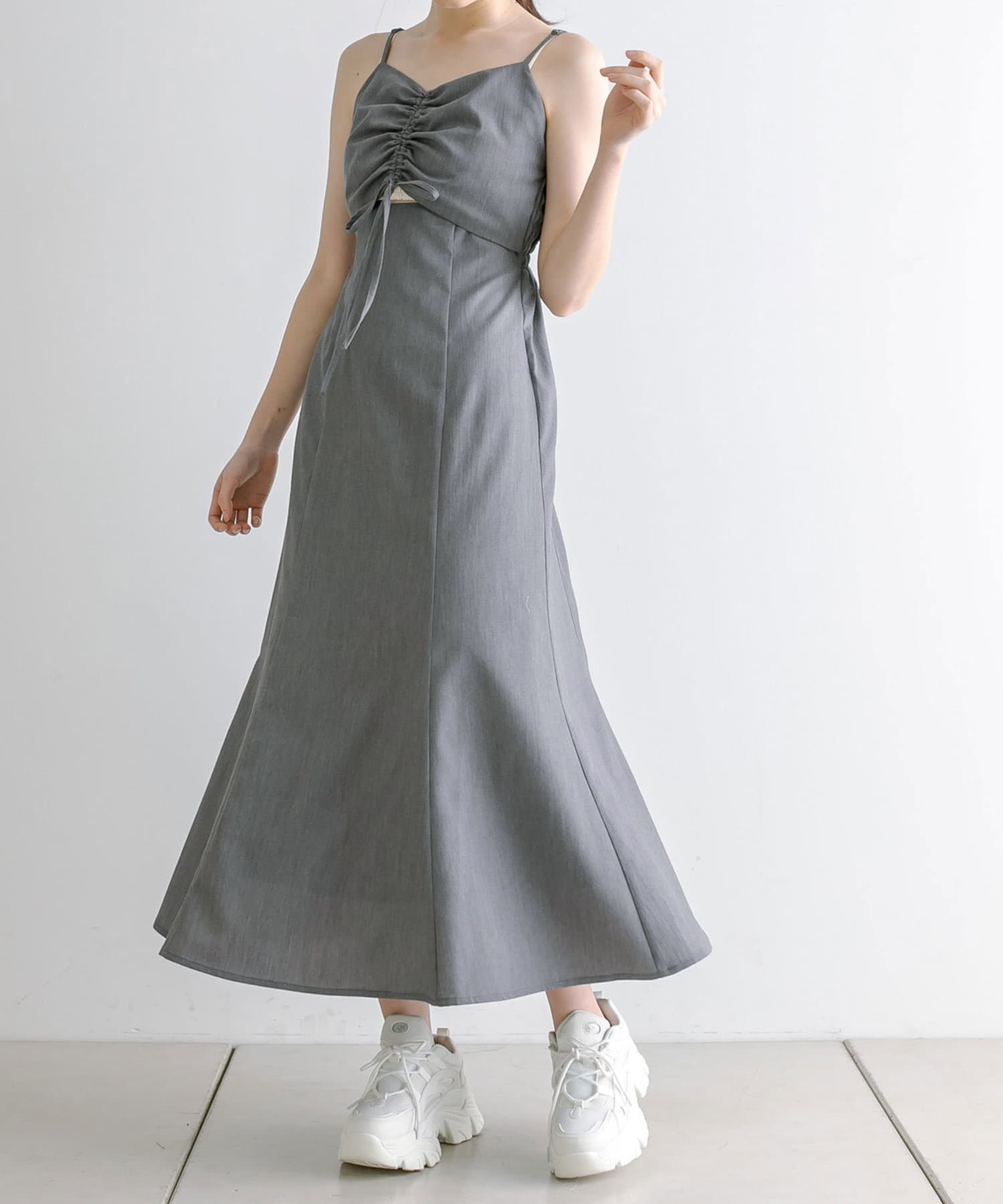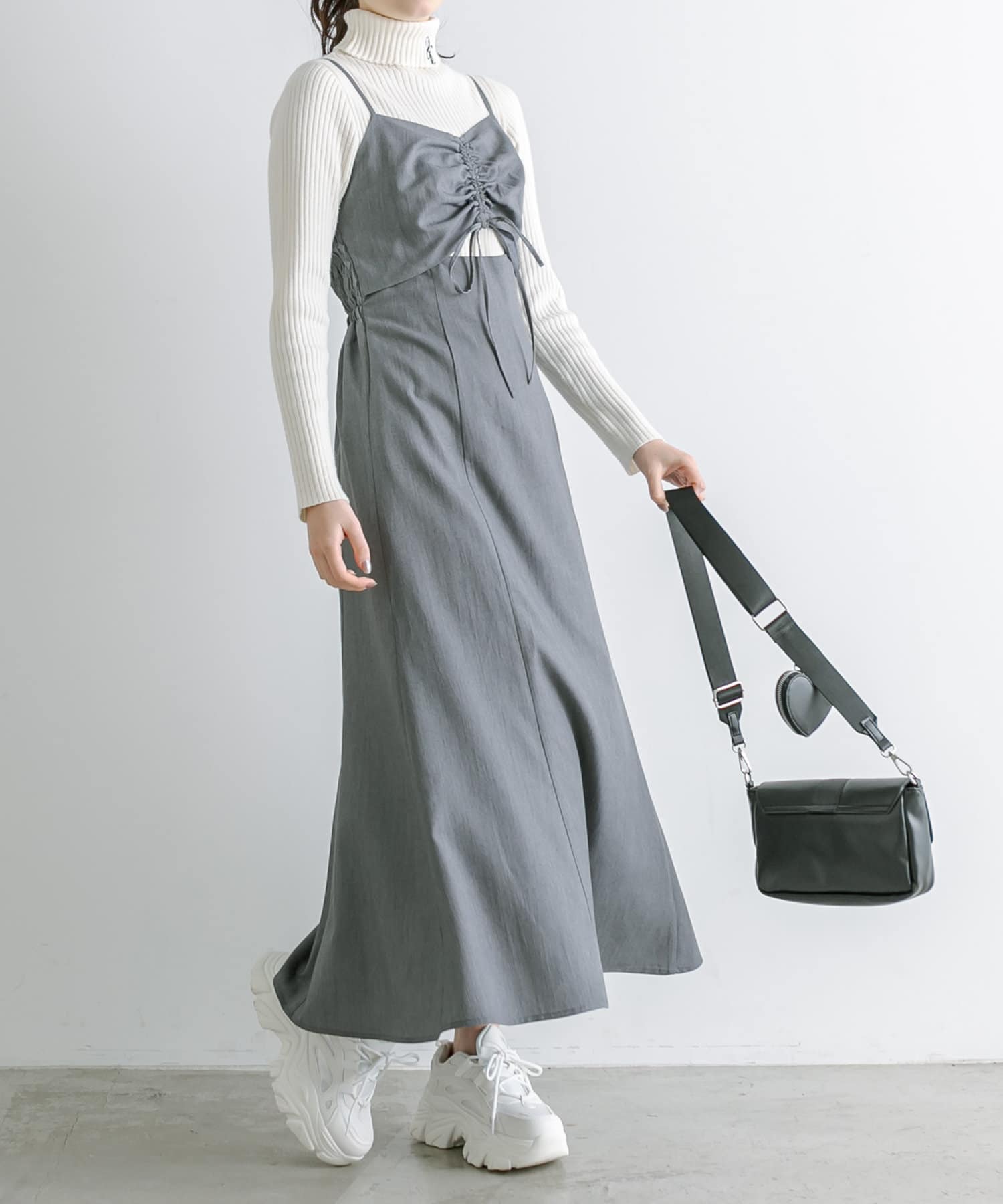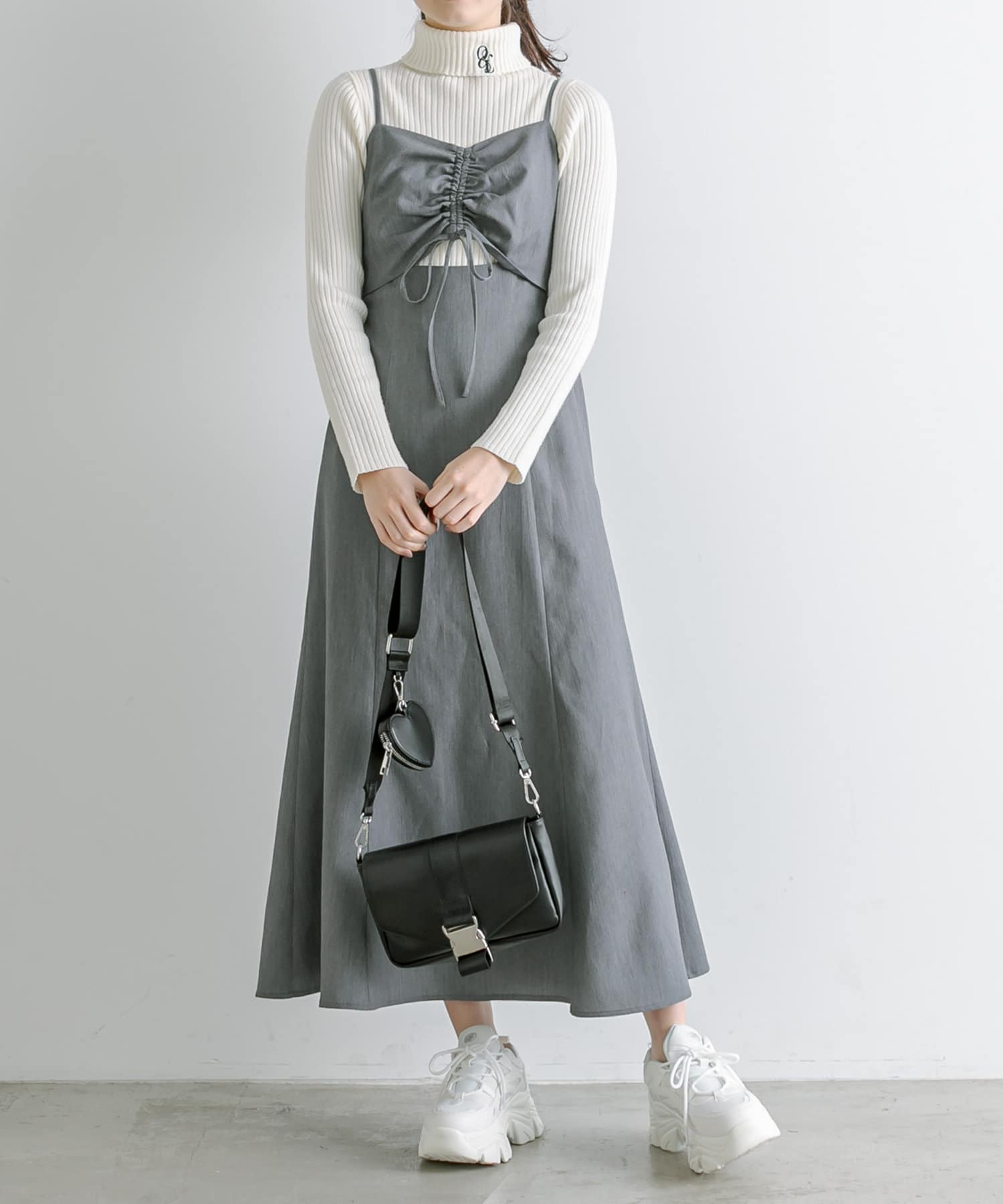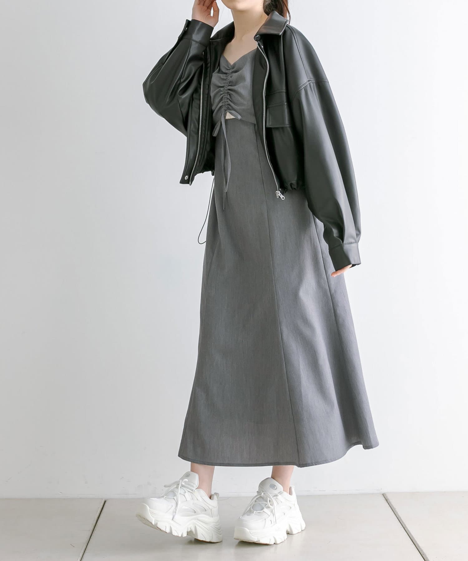 ・リボンでくしゅっと感を調節でき、インナーをチラ見せしたい方はたくさん絞っていただけます。