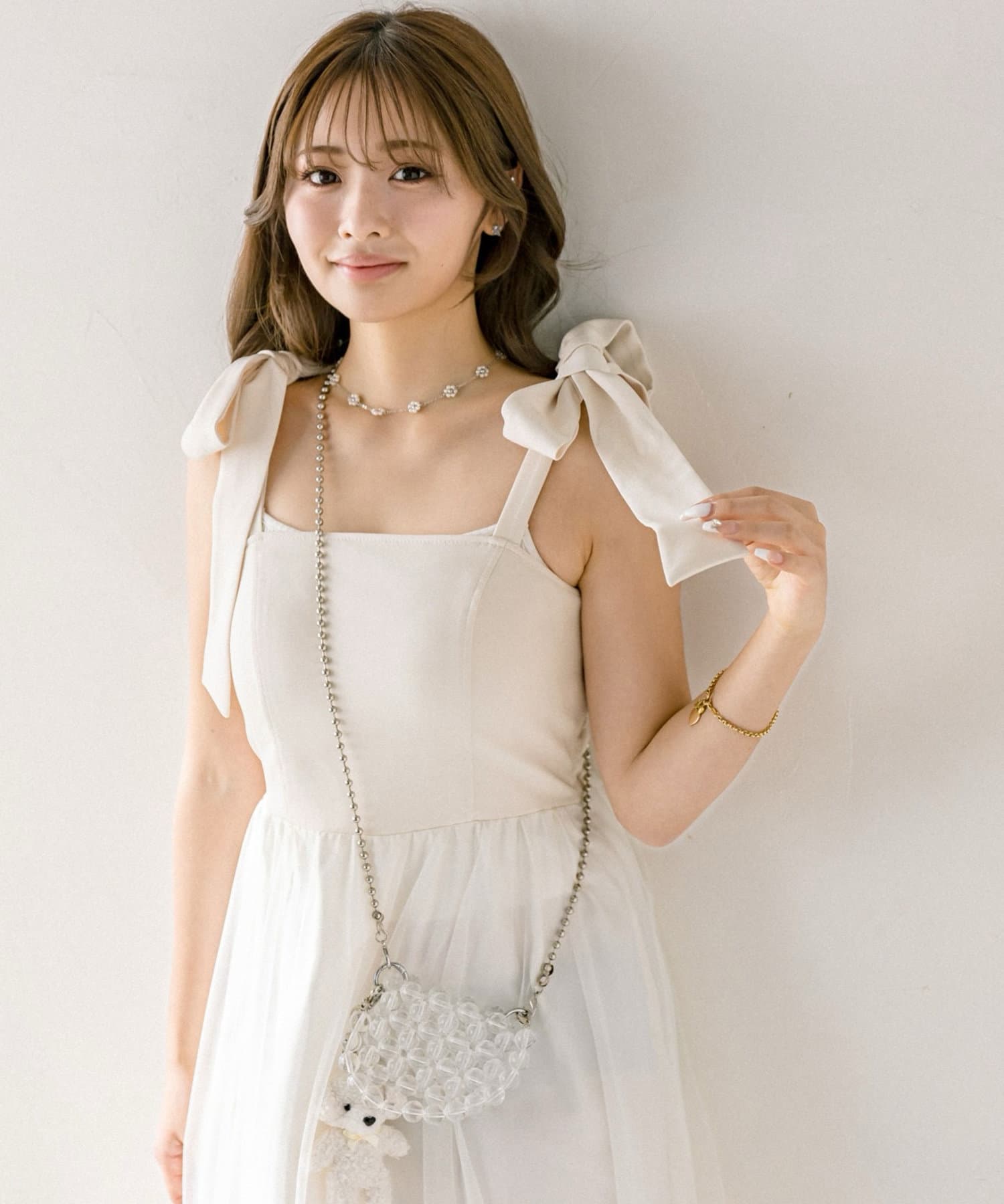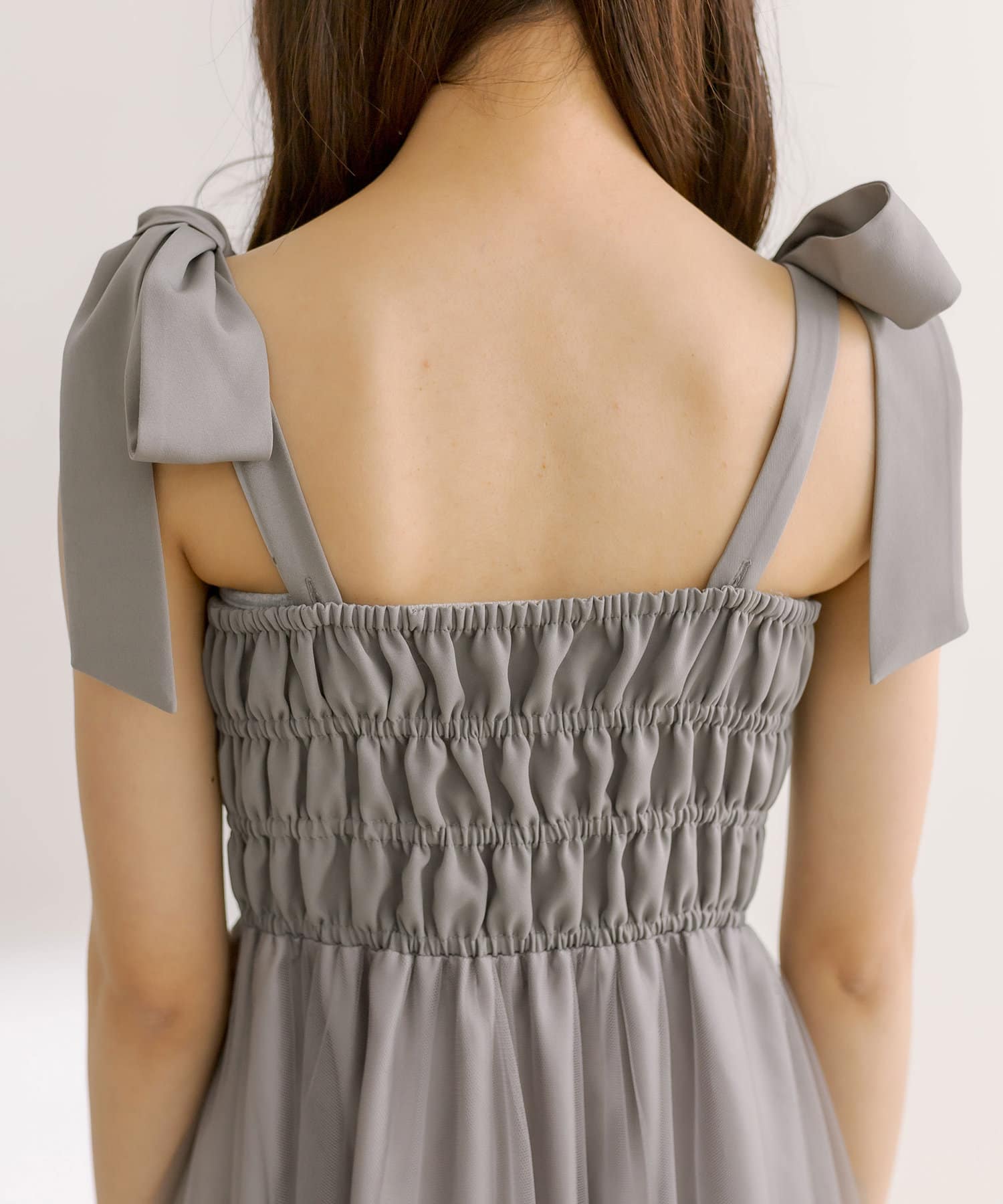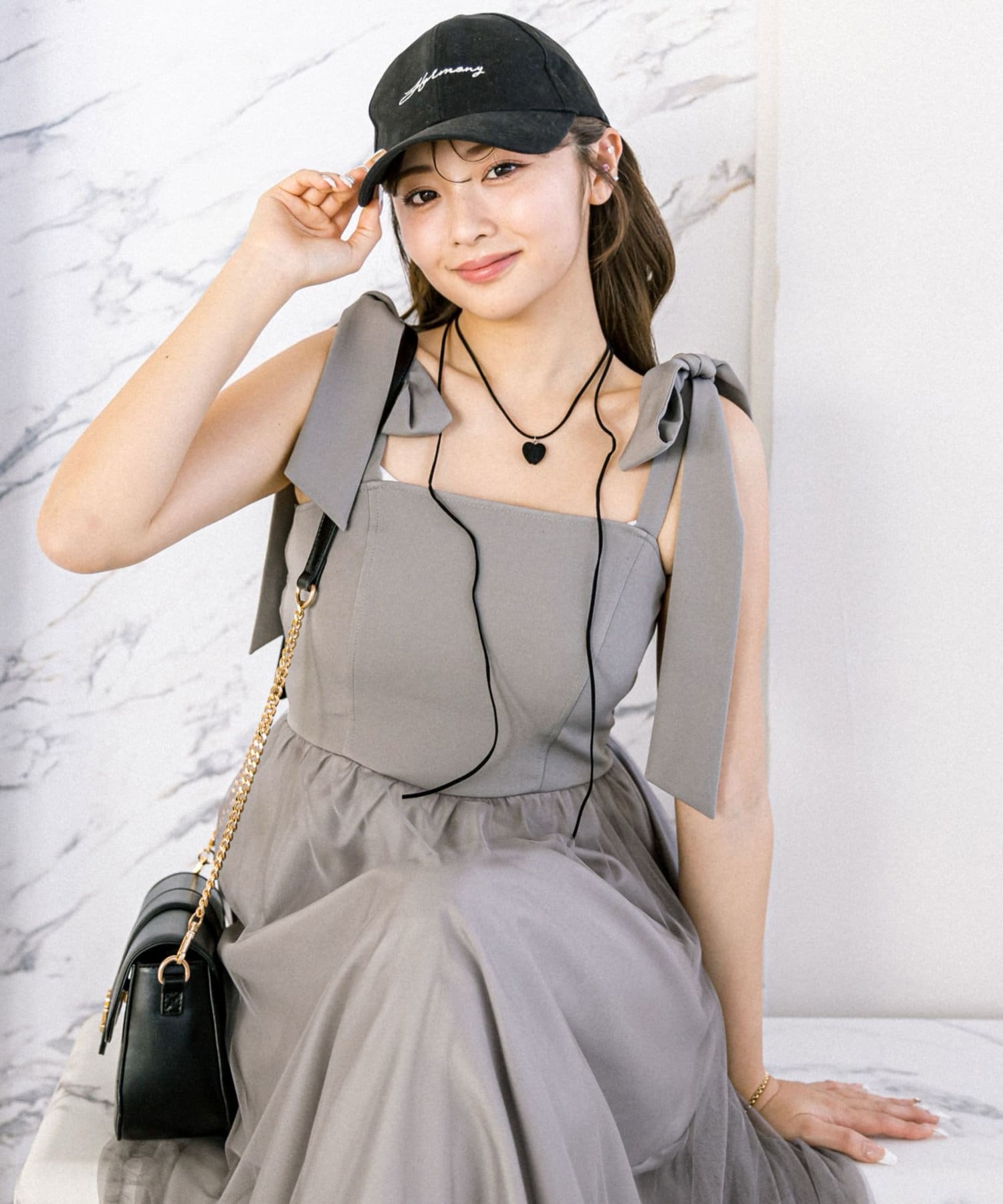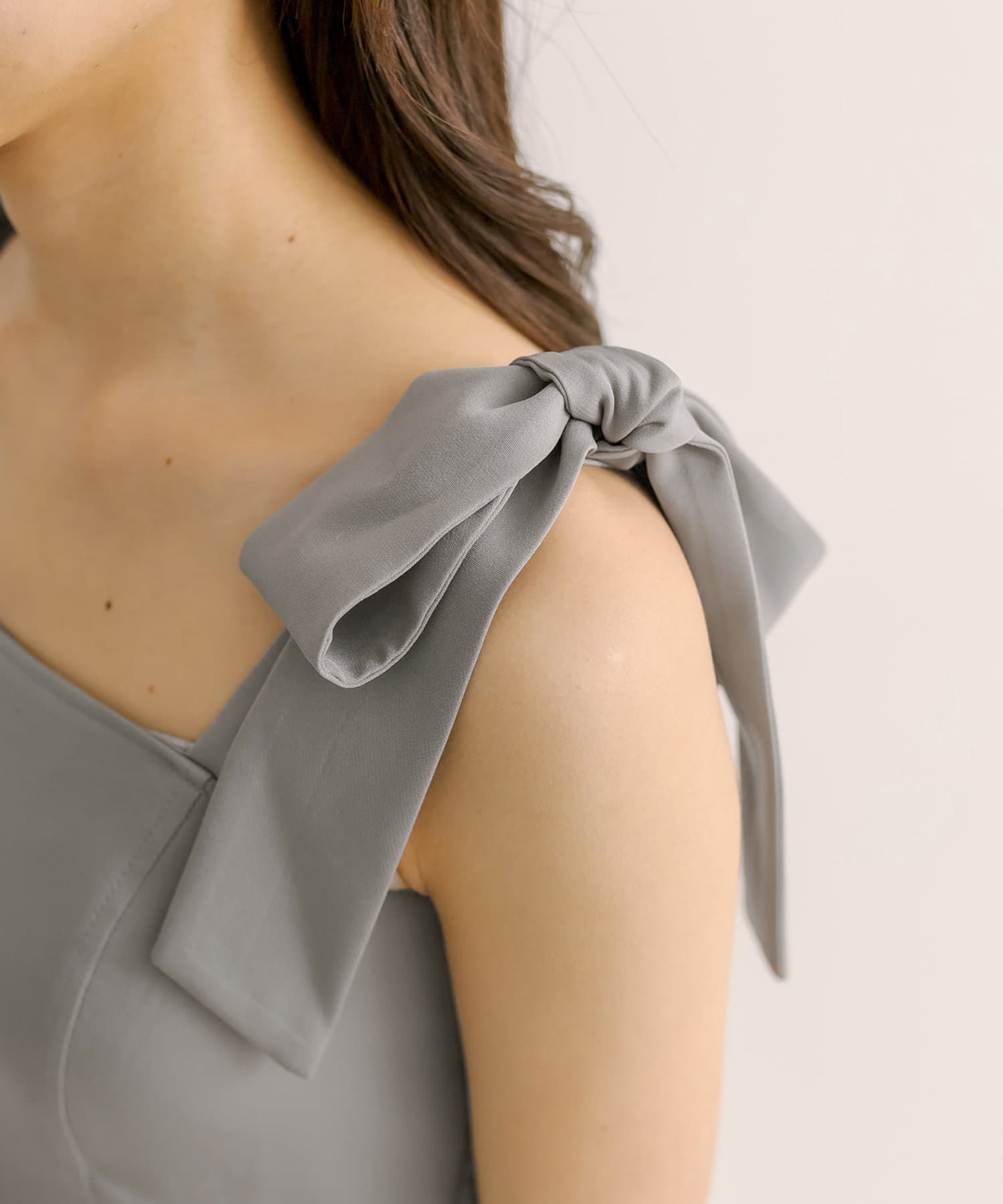 ・肩のリボンが目を惹くガーリーなキャミワンピース。