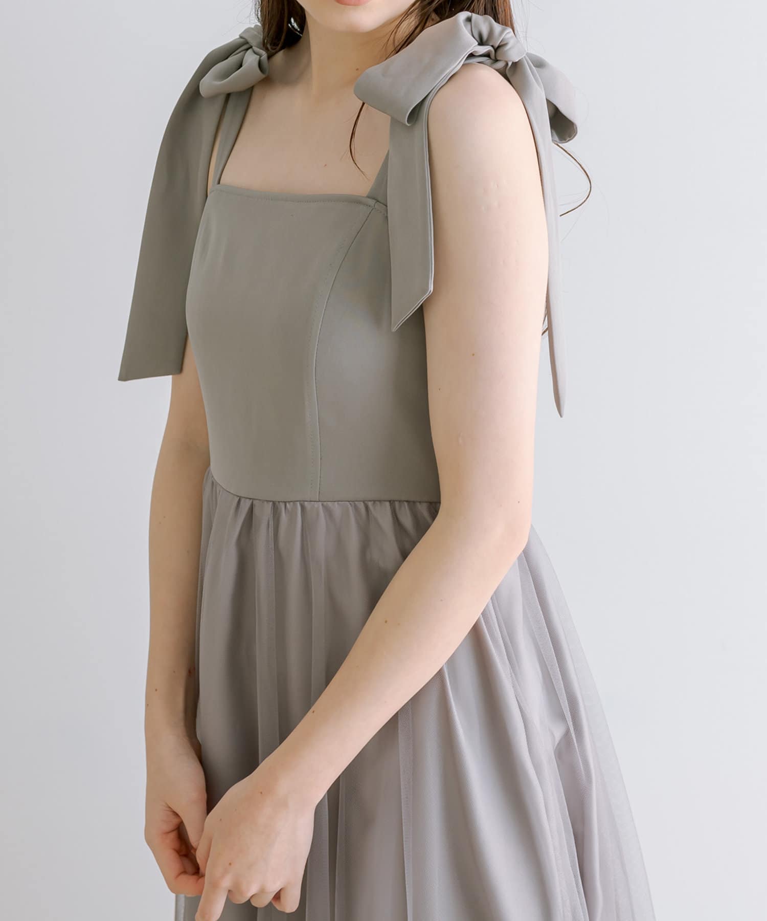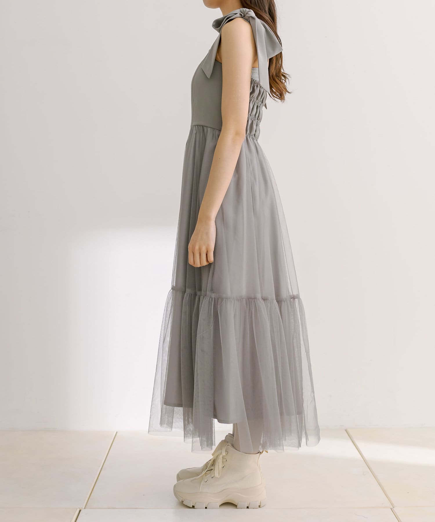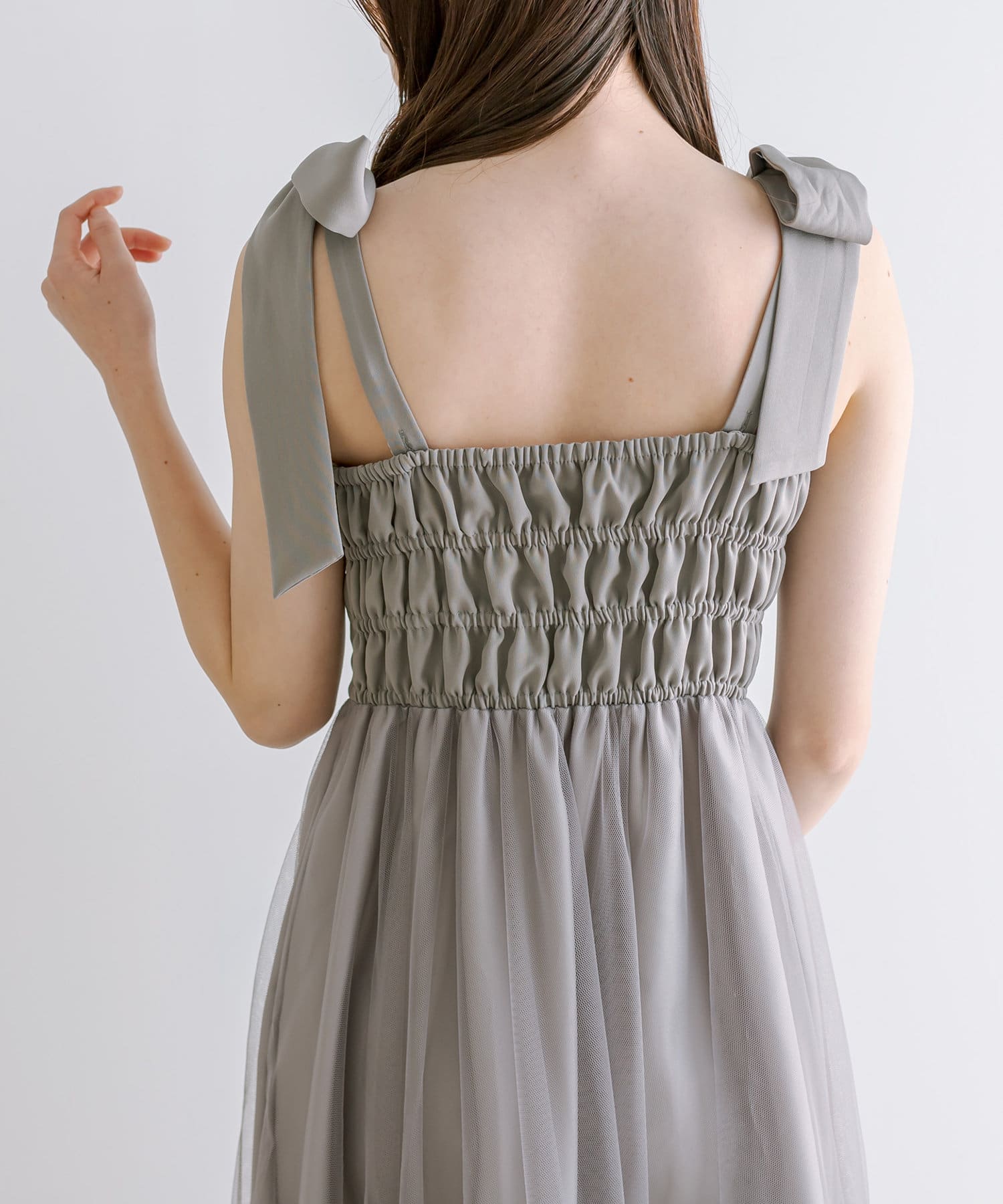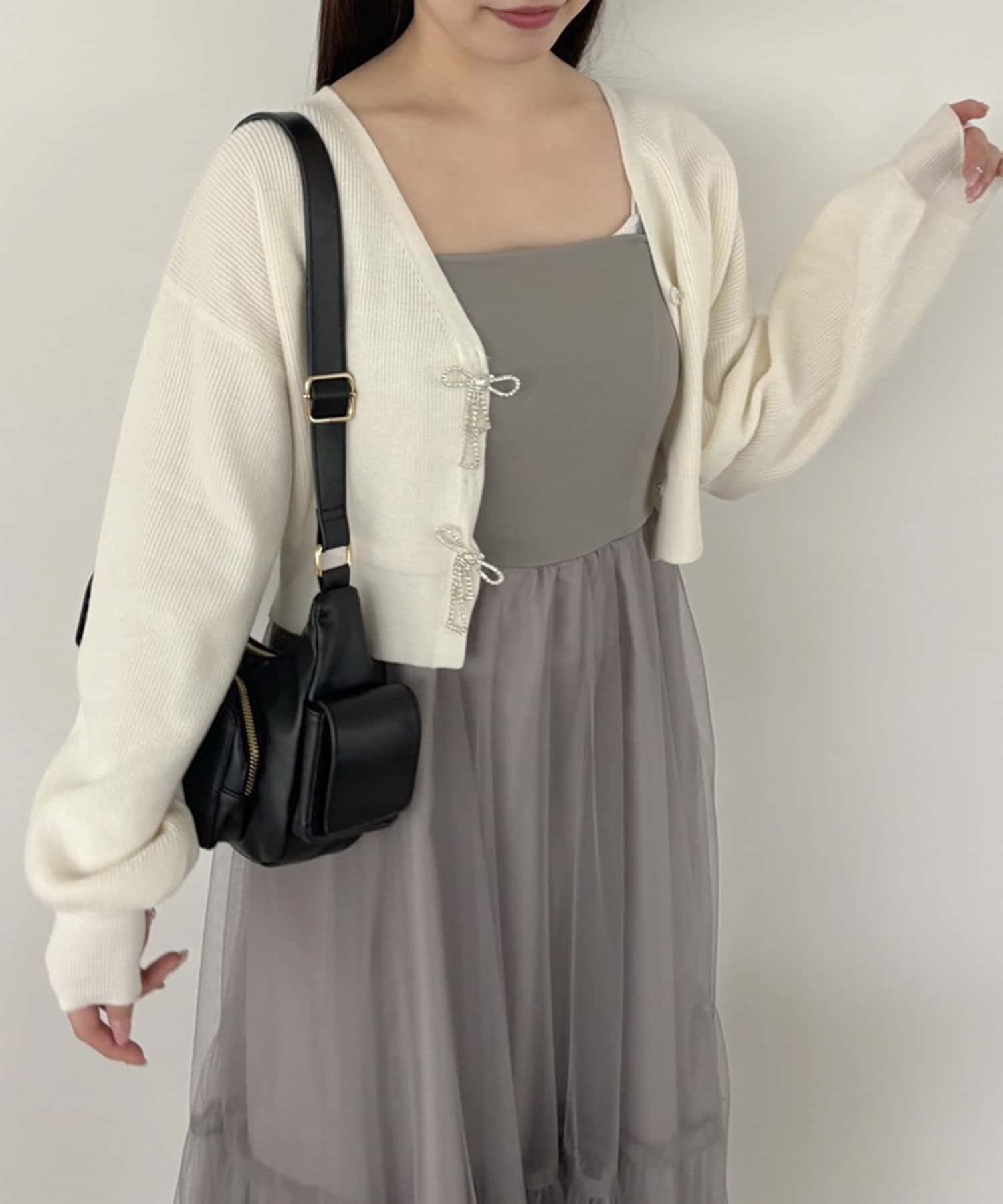 ・肩のリボンが目を惹くガーリーなキャミワンピース。