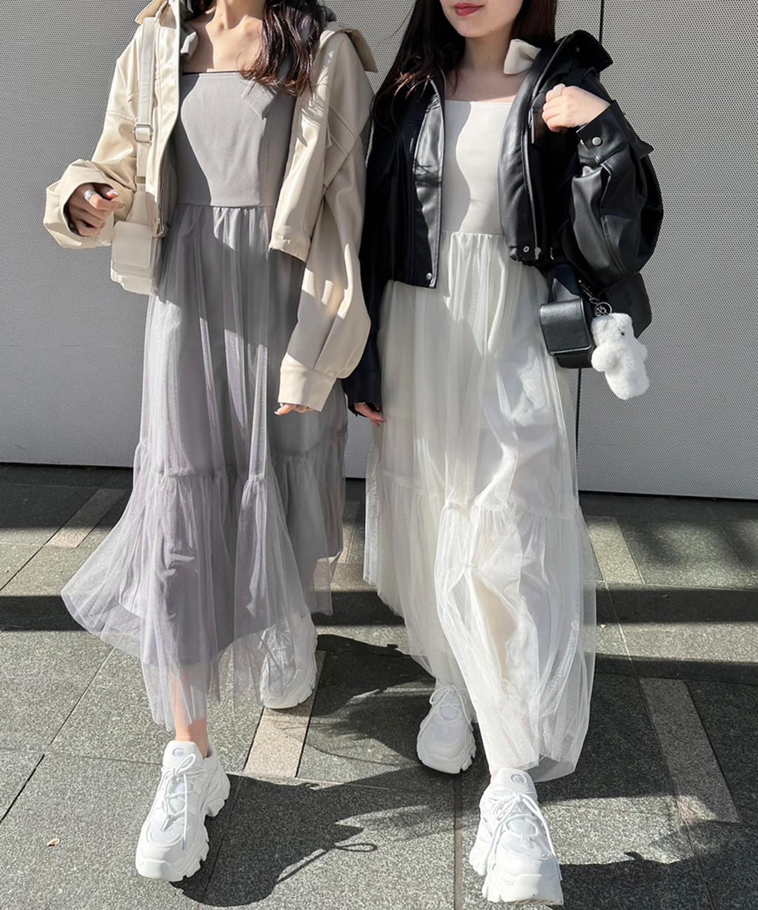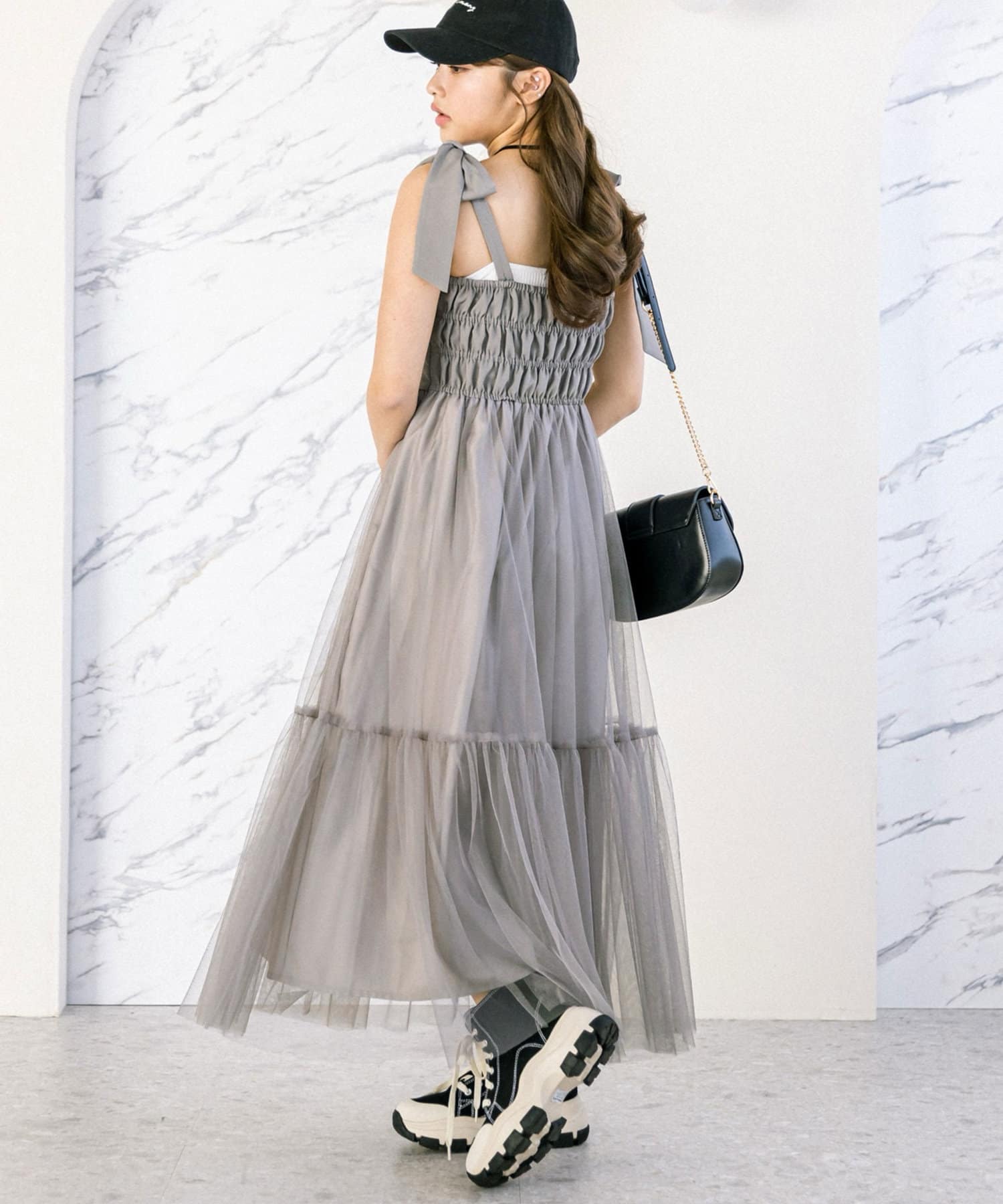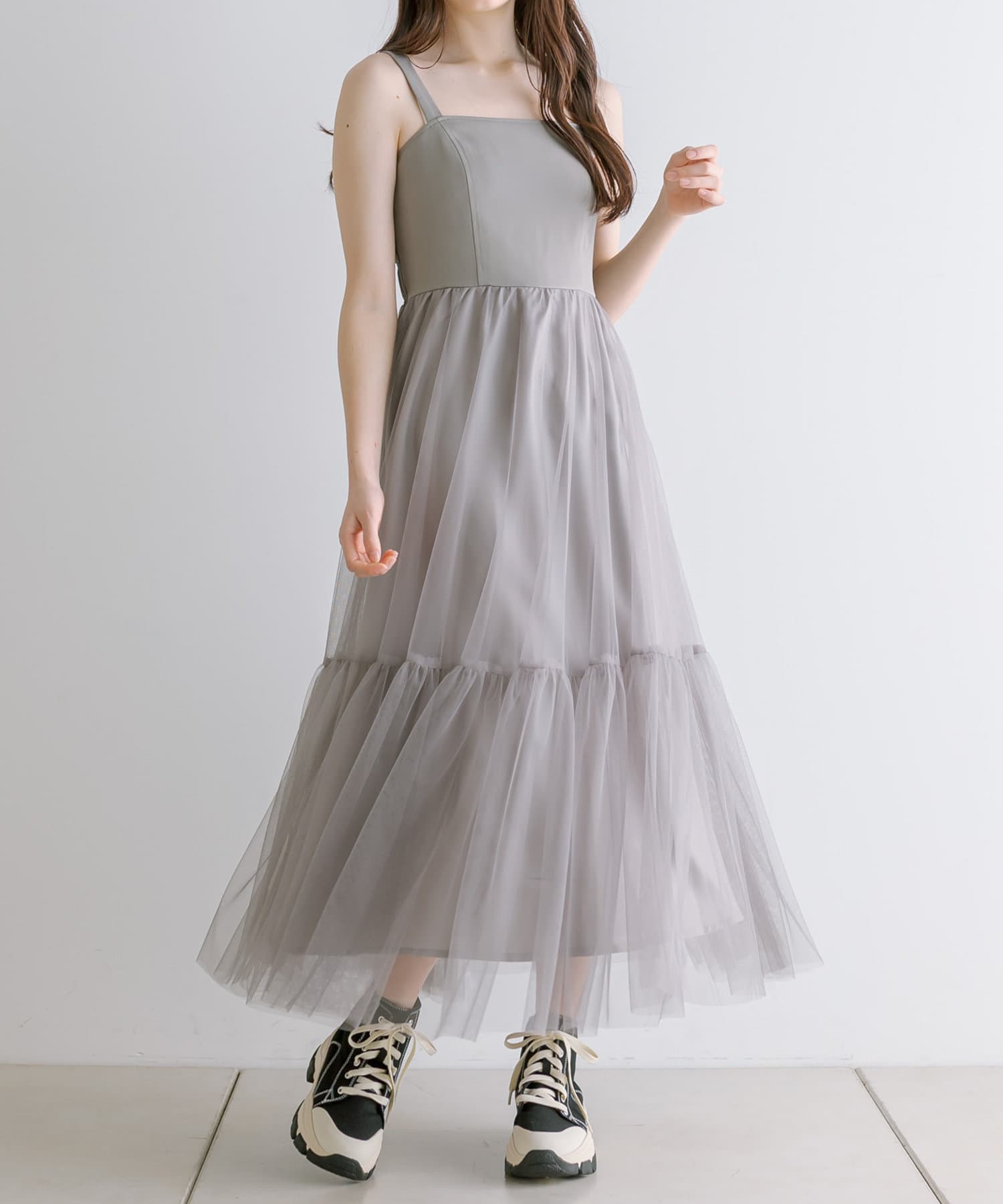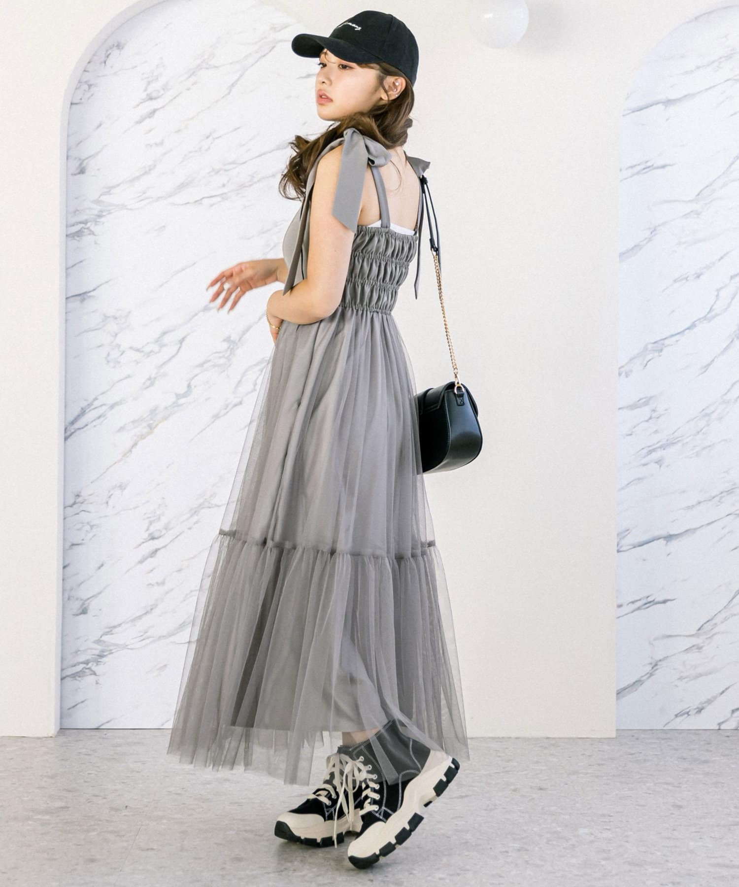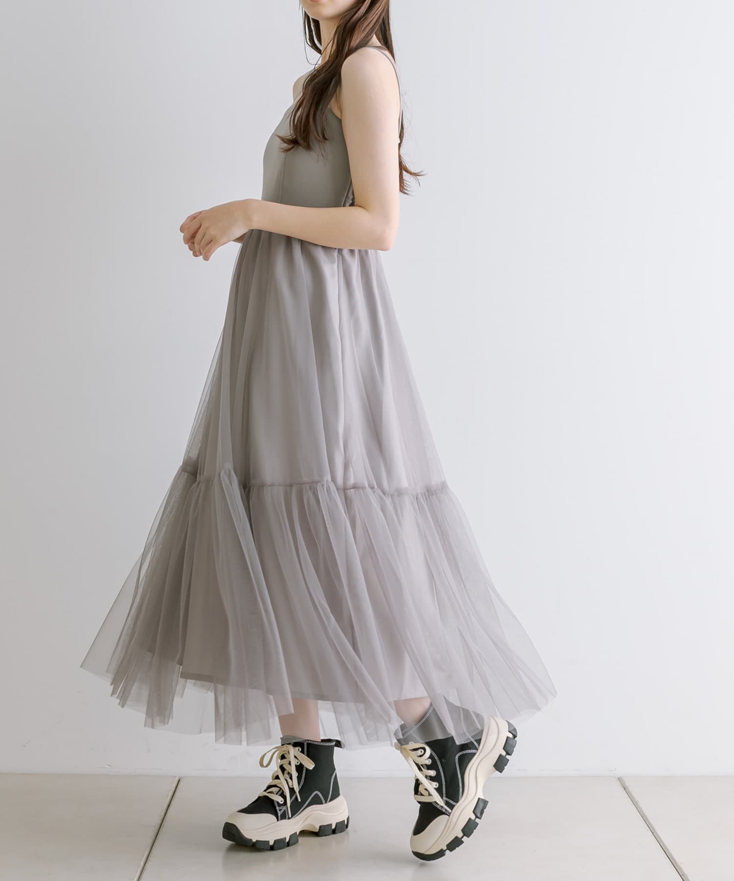 【S/Mサイズ展開】チュールドッキングキャミワンピース
