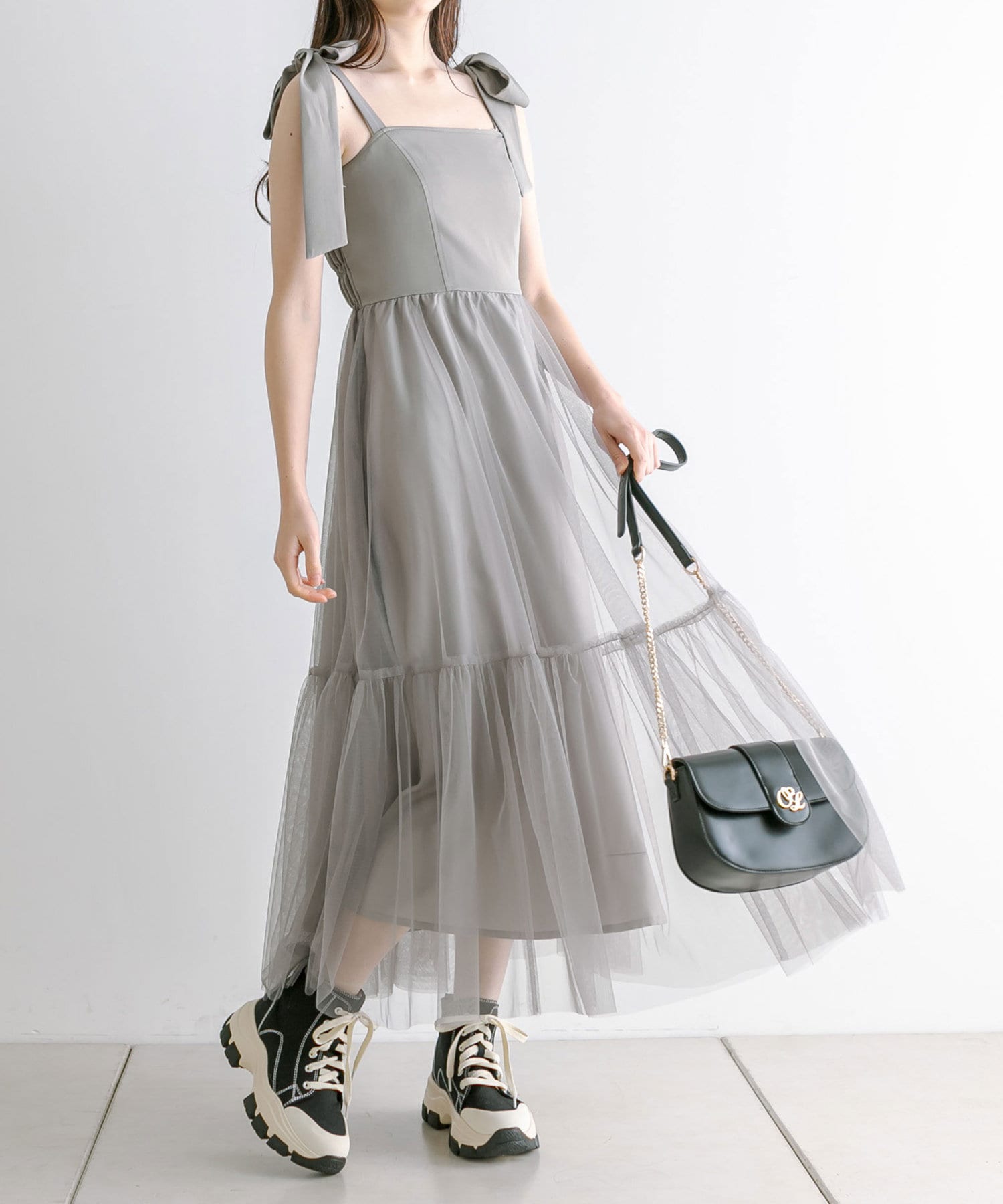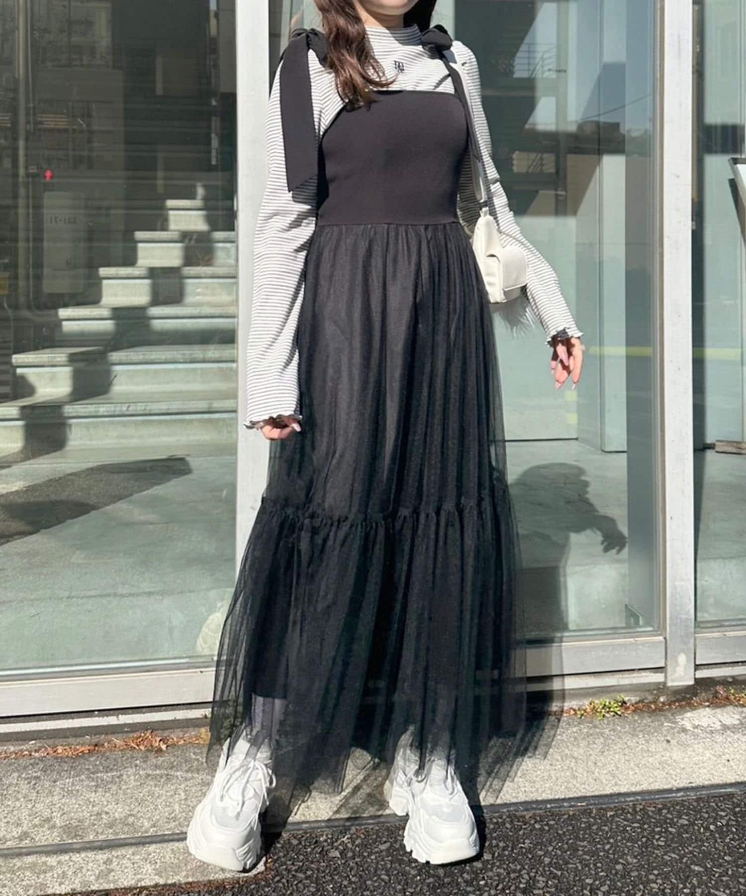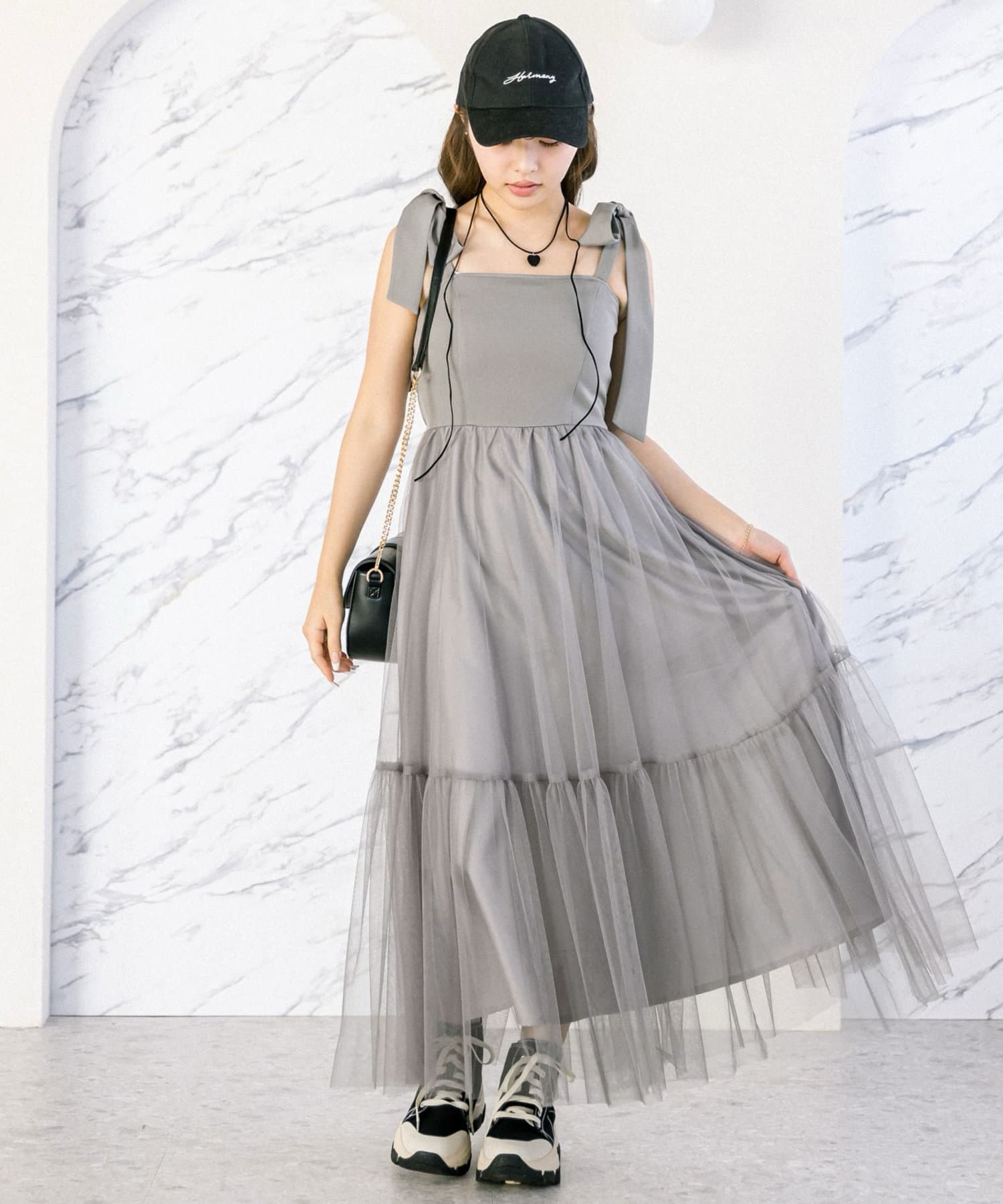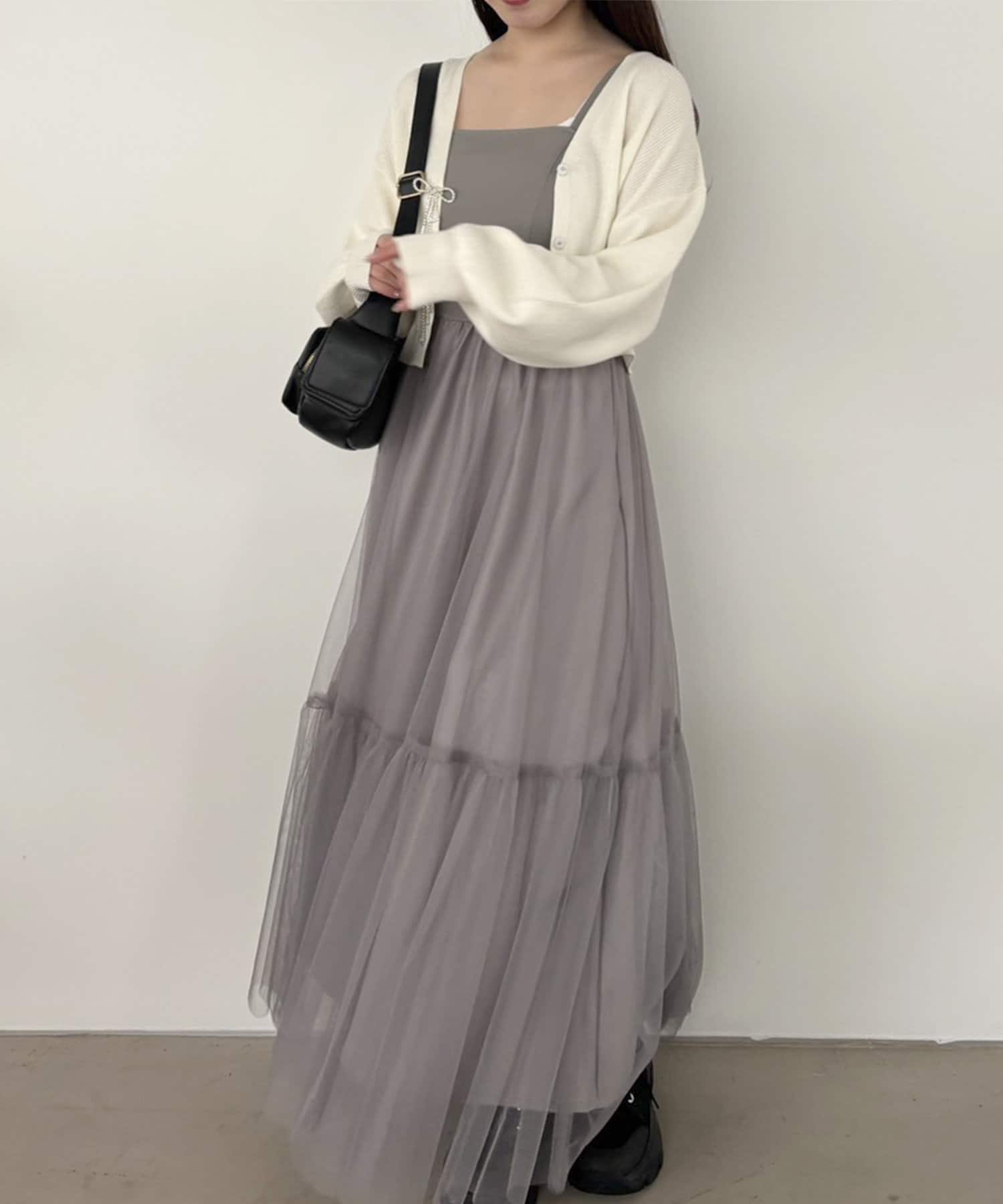 【S/Mサイズ展開】チュールドッキングキャミワンピース