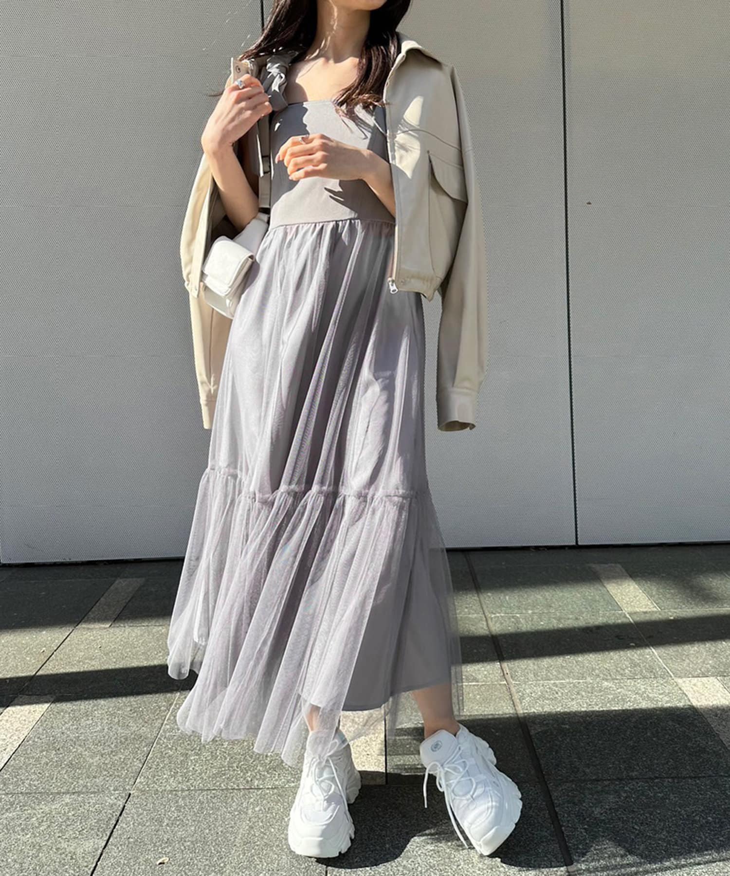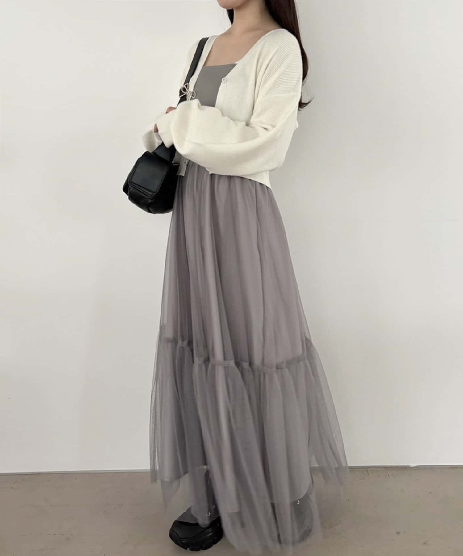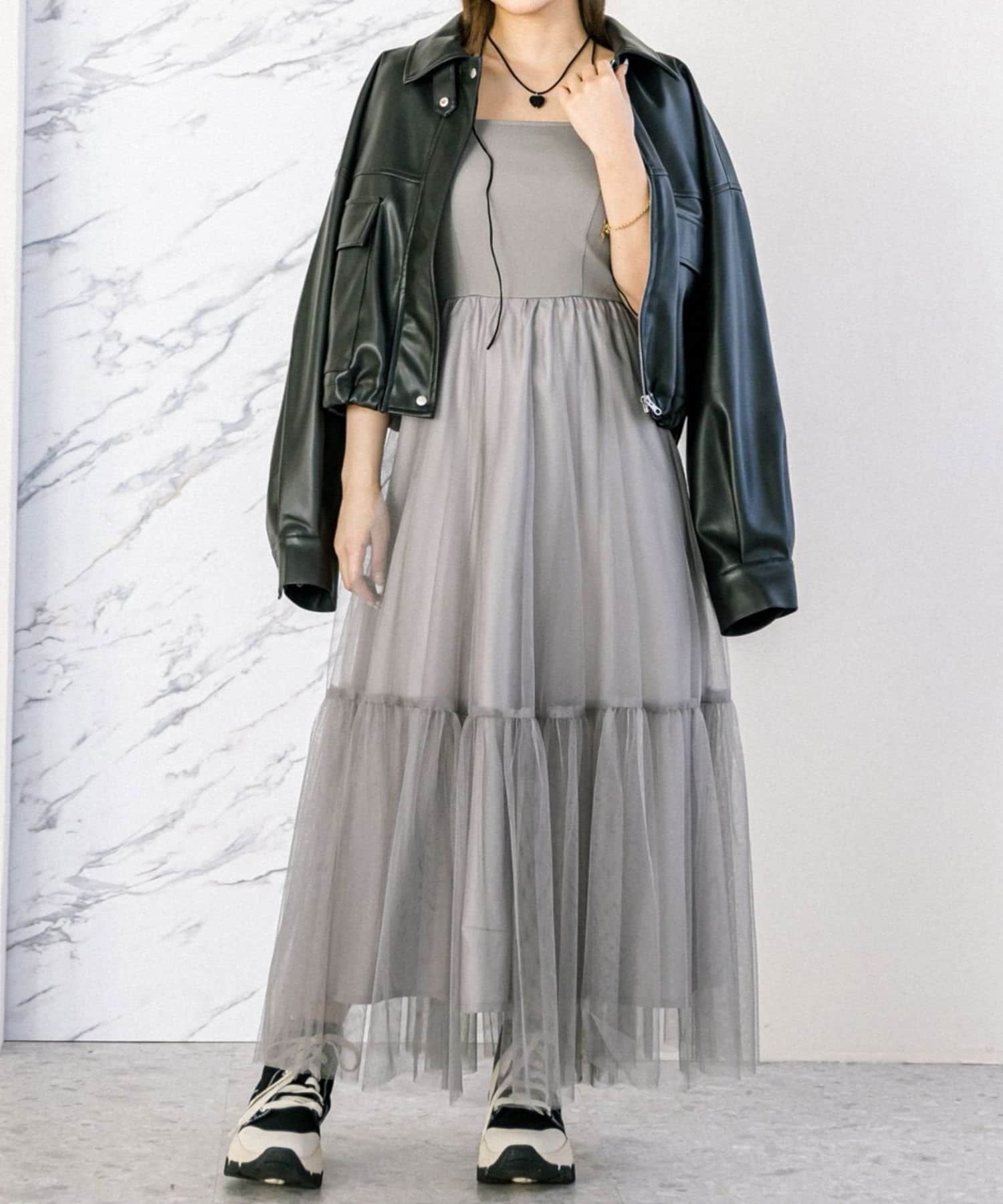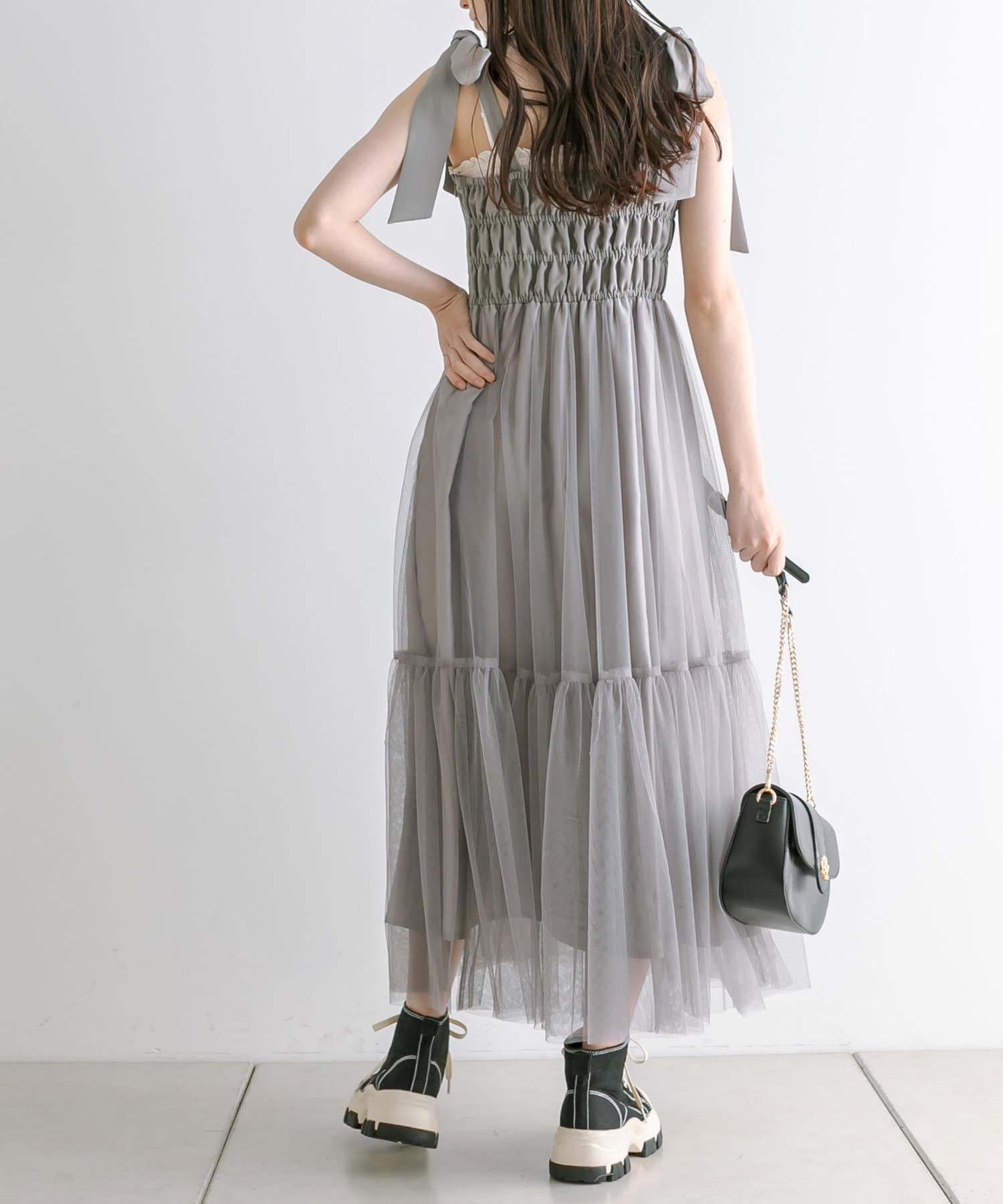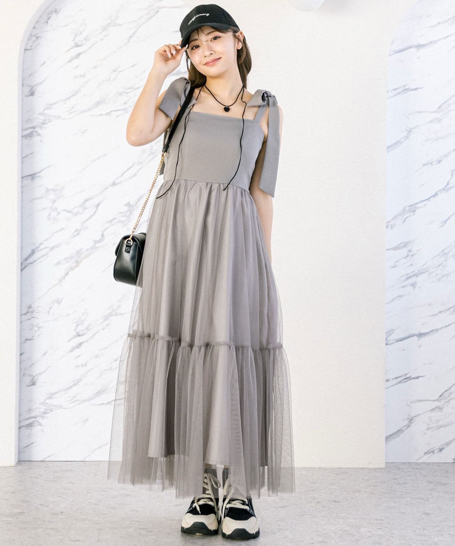 【S/Mサイズ展開】チュールドッキングキャミワンピース