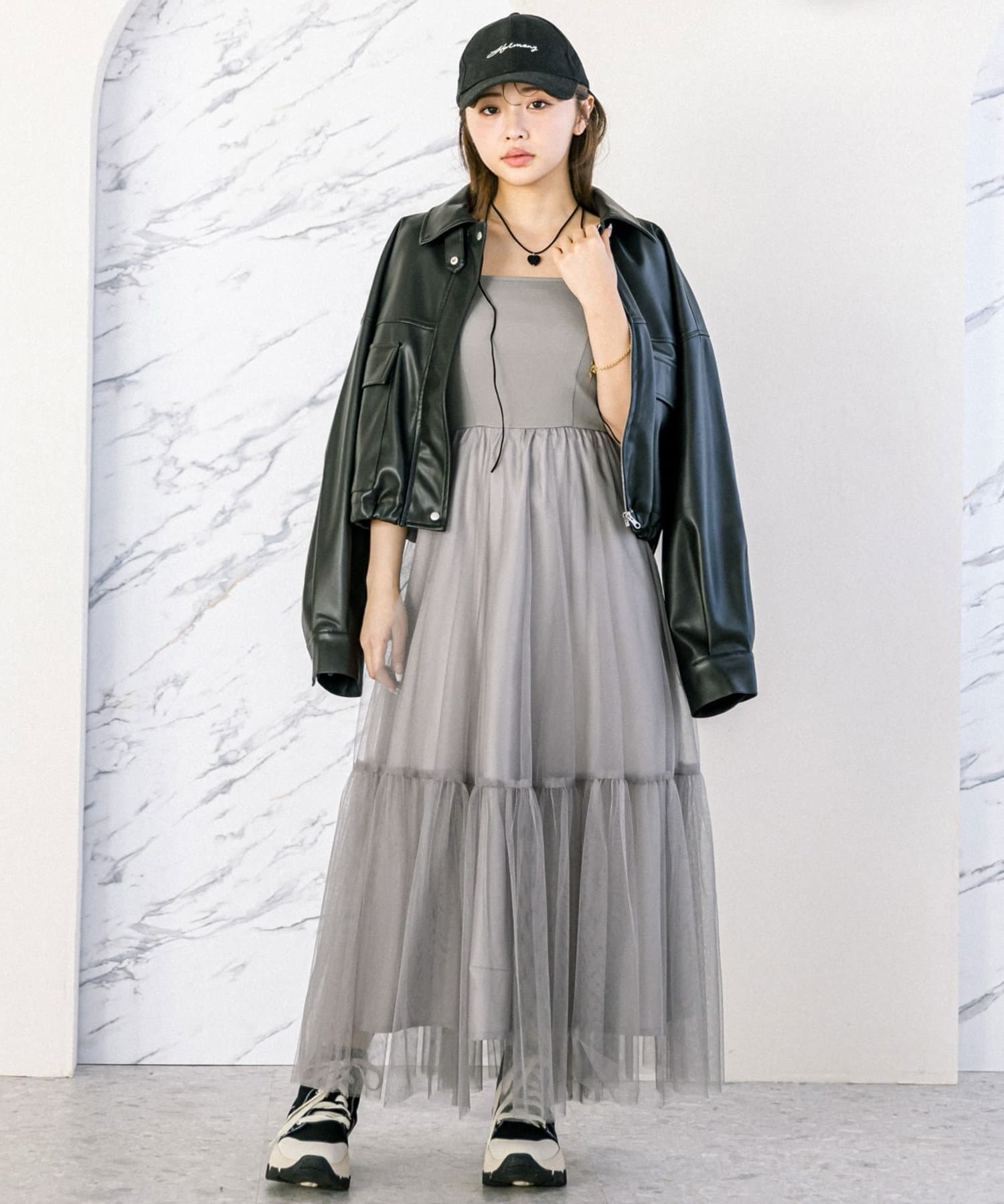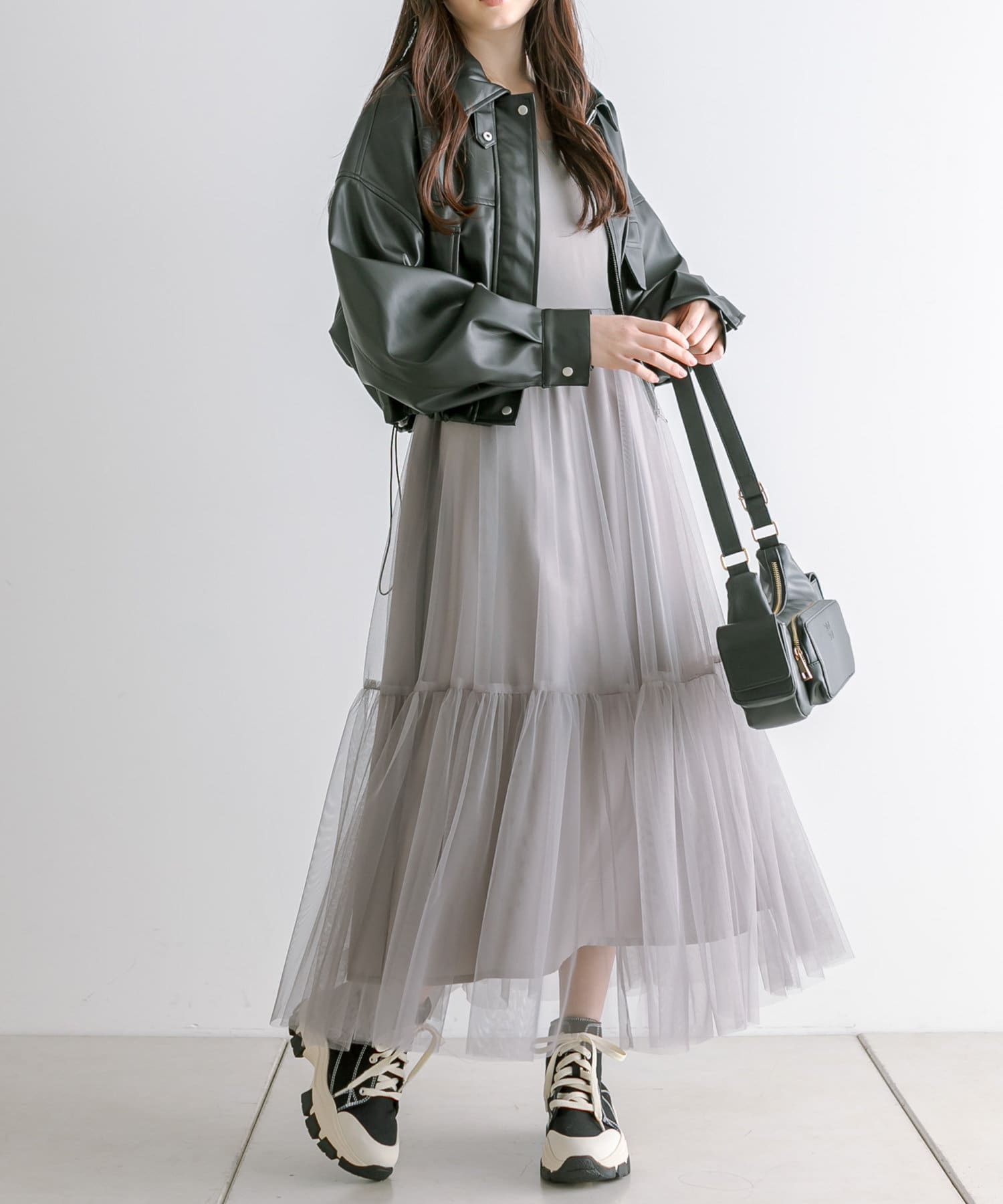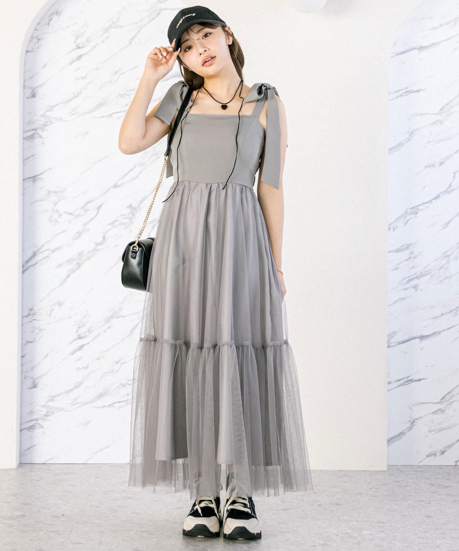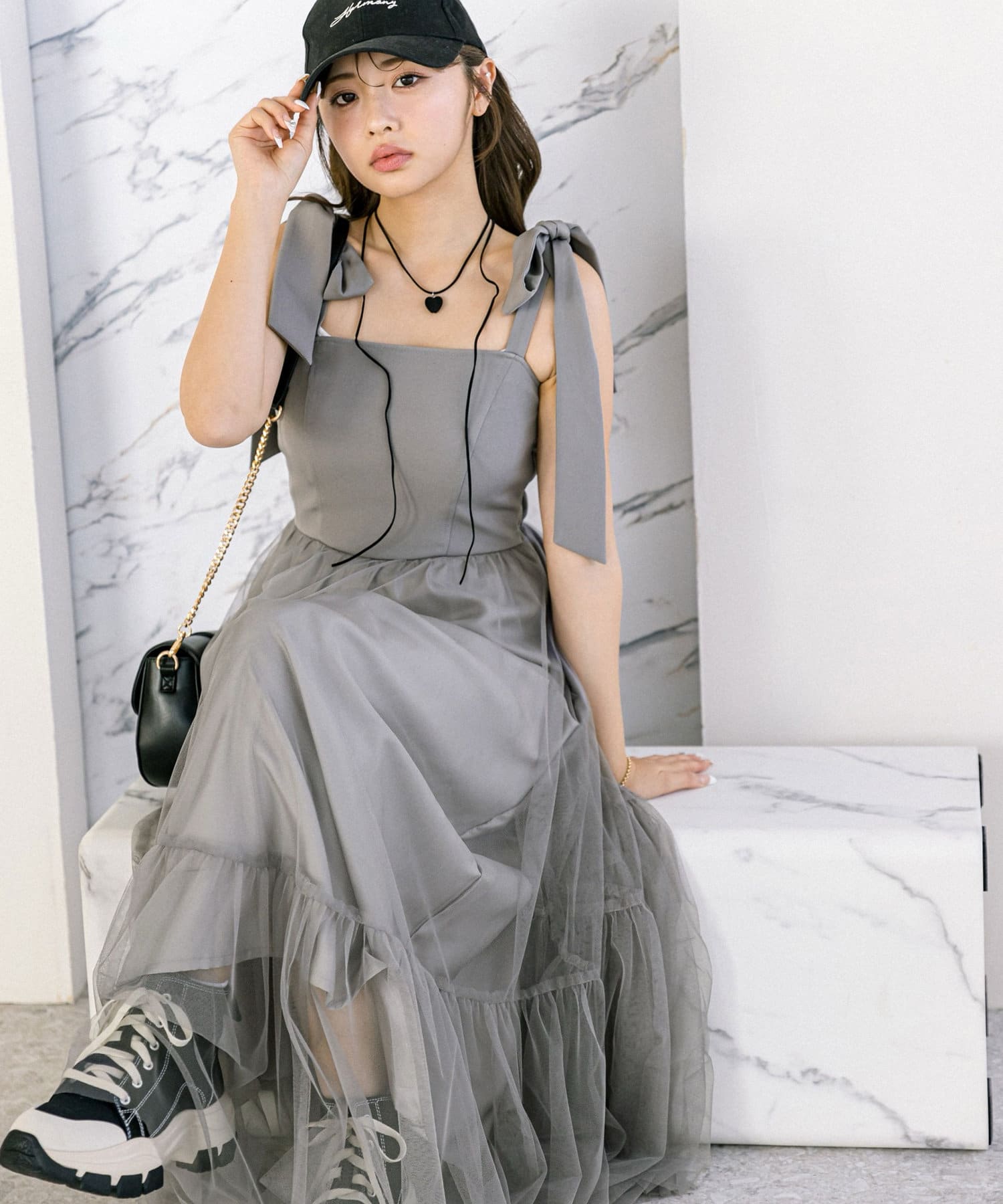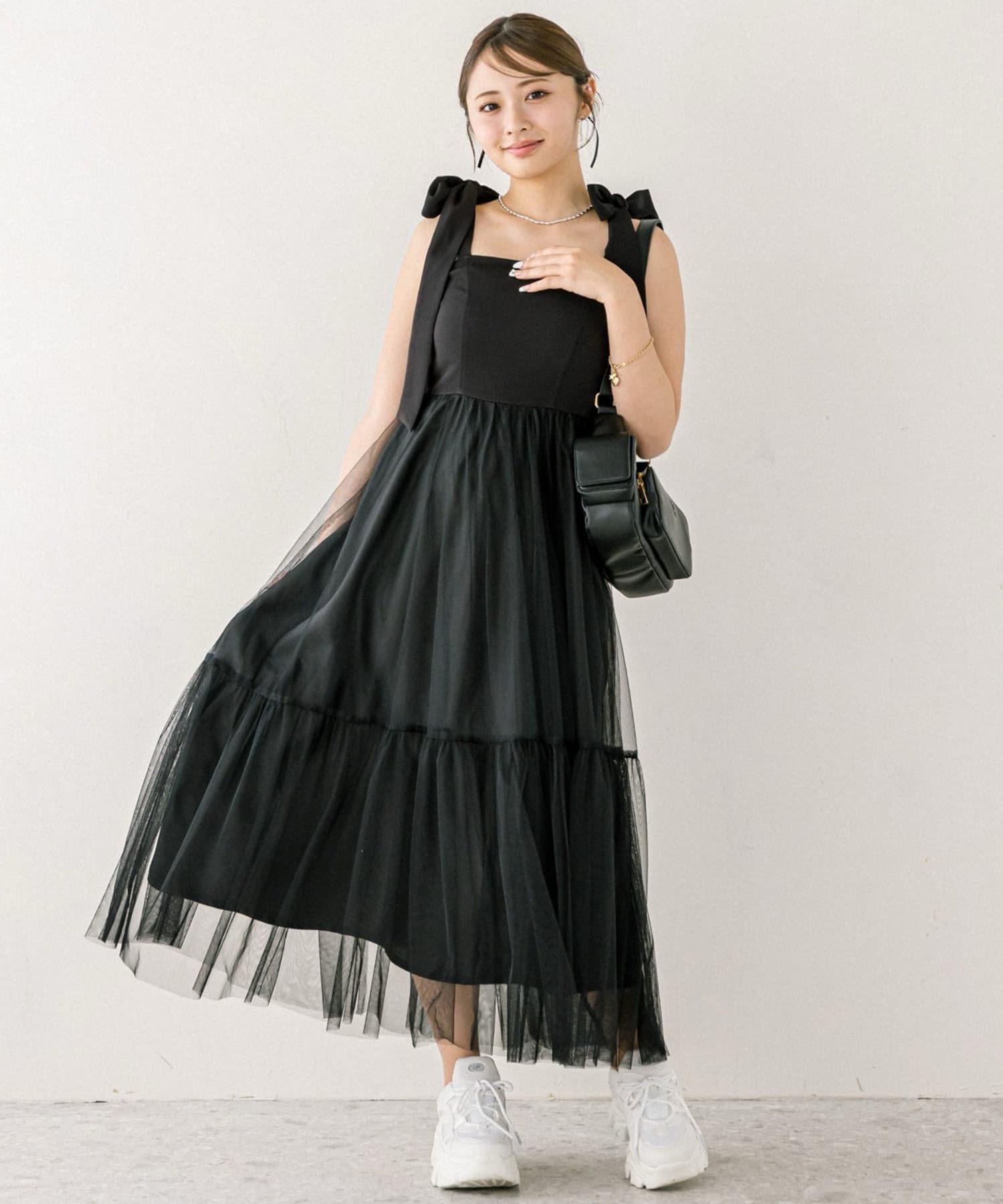 【S/Mサイズ展開】チュールドッキングキャミワンピース