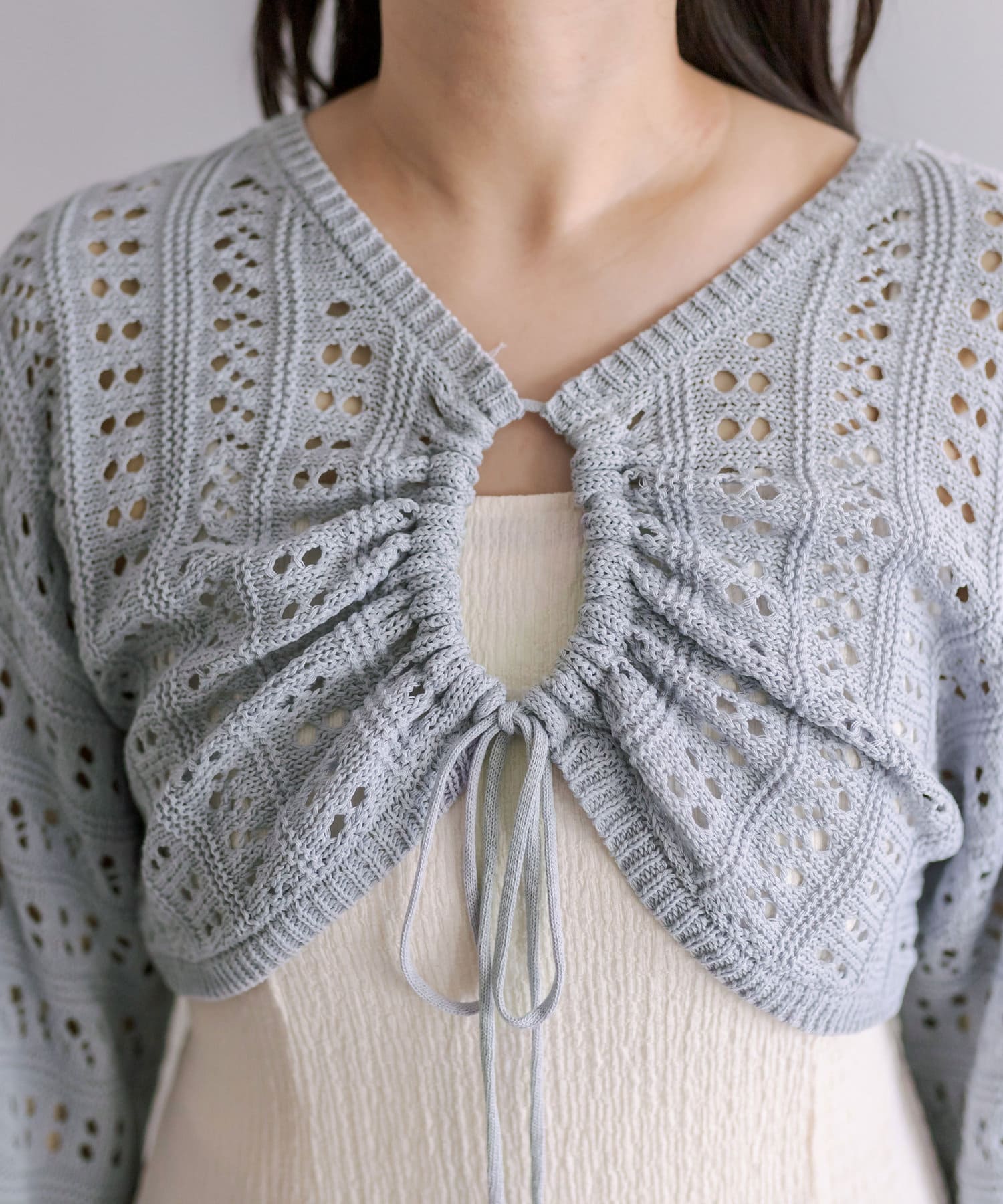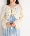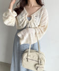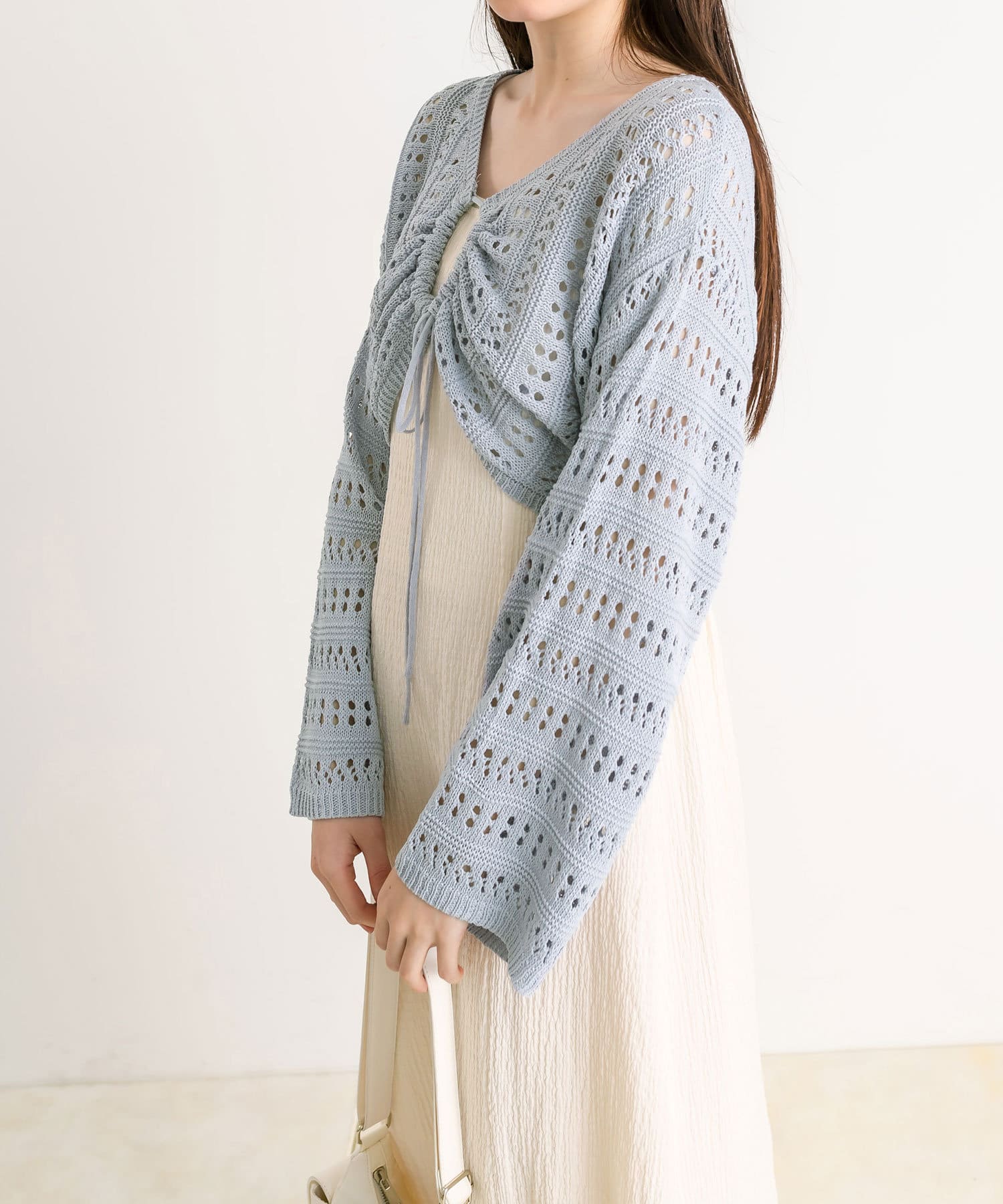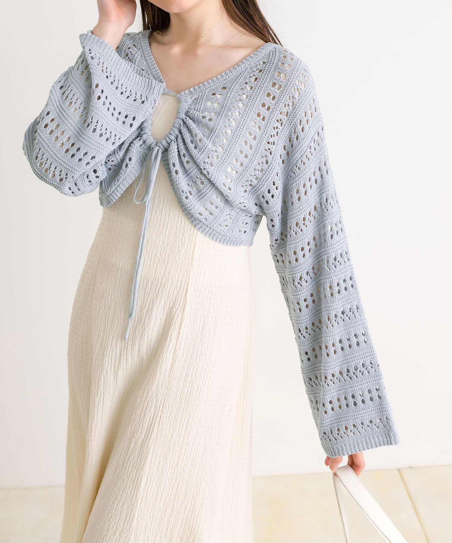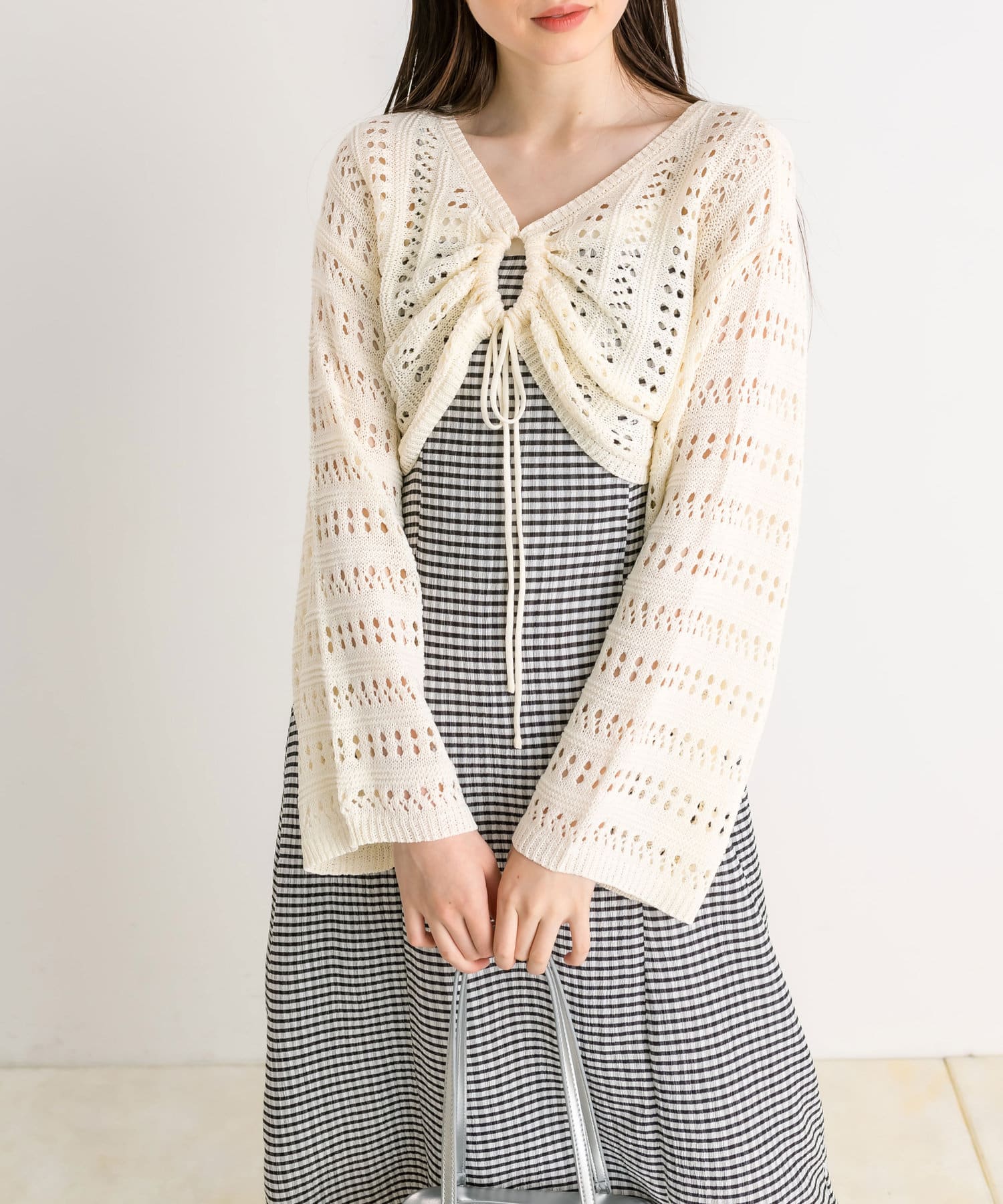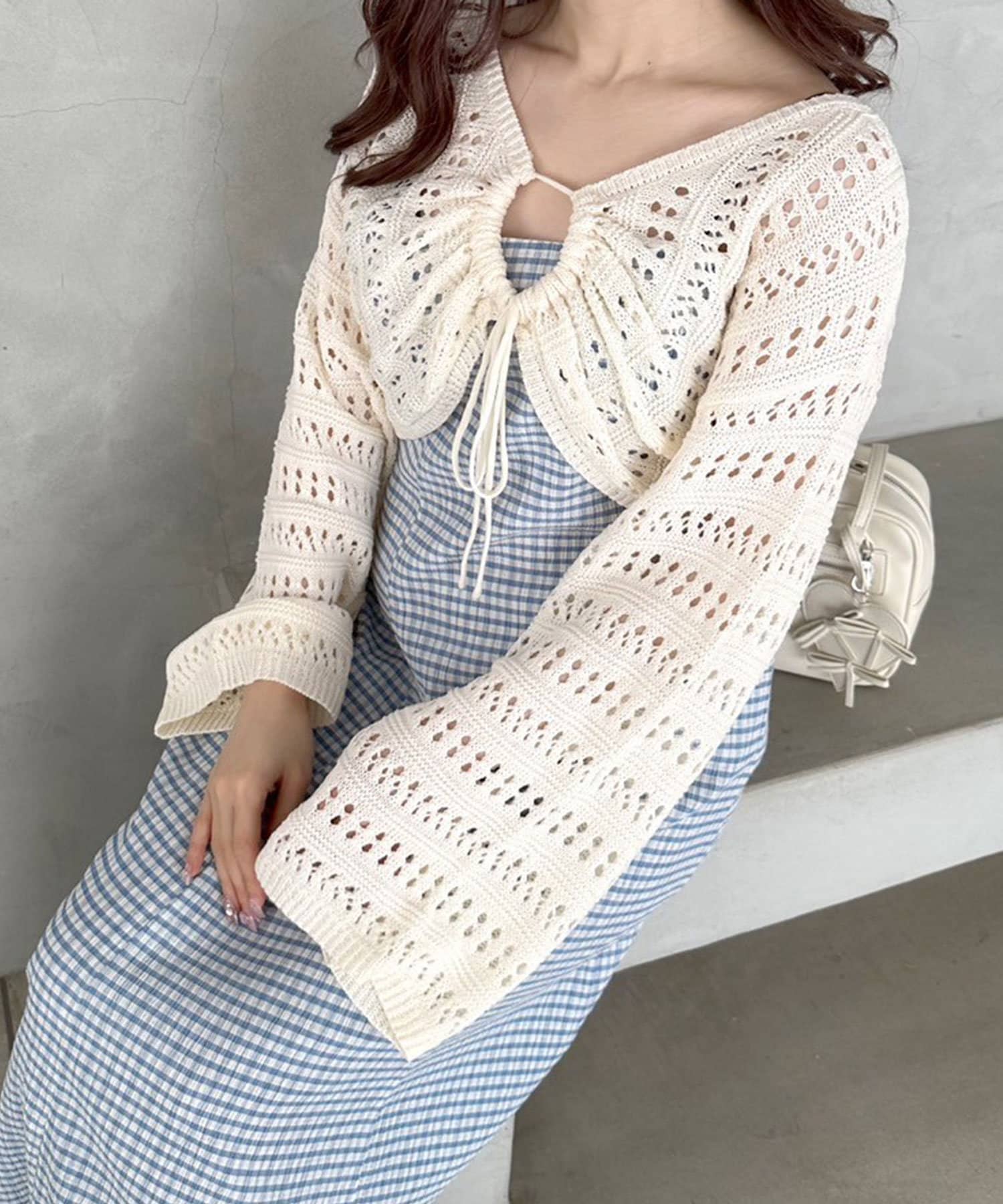 ・フロントのリボンがコーデにアクセントと甘さをプラス。
