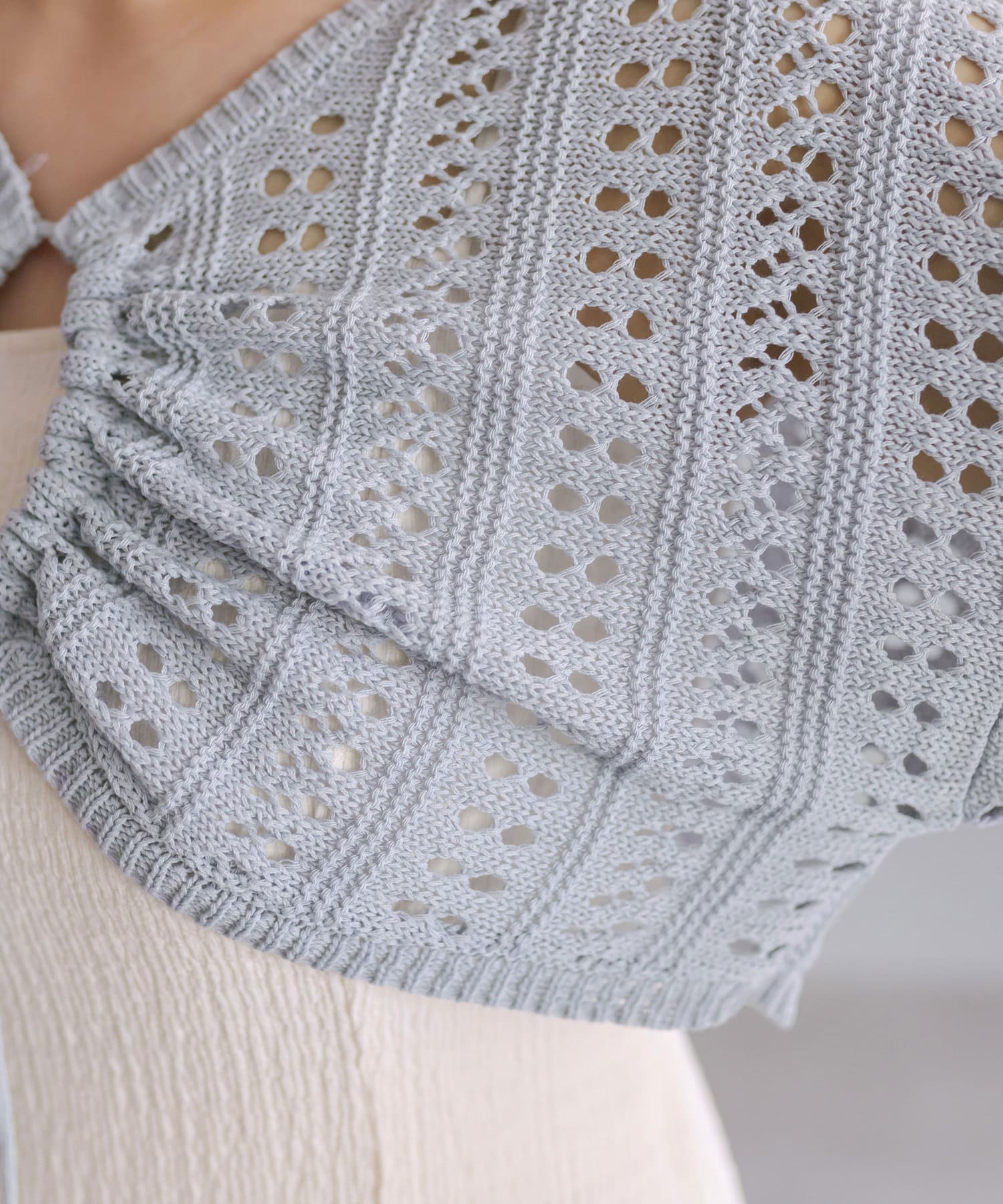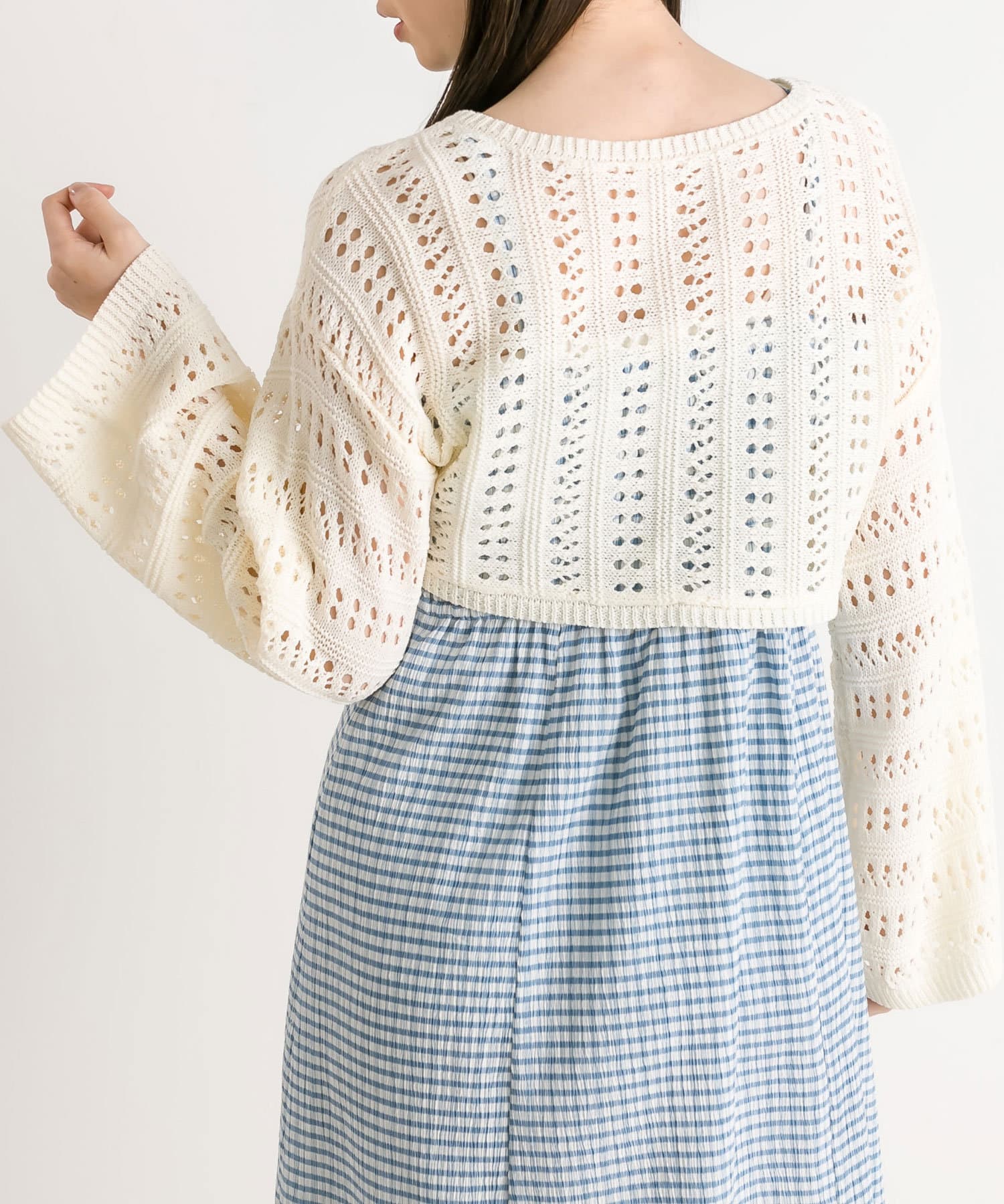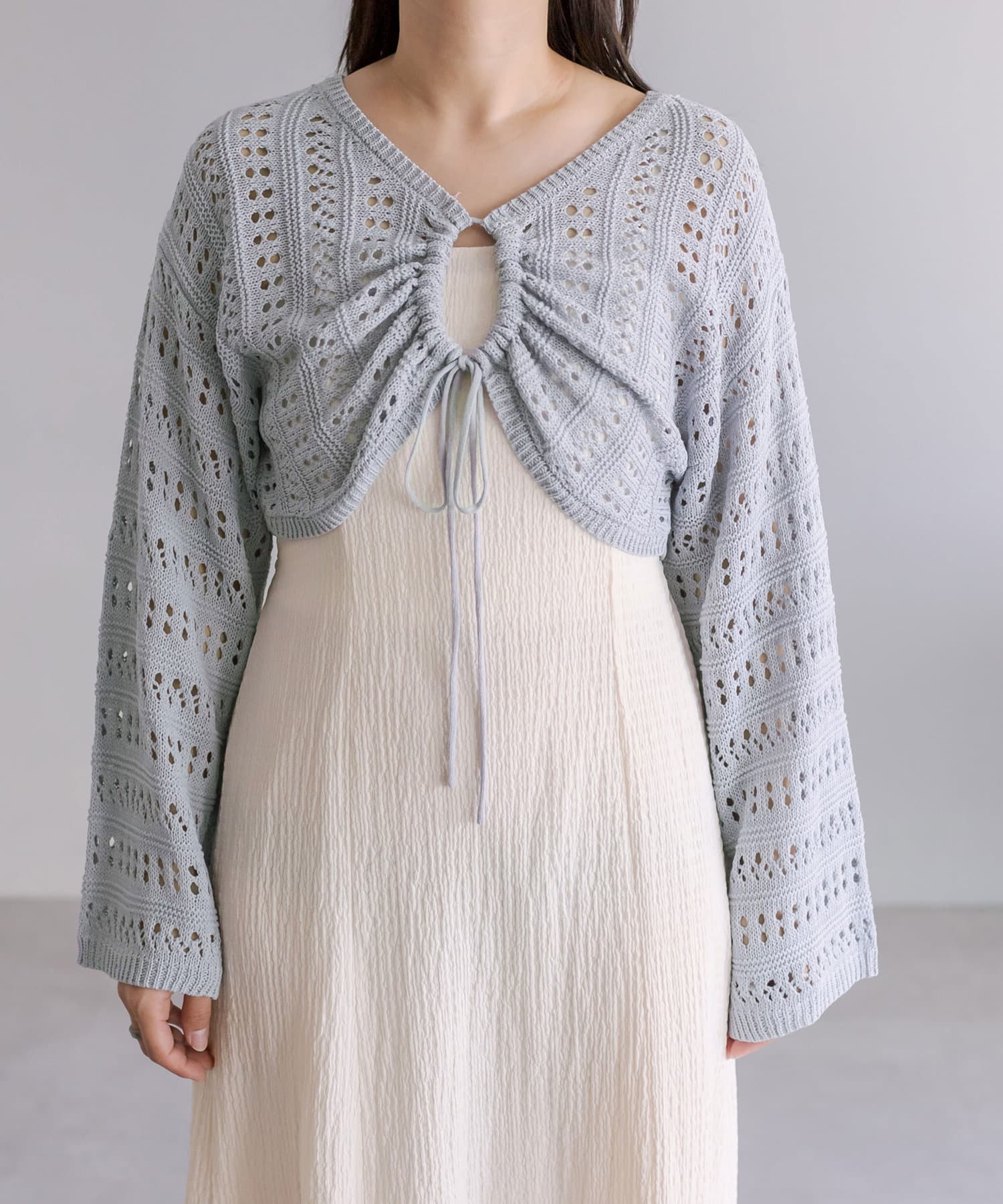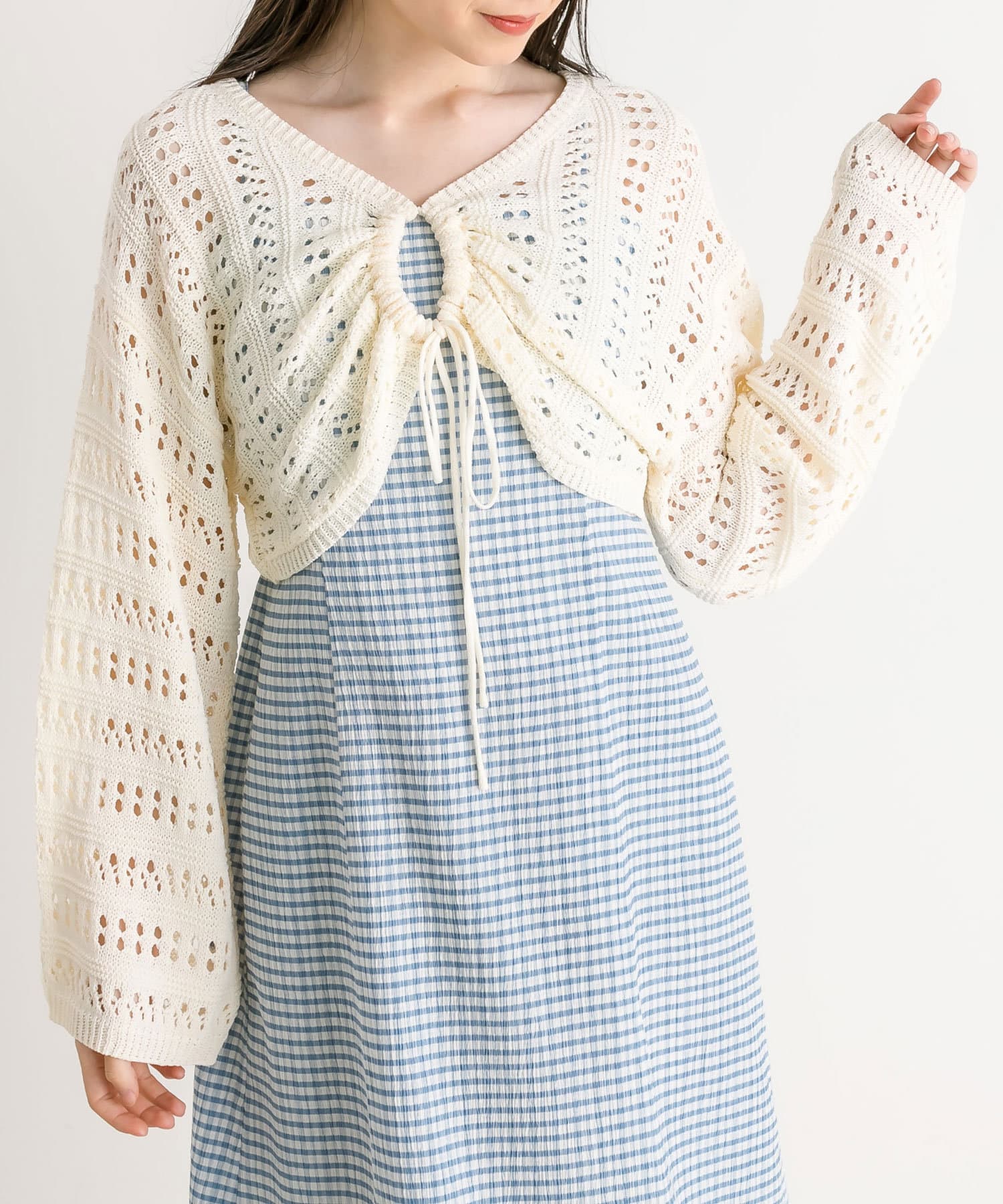 ・程よい抜け感のメッシュニットと、着まわしが効くキャミワンピのセット。