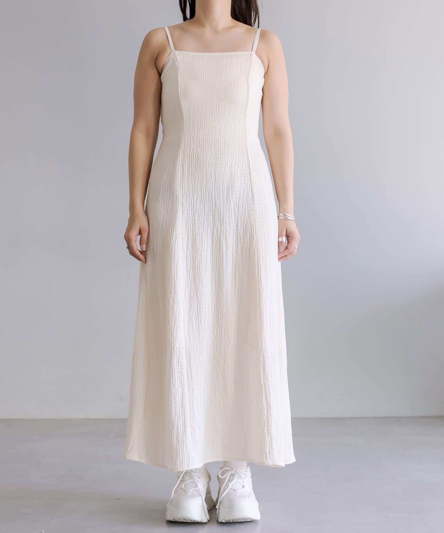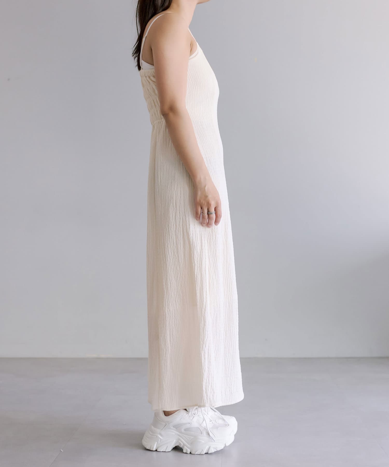 ・キャミワンピースはシンプルな着まわしがしやすいデザイン。