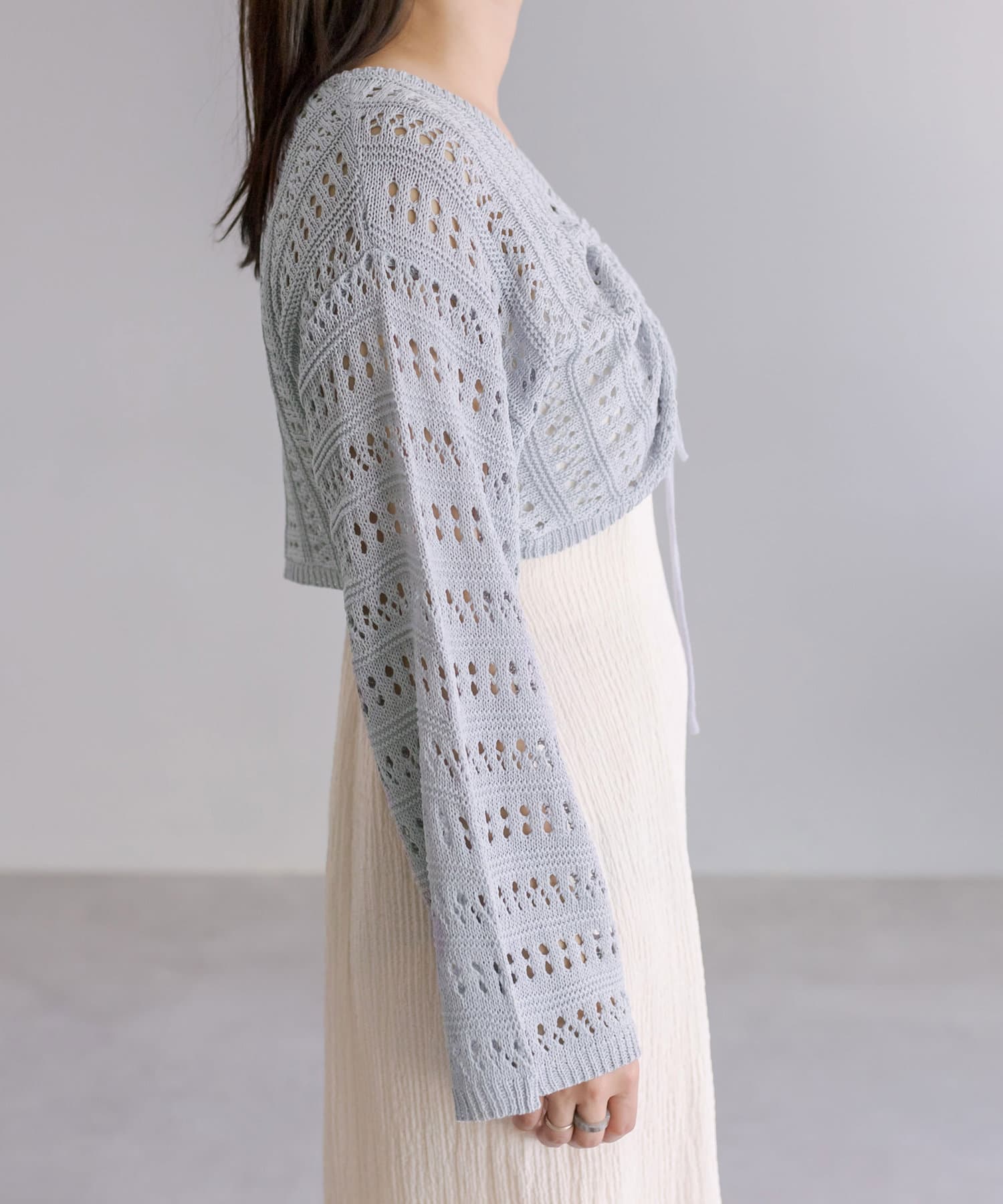 ※裏地はついておりますが、オフは下に濃い色など着用しますと透け感が出てしまいますのでご理解のほどお願いいたします。