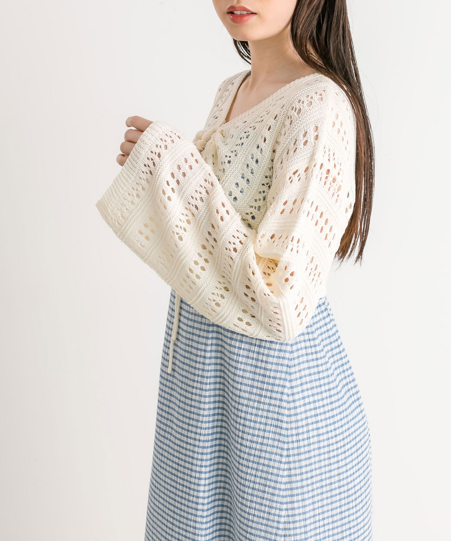 ・ニットはカップ付きインナーにデニムパンツやスカートと合わせるのがおすすめ。