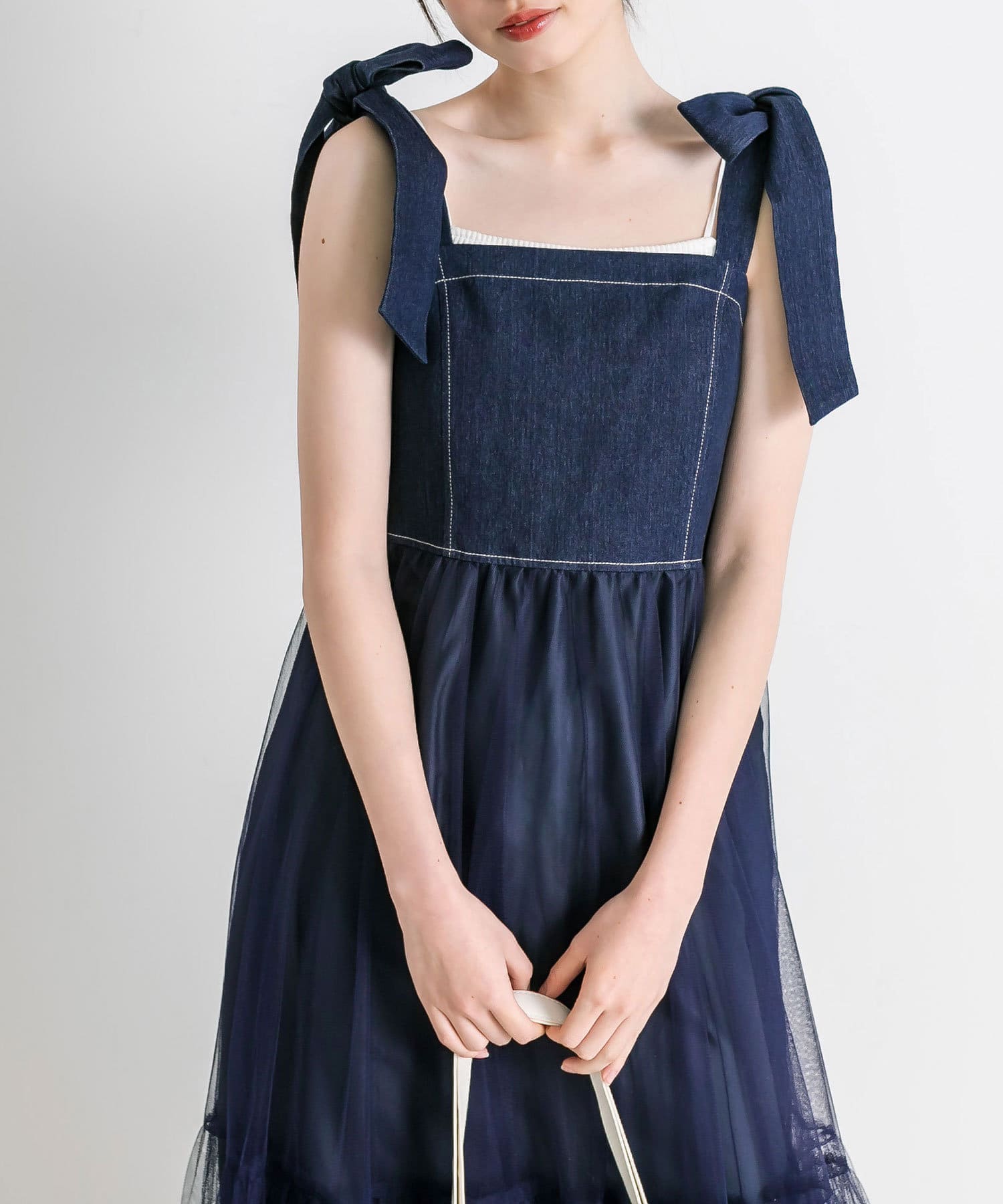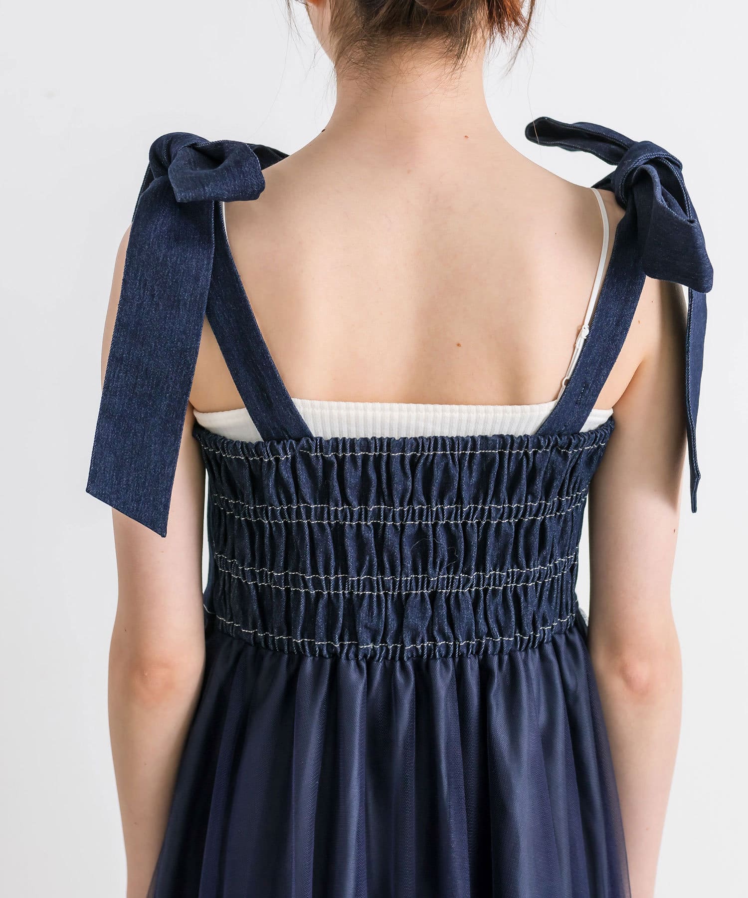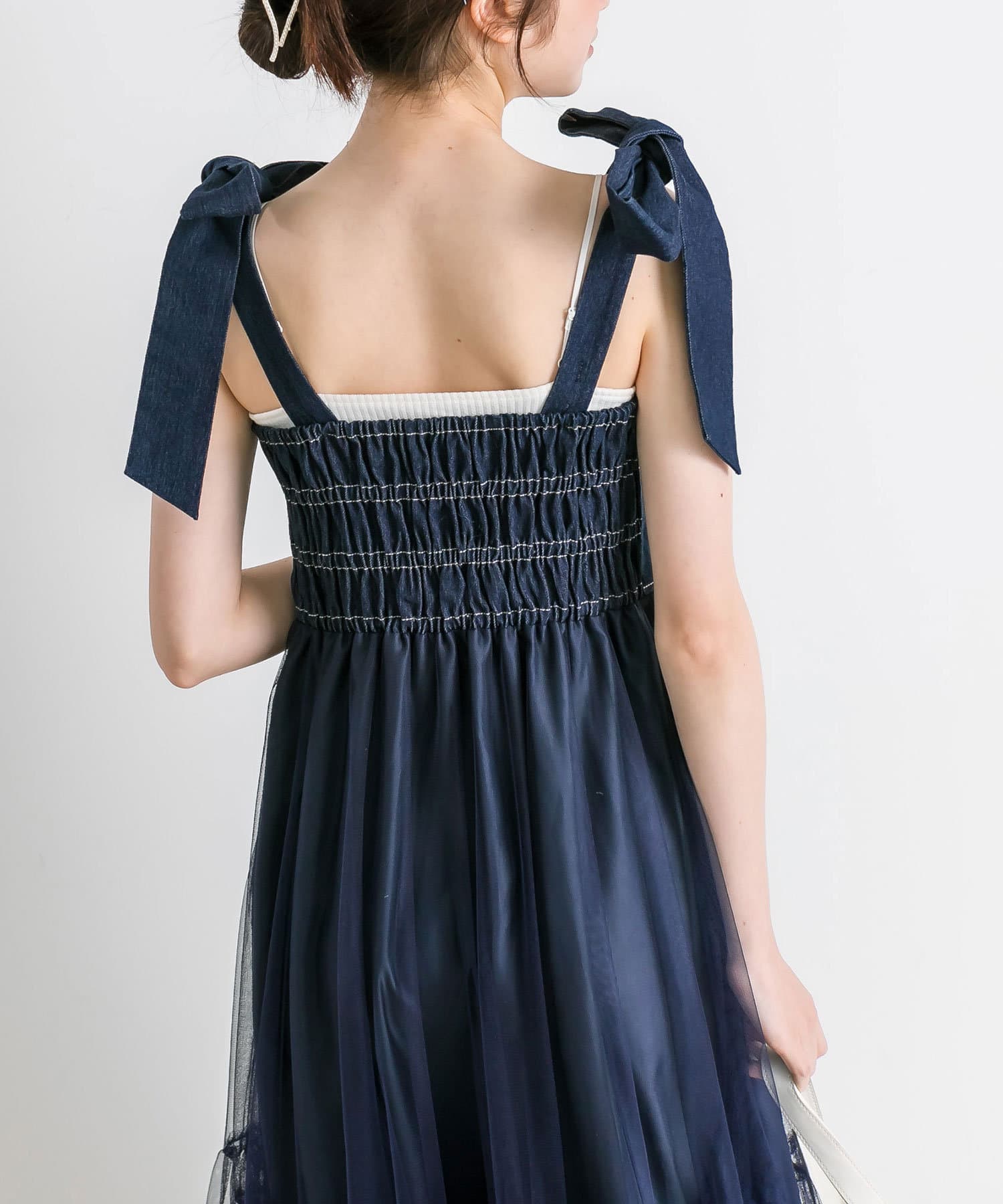 ・スカート部分がチュールになっておりトレンド要素たっぷりなキャミワンピース。