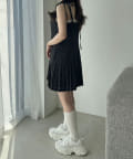 ・細プリーツなのでミニ丈でもどもっぽくなりすぎず、フェミニンな印象で着用していただけます。