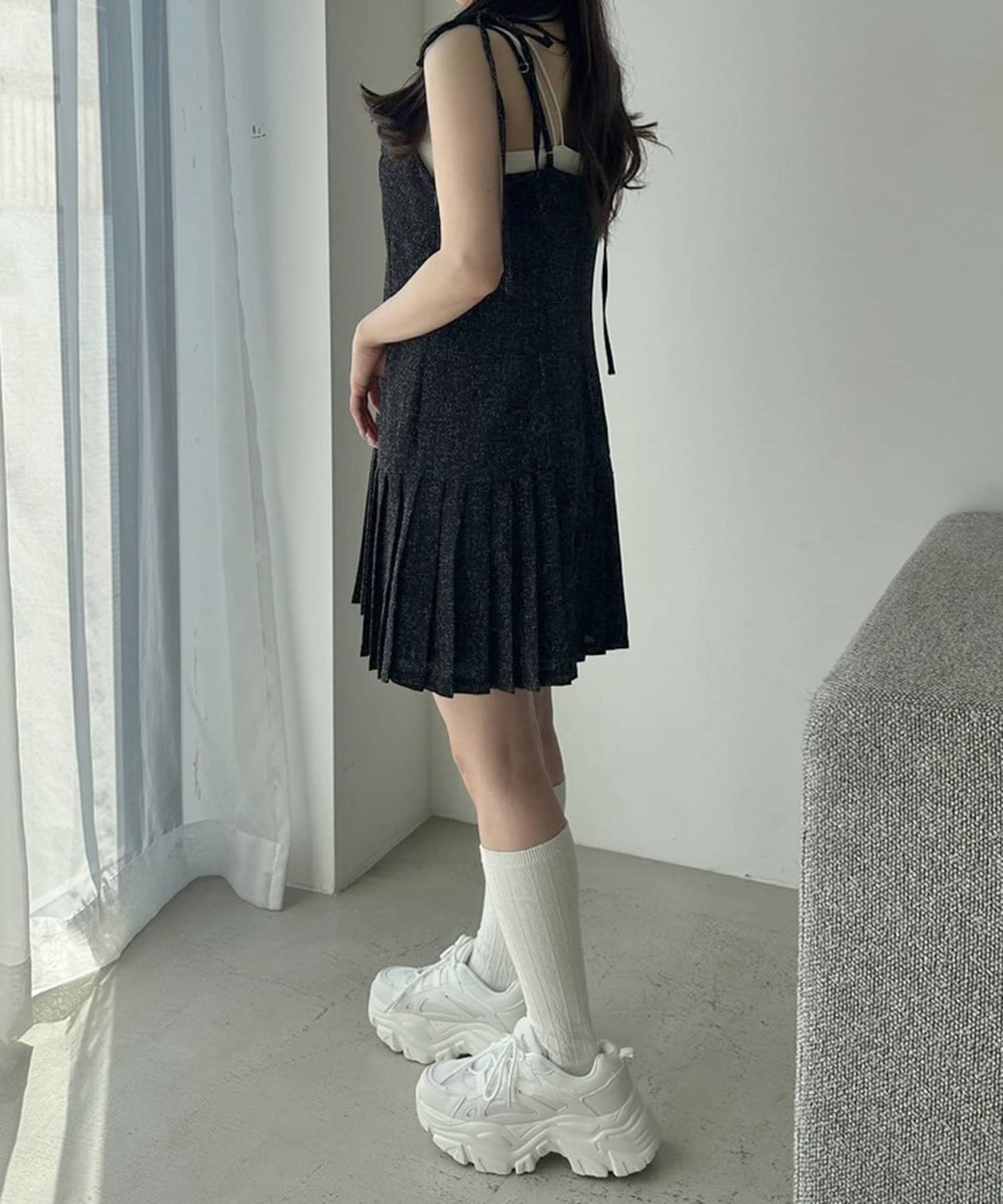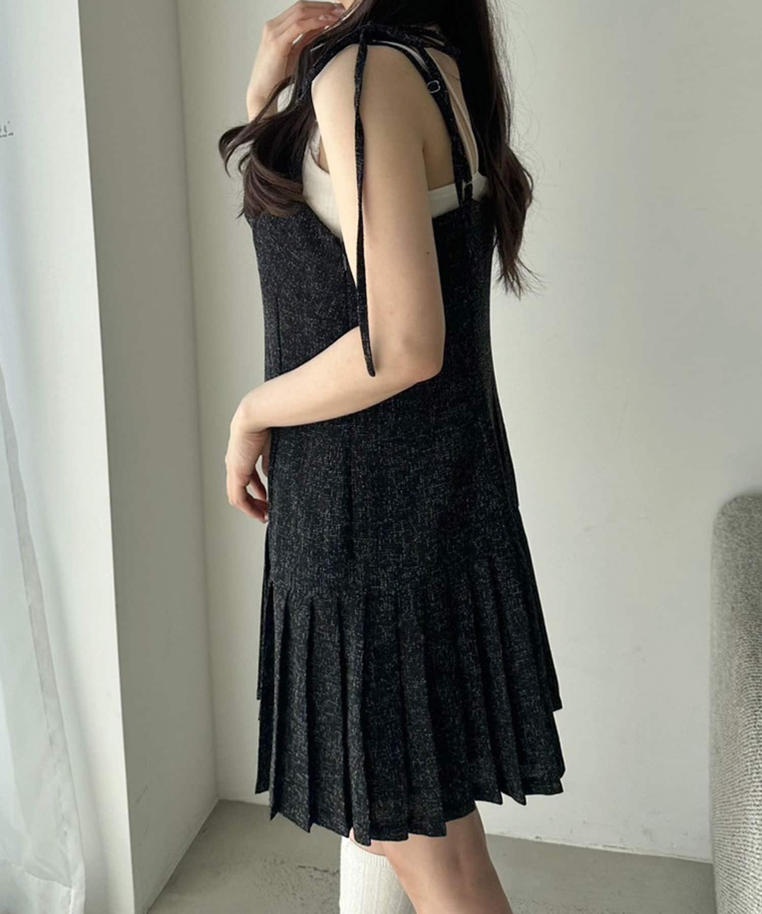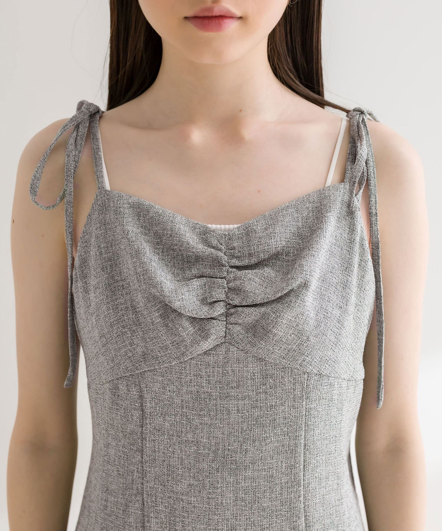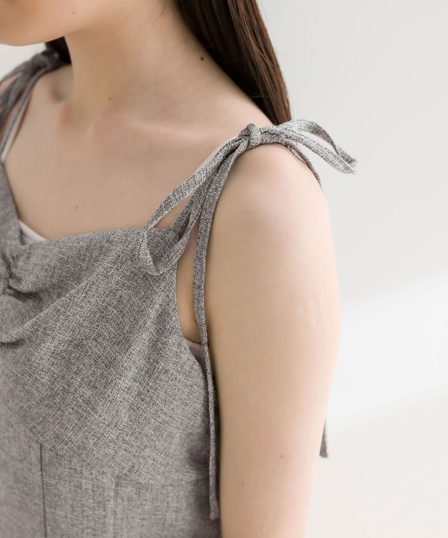 ・取り外し可能な肩のリボンが程よく甘さをプラス。また、肩紐のアジャスターで着丈を調節できます。